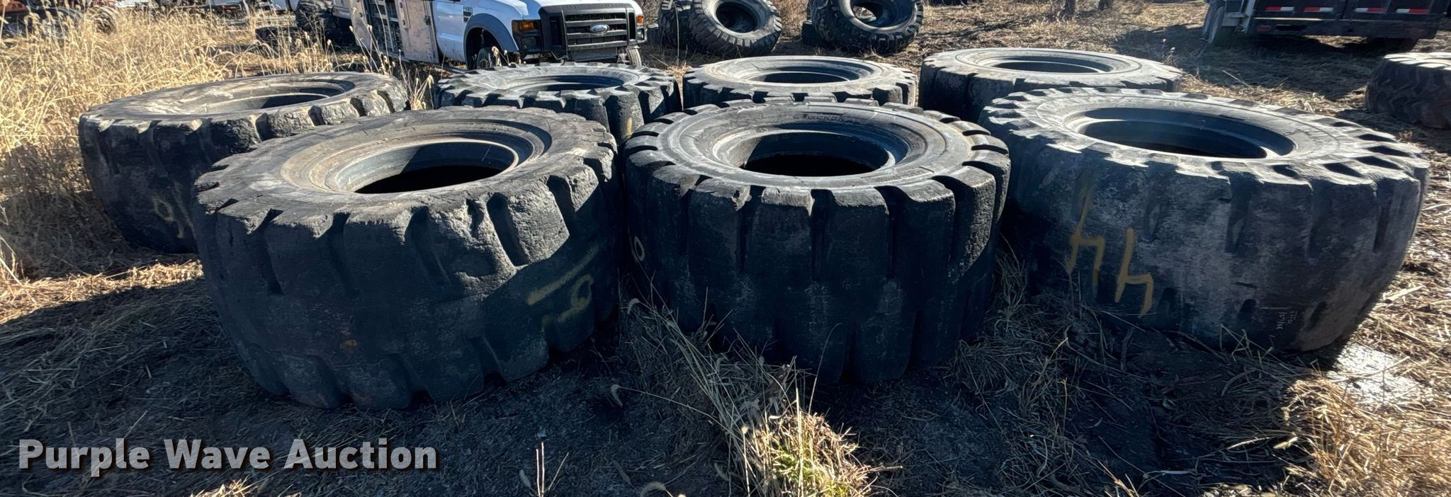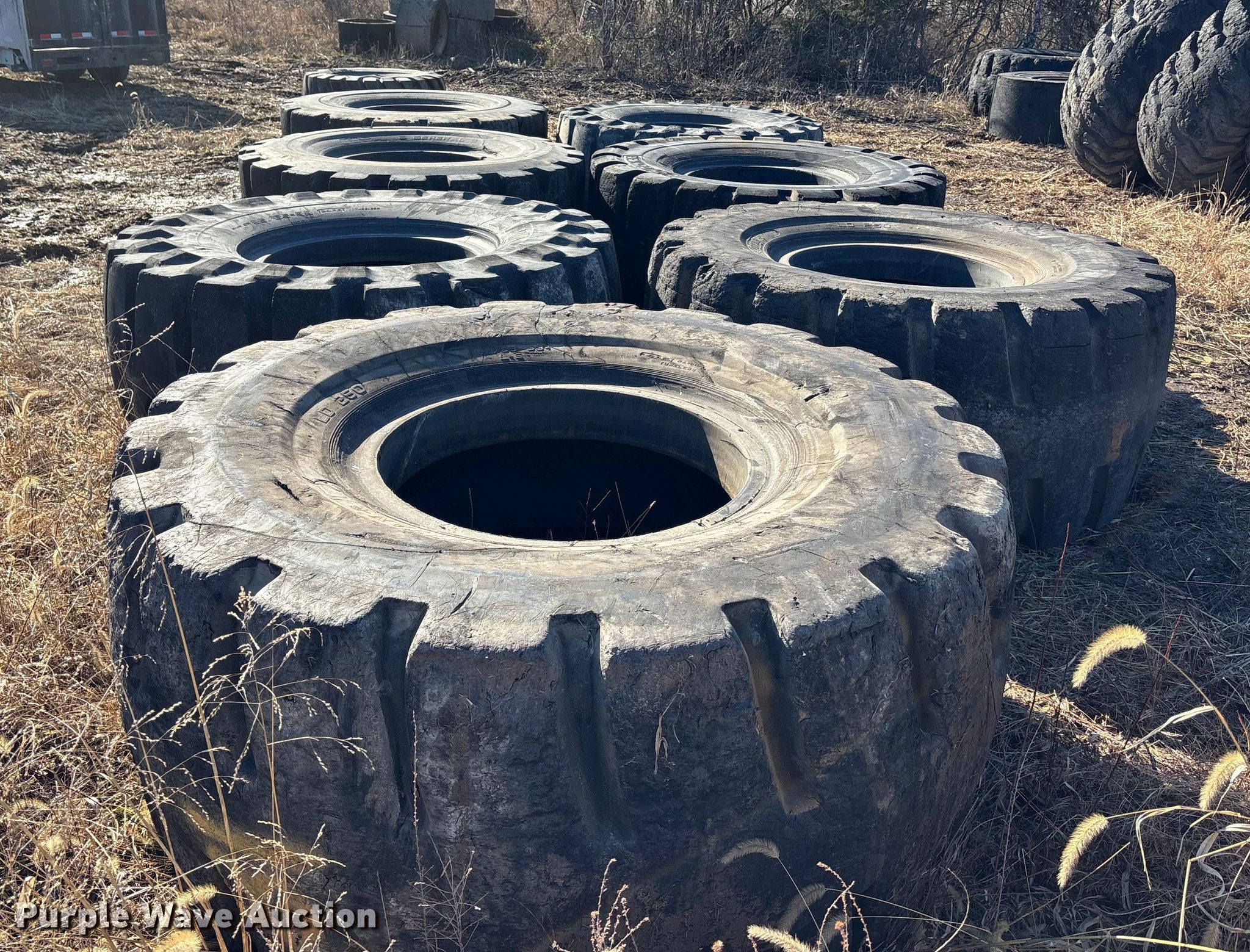 (7) wheel loader tires for sale in Holden, Missouri. Item OE9295 will sell on February 12th, 2026.