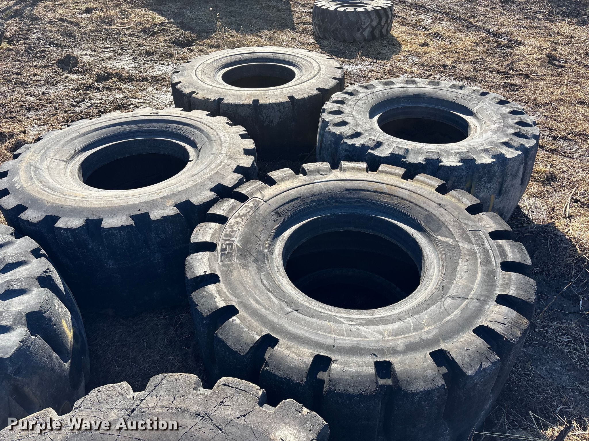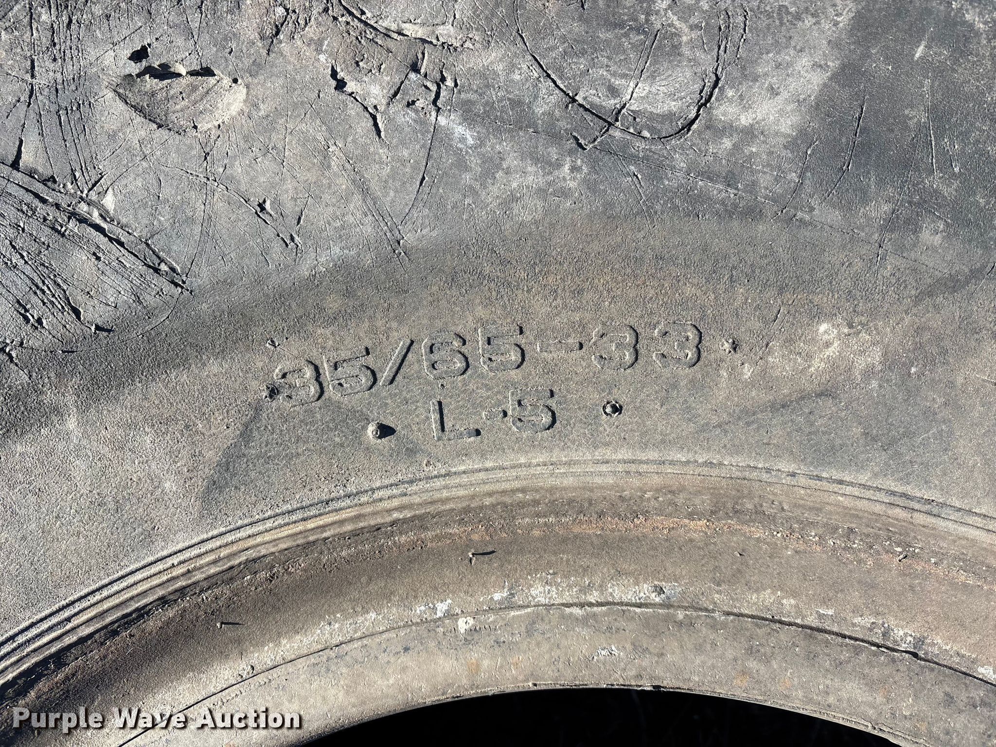 Purple Wave is selling a used Industrial Tires or Tracks in Missouri. This item is a (7) wheel loader tires with the following: (6) 35/65-33, 65/35-33