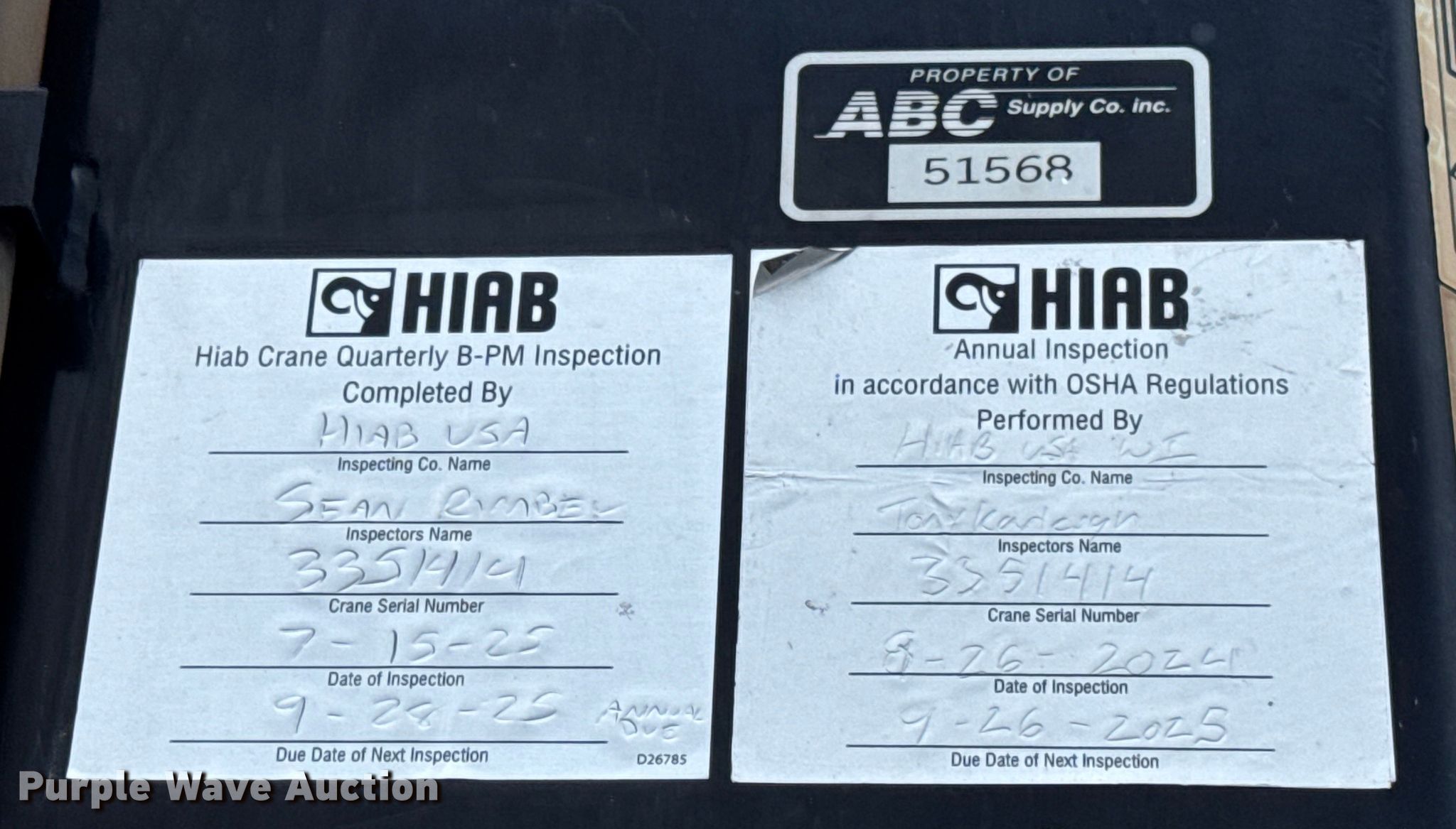 2017 Mack GU713 crane truck. Miles: 190,449 on odometer, Hours: 10,850 on meter, VIN: 1M2AX04C1HM036817, Unit #: 90428705. Engine Mack MP7, Displacement: 10.8L, Cylinders: 6, Fuel type: Diesel, Engine brake. Transmission Automatic. Chassis Axles: Triple, Steerable, Tag axle, Suspension: Camelback, Brakes: Air, PTO, GVWR: 69,020 lbs FAWR: 20,000 lbs, IAWR: 19,000 lbs, RAWR: 19,000 lbs, Lift axle GAWR: 11,020 lbs. Interior AC, Heat, Heated mirrors, Power windows, Power locks, Cruise control, Brake controller. Features Bed Flatbed, Length: 23', Width: 97", Crane 2016 Hiab 335K-4HIPRO, Boom Telescopic, Knuckle, Maximum boom length: 56' Sections: 5, Maximum lift capacity: 8,260 lbs, Boom controls Ground, Remote control, Sheaves: 3, Certification valid through: 09/2025, Lift chart, Kinshofer pallet fork Fork length: 42". Tires Front: 425/65R22.5, Rear: 11R22.5, Lift axle: 225/70R22.5. Notes Key broken off in ignition, Non-operational tag axle switch, Remote control battery missing. Insurance salvage, stored at a secured facility. Please review REQUIRED REMOVAL INSTRUCTIONS. Transfer of ownership documentation will be Wisconsin Department of Transportation form MV2459 Junked vehicle Bill of Sale. No title will be provided. Bidders are responsible for for verifying if this is sufficient to obtain a title in their own jurisdiction prior to bidding. Ownership documentation will be distributed after confirmation of payment and removal. Ownership documentation may be delayed up to 30 days from verification of funds. Insurance Salvage. Appleton, WI 54914