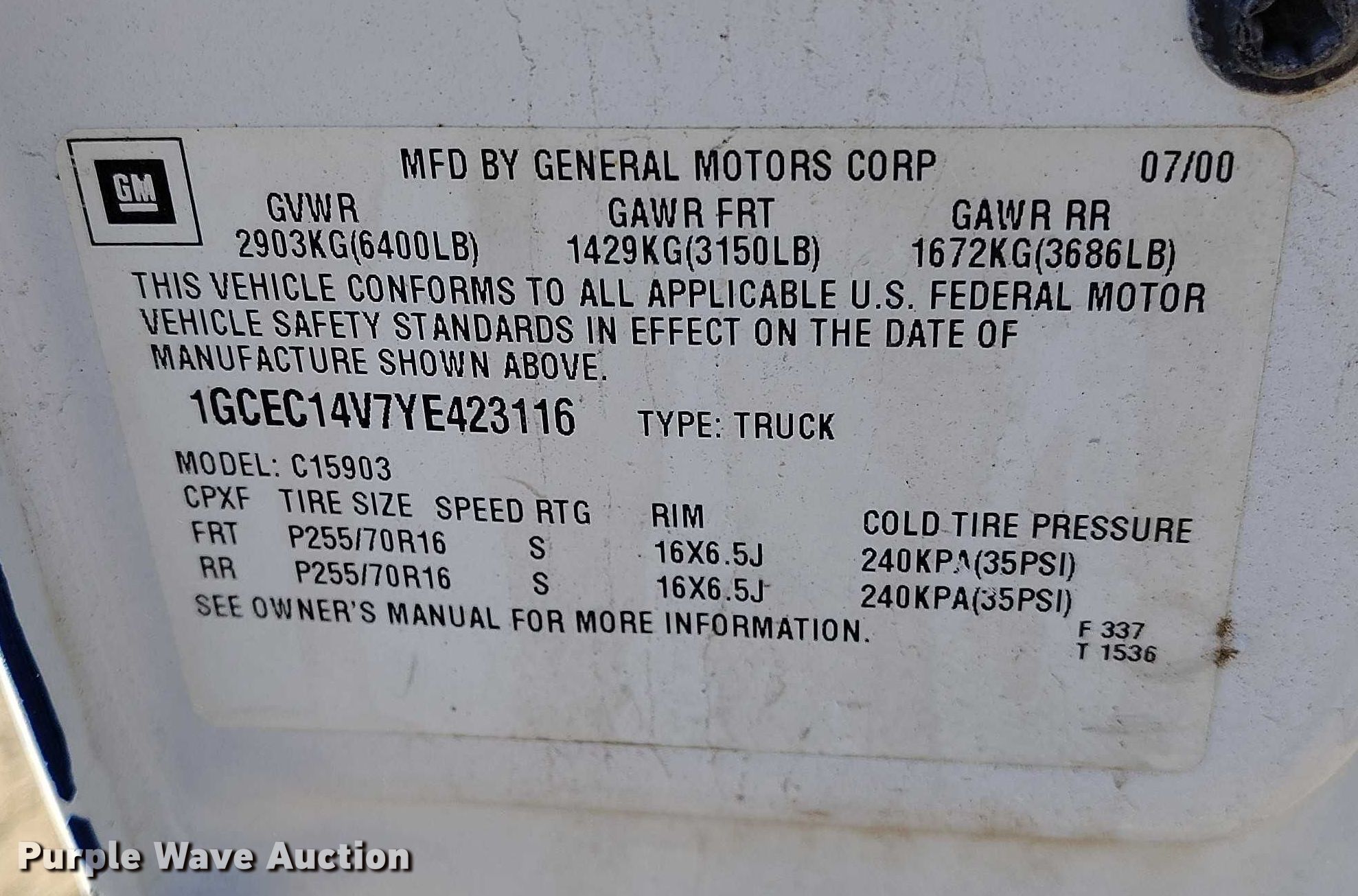 - VIN: 1GCEC14V7YE423116
