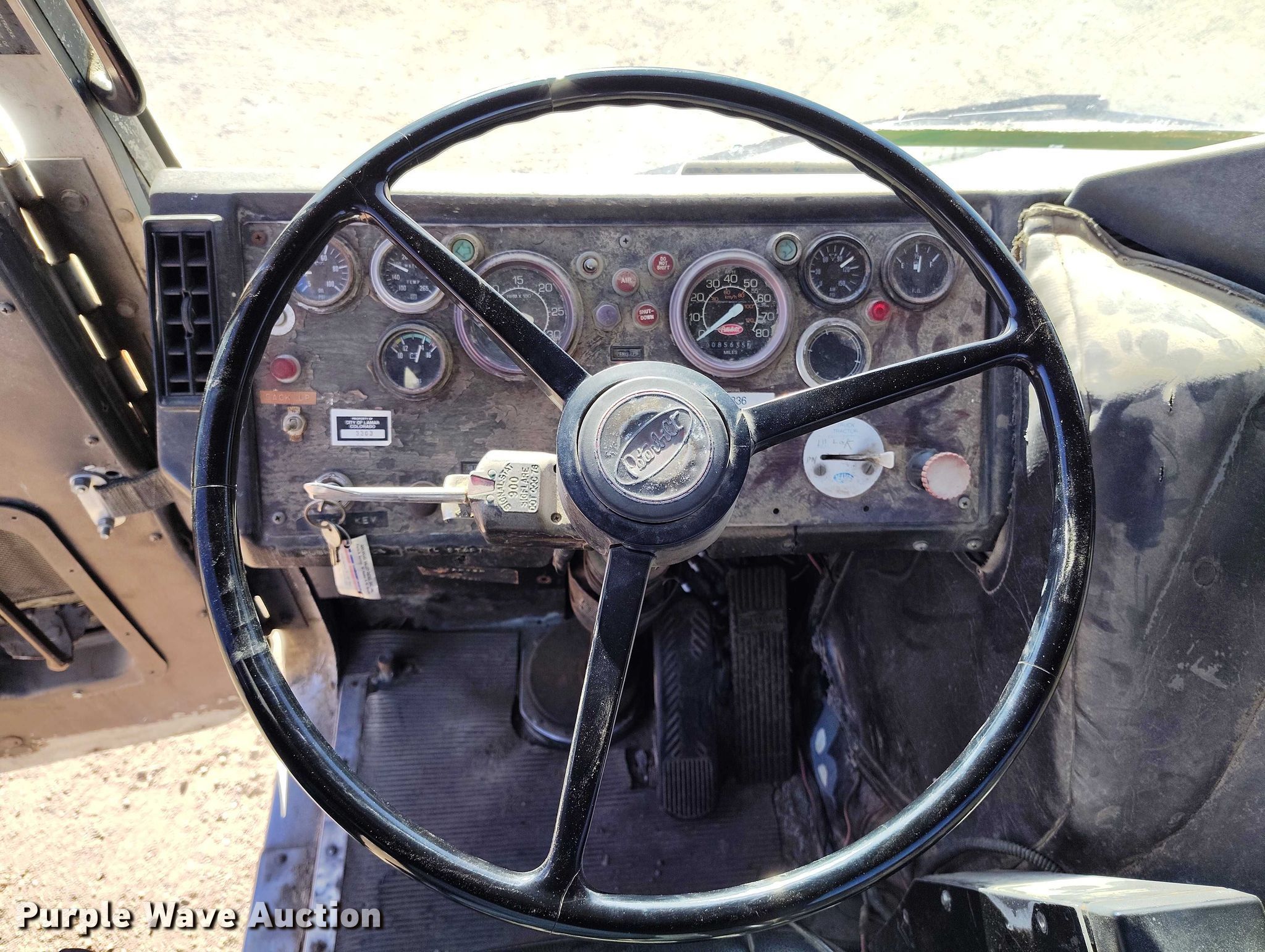 Purple Wave is selling a used Rollback or Tow Truck in Colorado. This item is a 1995 Peterbilt 320 roll-off container truck with the following: Miles: 85,636 on odometer, VIN: 1XPZL70XXSD708626, Unit#: 6338