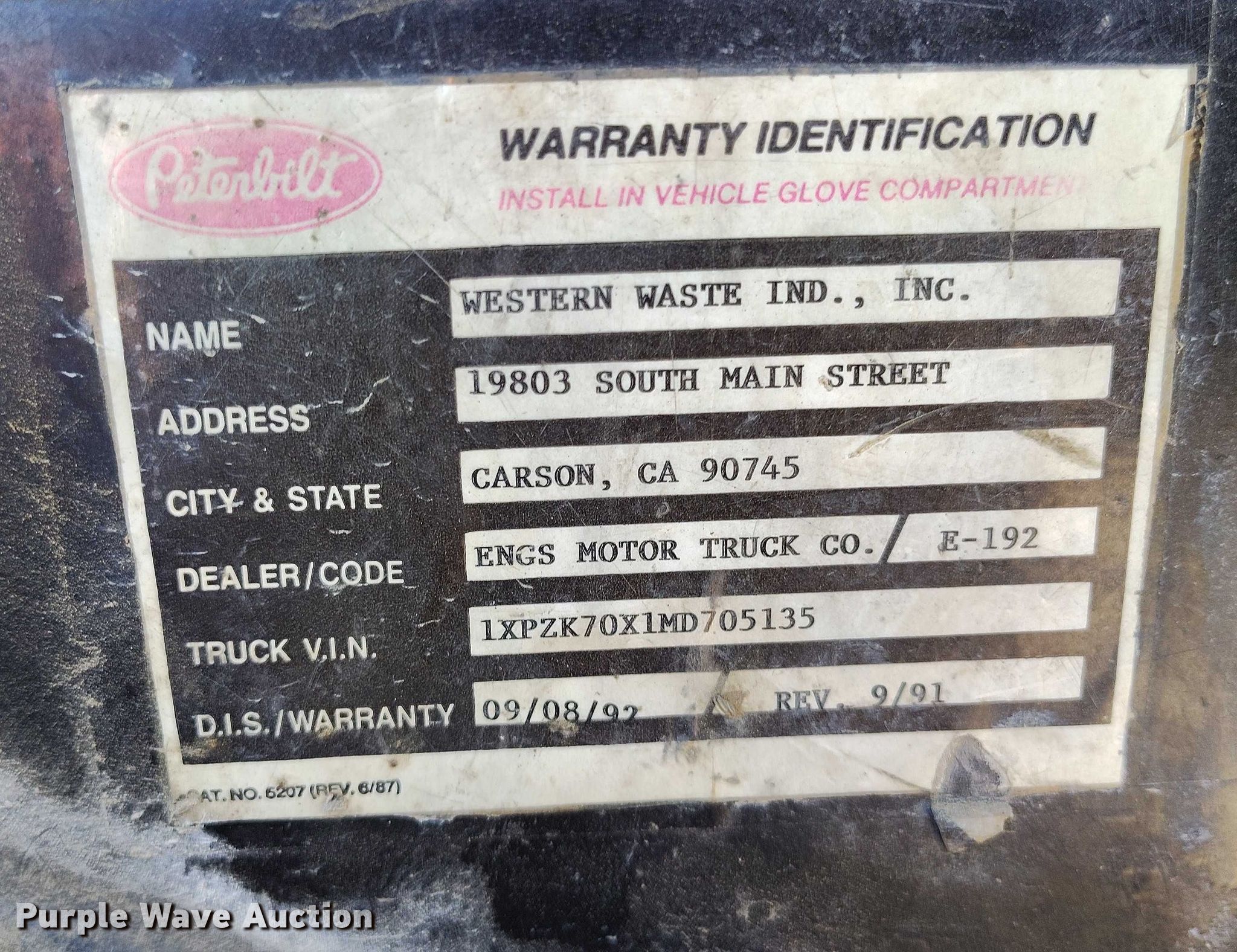 This 1995 Peterbilt 320 roll-off container truck will sell to the highest bidder regardless of price.