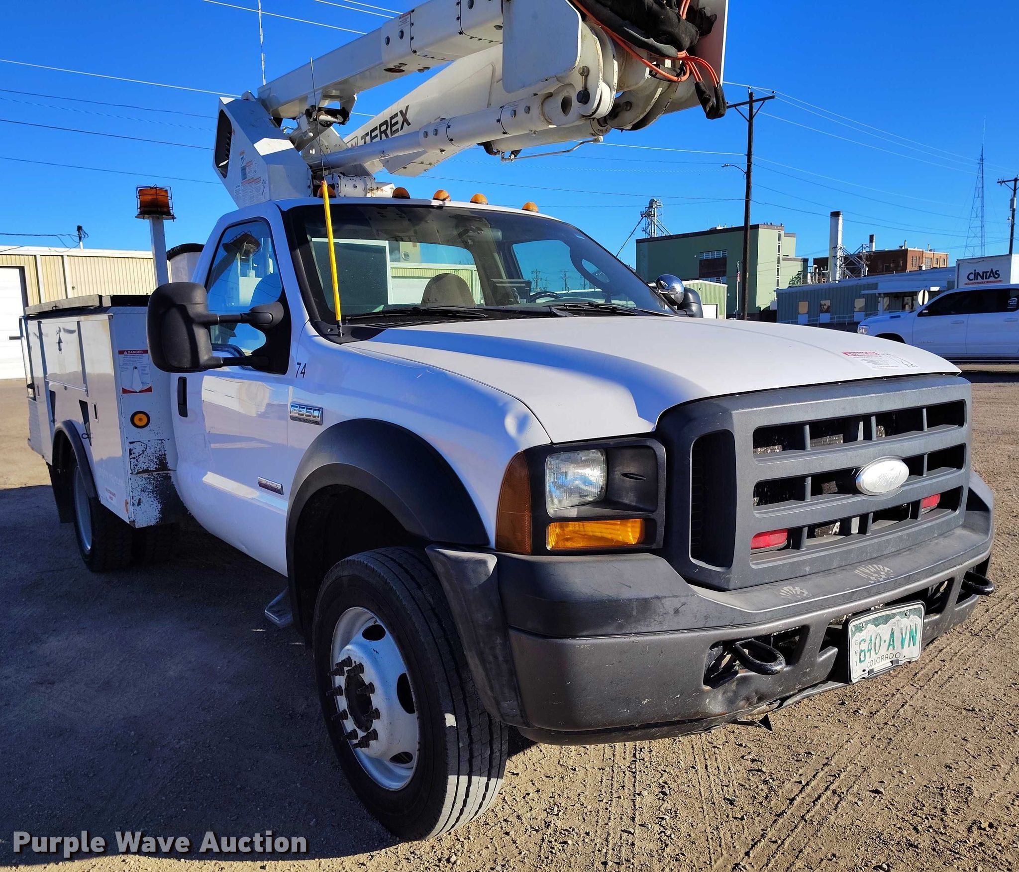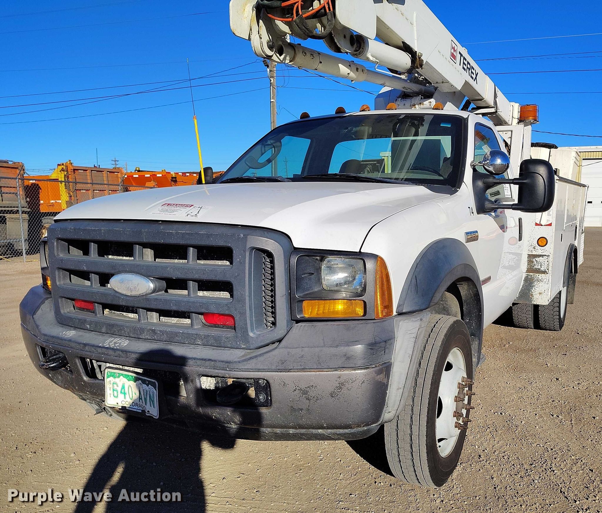 This 2006 Ford F550 Super Duty bucket truck will sell to the highest bidder regardless of price.