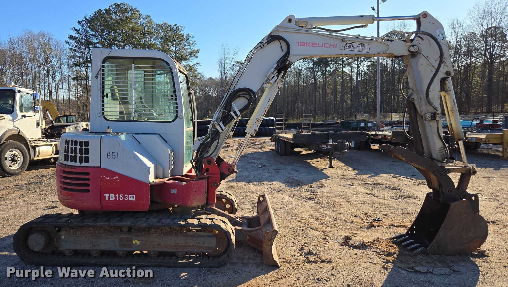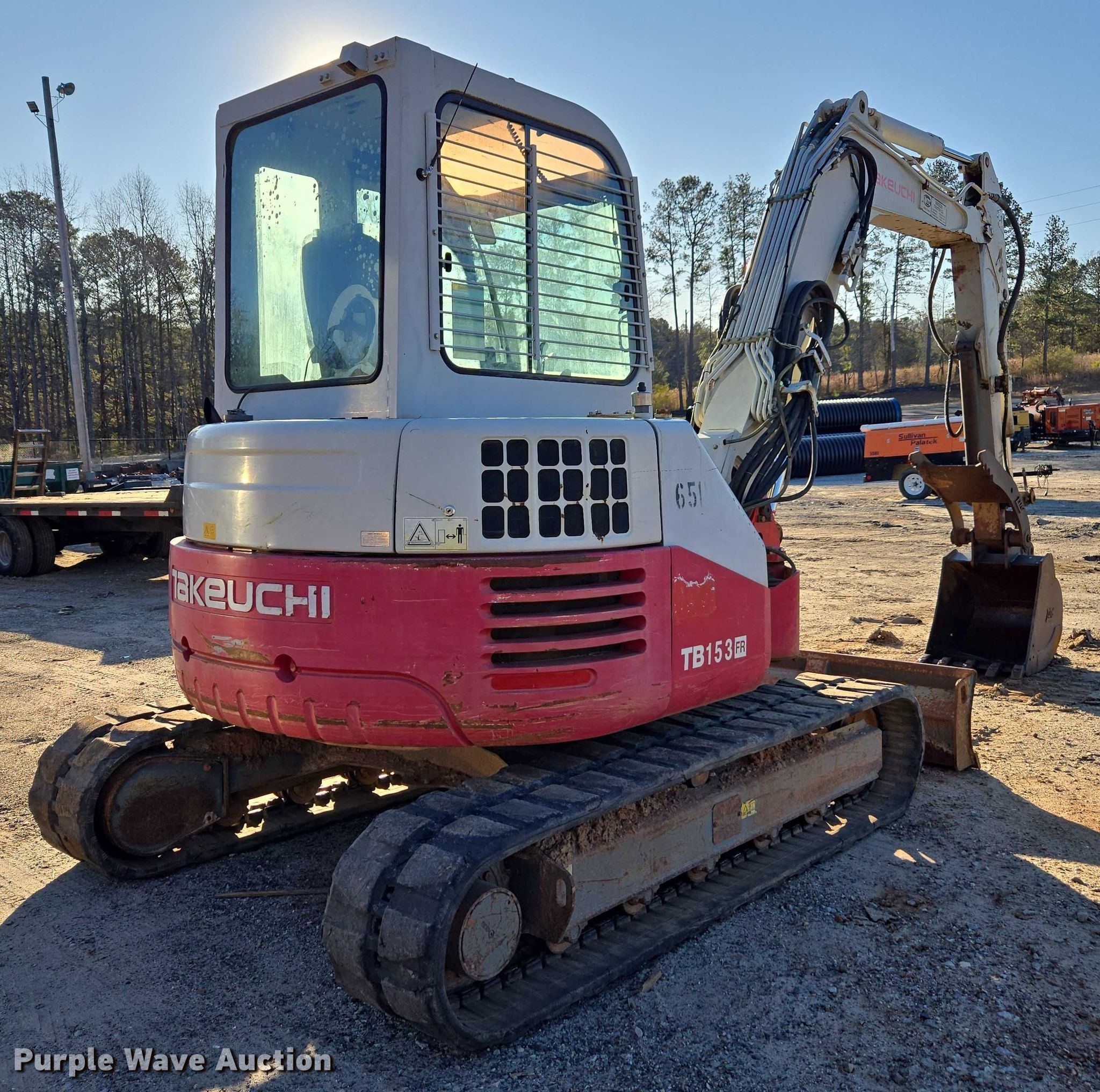 Purple Wave is selling a used Mini Excavator in Georgia. This item is a 2011 Takeuchi TB153FR mini excavator with the following: Hours: 3,102 on meter, Serial: 158301034