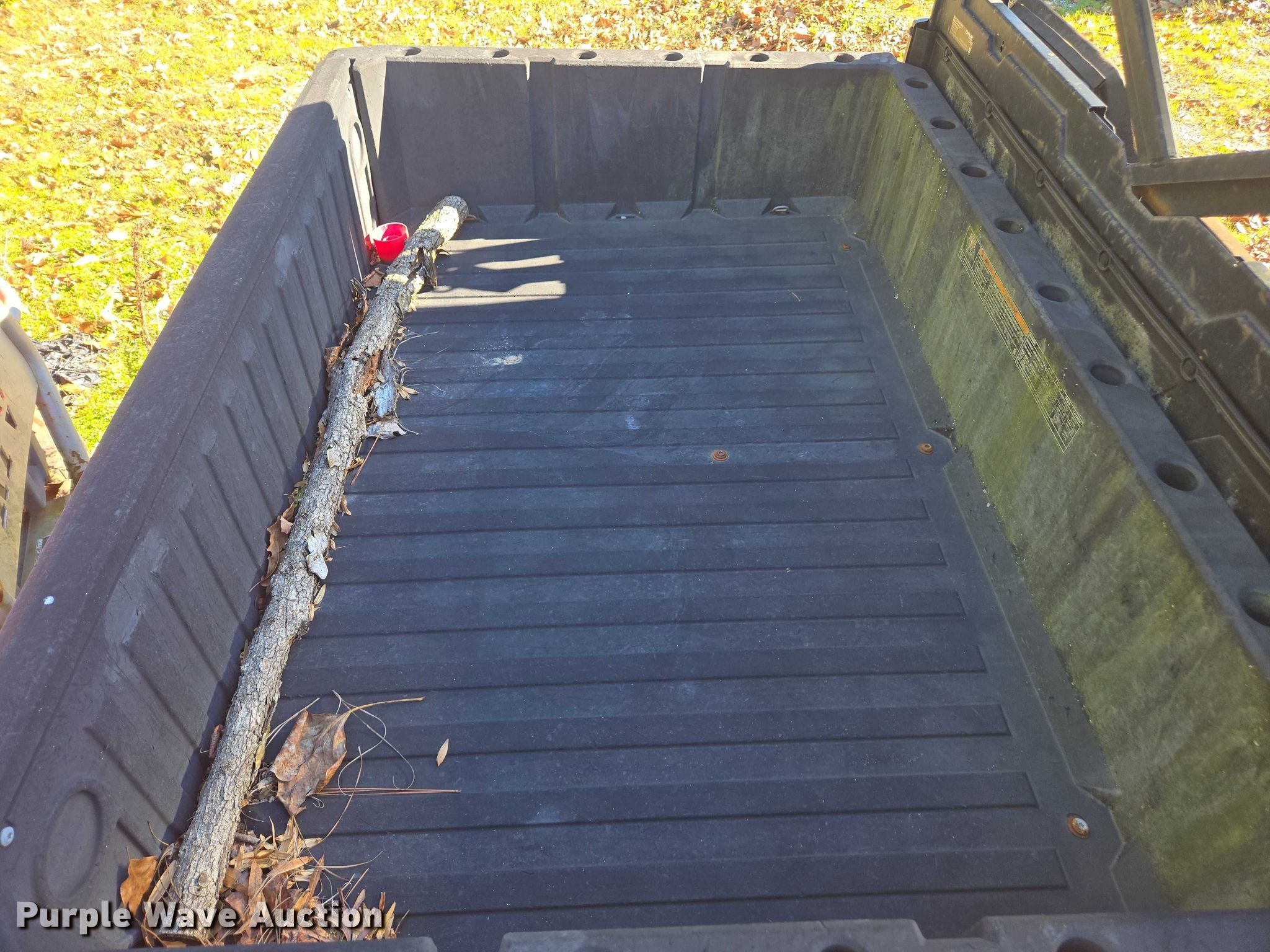 Polaris 570 utility vehicle. Hours: 1,366 on meter, VIN: 3NSRTA573FG501123. Engine Polaris, Cylinders: 2, Fuel type: Gas. Transmission Automatic. Chassis Four wheel drive/ All wheel drive. Operators station OROPS. Features Receiver hitch, Dump bed 36" L x 54" W, Dump bed type: Manual. Tires Front: 25x10-12, Rear: 25x11-12. Notes Dead battery, Non-operational unit, Unit must be towed or hauled. Transfer of ownership documentation will be a bill of sale. Clayton County Water Authority. Jonesboro, GA 30236