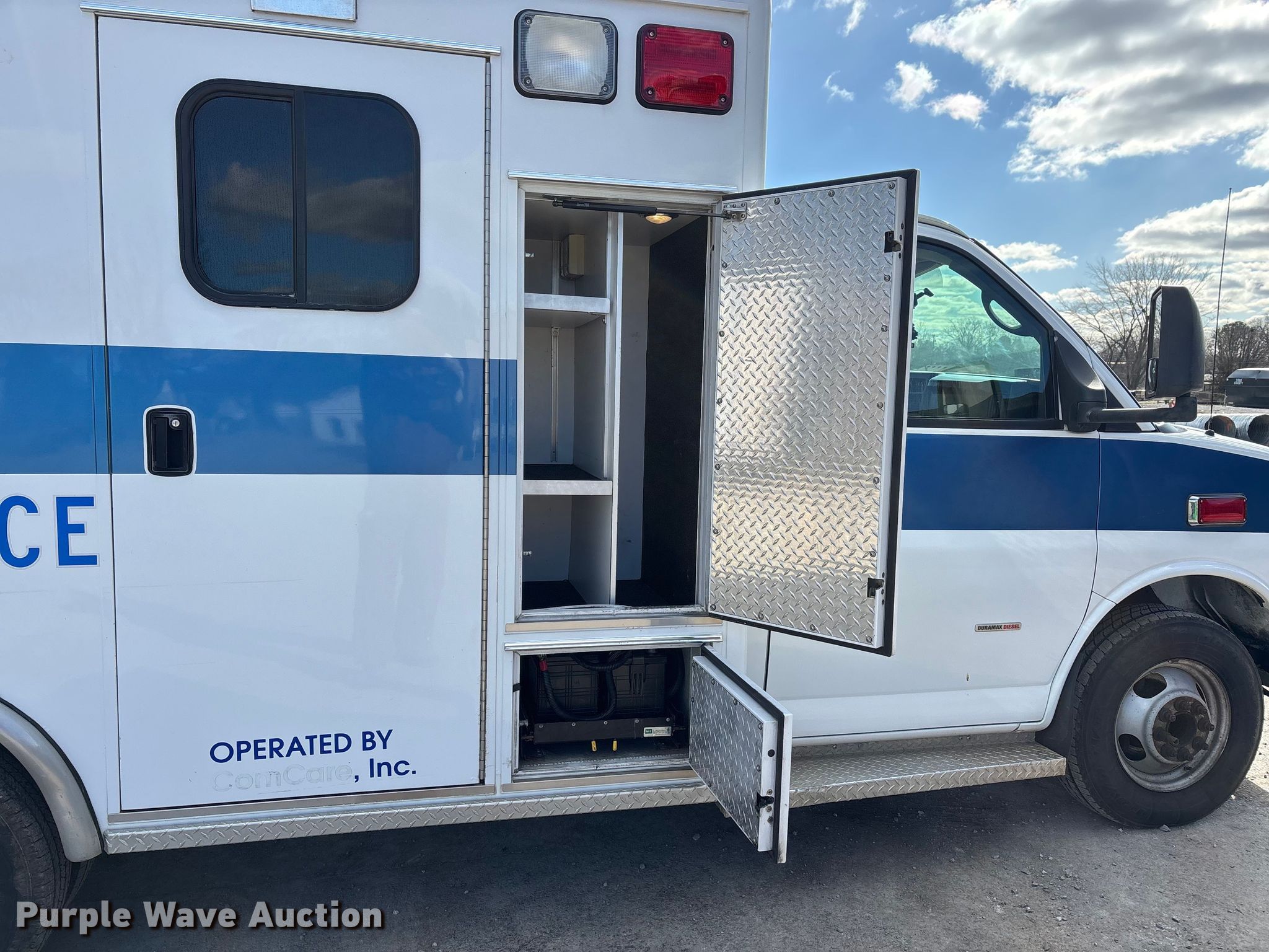 2010 Chevrolet Express 3500 ambulance. Miles: 334,759 on odometer, VIN: 1GB6G2B63A1131703, Unit #: Med 18. Engine Duramax LMM, Displacement: 6.6L, Cylinders: 8, Fuel type: Diesel. Transmission Automatic. Chassis Axles: Single, Suspension: Spring, Brakes: Hydraulic. Interior AC, Heat, Power windows, Power locks, Cruise control. Features Ambulance body SJC Industries Corp., PA/ siren controls, Oxygen hookups. Tires Size: 225/75R16. Notes Dash warning indicator: Check engine. Kentucky title. Title distribution may be delayed up to 30 days from verification of funds. Todd County, KY. Elkton, KY 42220