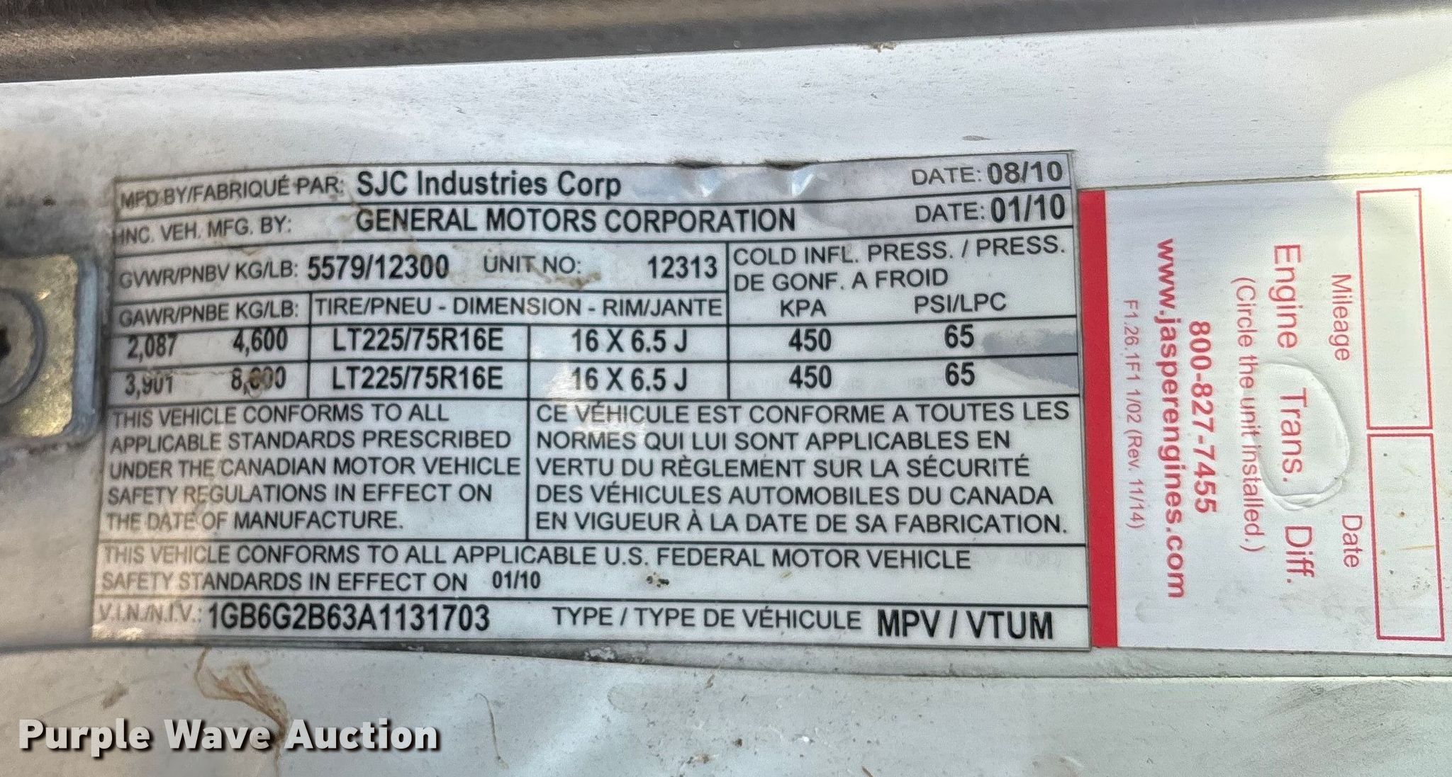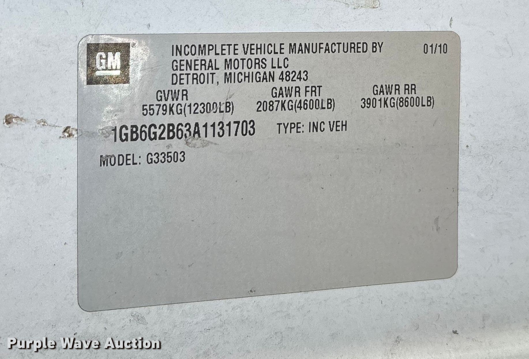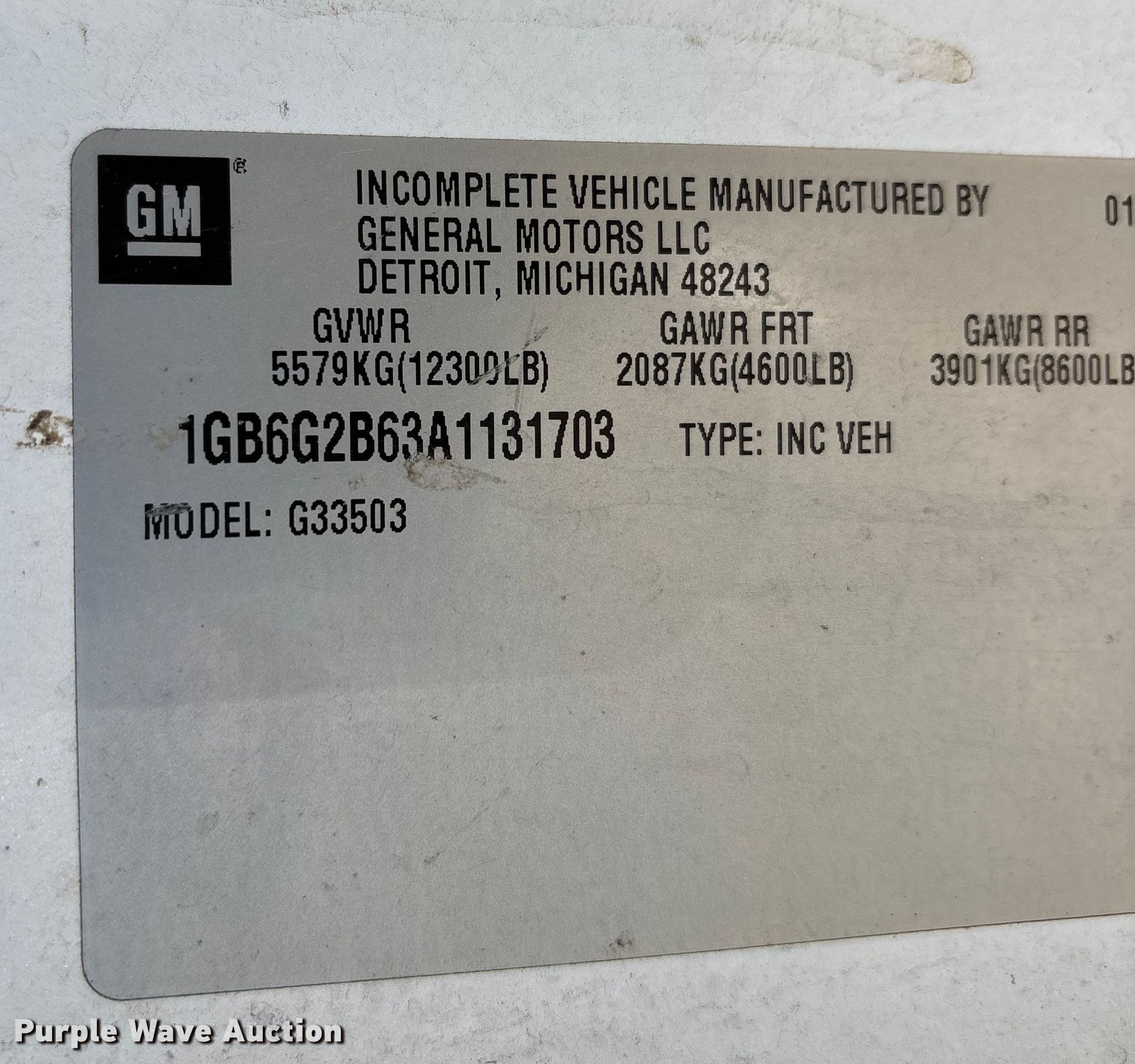 • VIN: 1GB6G2B63A1131703