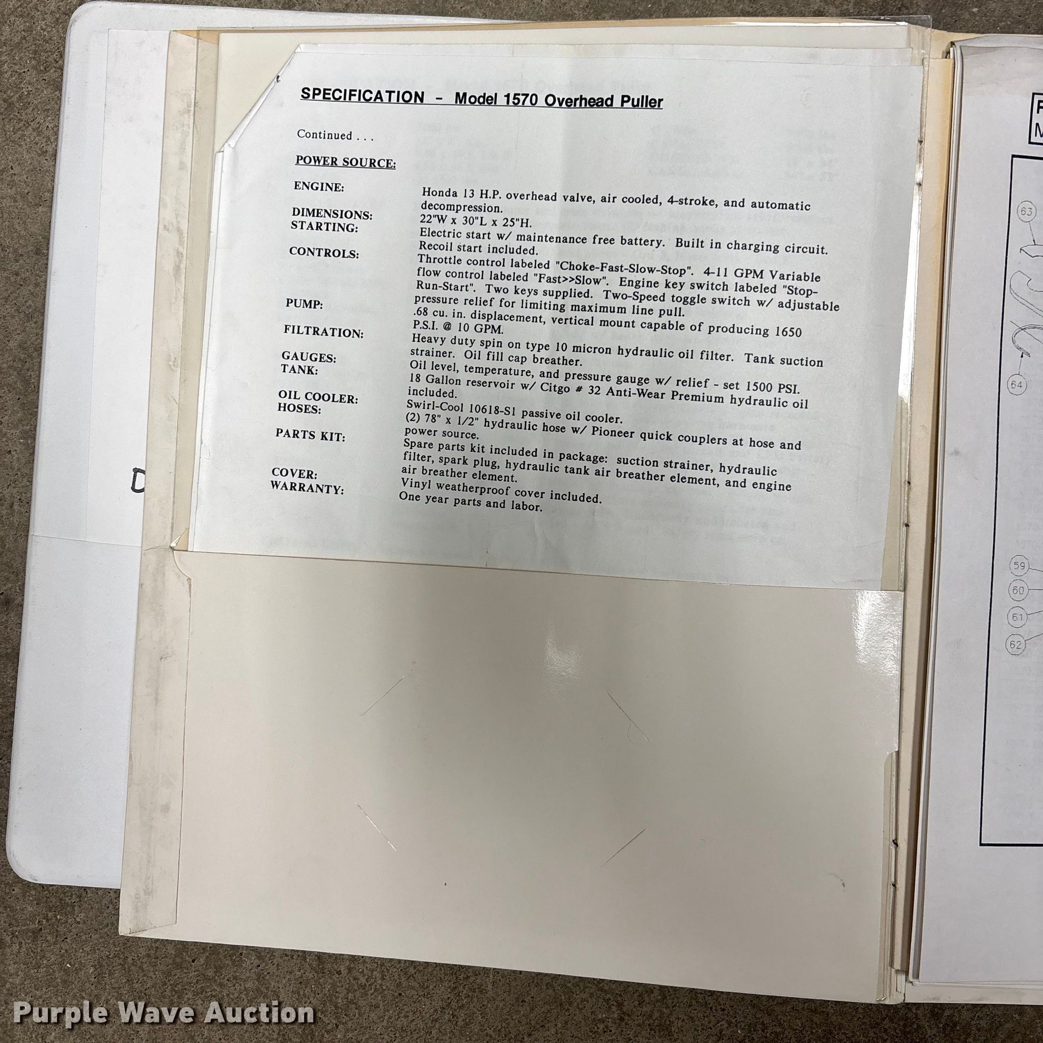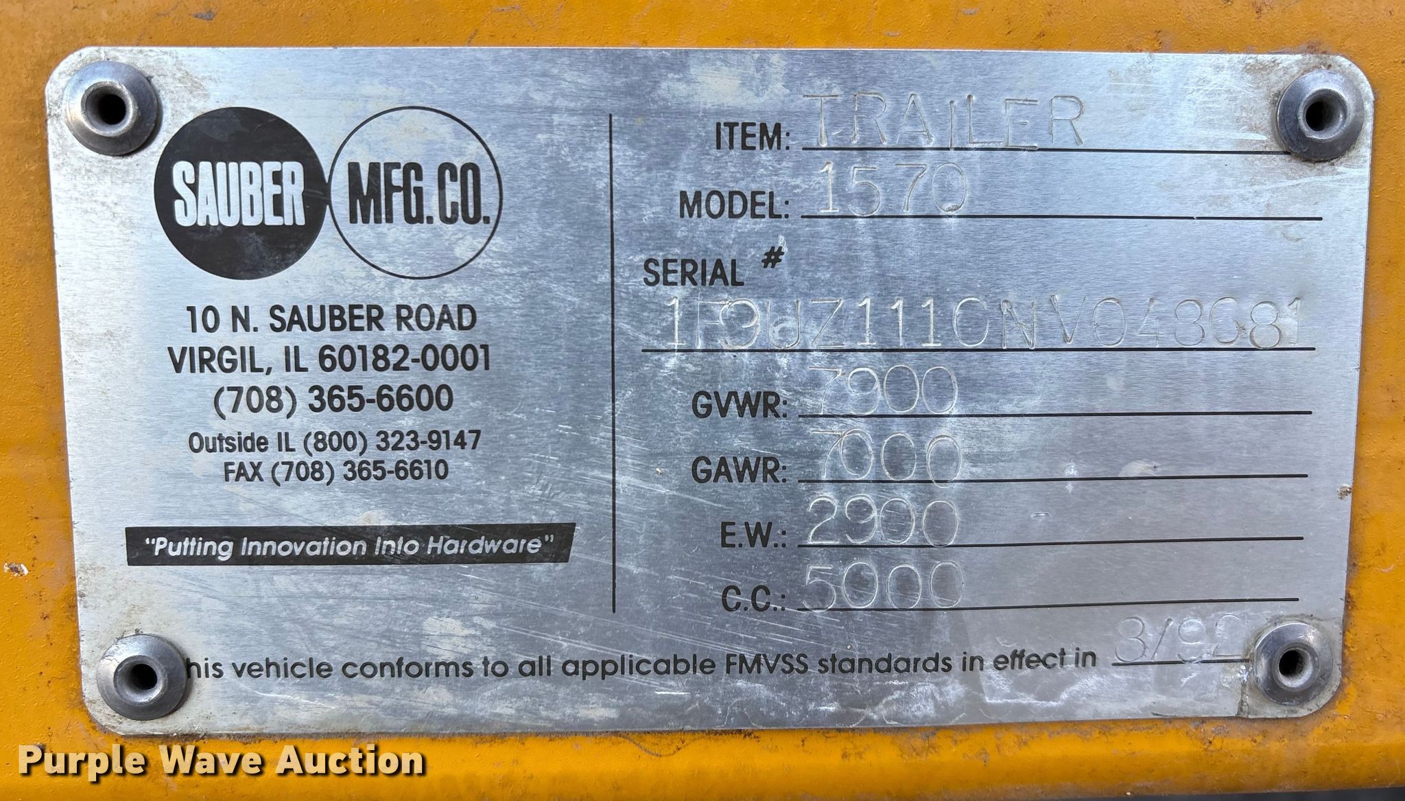 Purple Wave is selling a used Trailer Other in Missouri. This item is a Sauber Manufacturing 1570 cable puller with the following: Serial: 1F9UZ1110NV048681