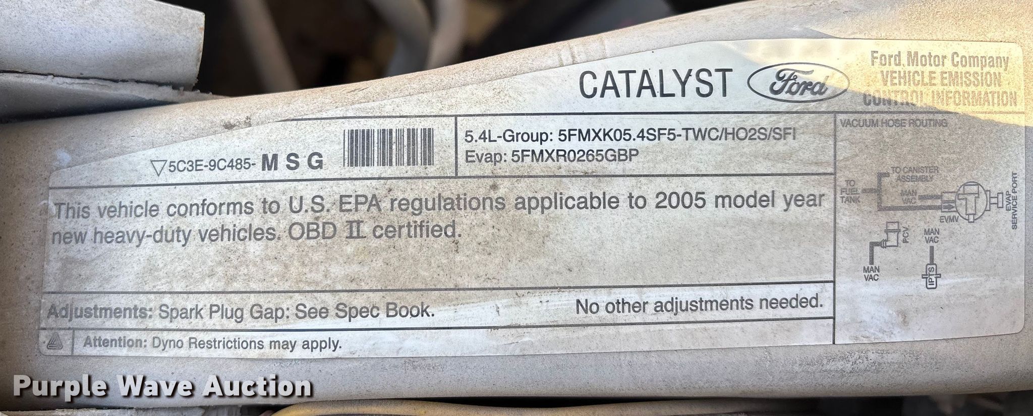 2005 Ford F250 XL Super Duty Ext. Cab utility bed pickup truck. Miles: 109,126 on odometer, VIN: 1FTSX205X5EC72058, Unit #: 64. Engine Displacement: 5.4L, Cylinders: 8, Fuel type: Gas. Transmission Automatic. Interior AC, Heat, Brake controller. Features Bed Utility bed, Stahl, Length: 8' 2", Width: 6' 7". Tires Size: 245/75R17. Notes Windshield chipped or cracked. Missouri title. Title distribution may be delayed up to 14 days from verification of funds. City of Farmington. Farmington, MO 63640