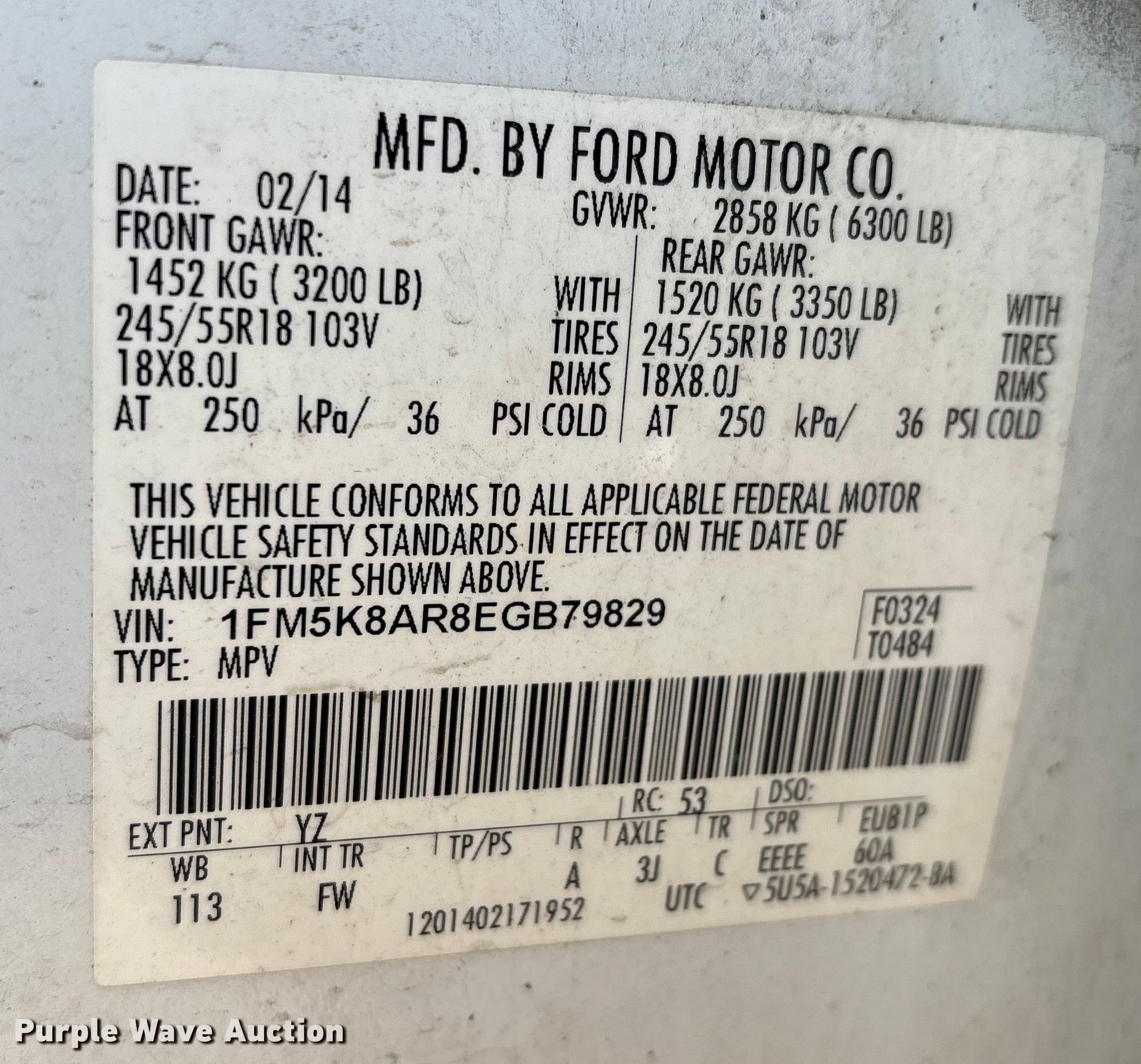 - VIN: 1FM5K8AR8EGB79829