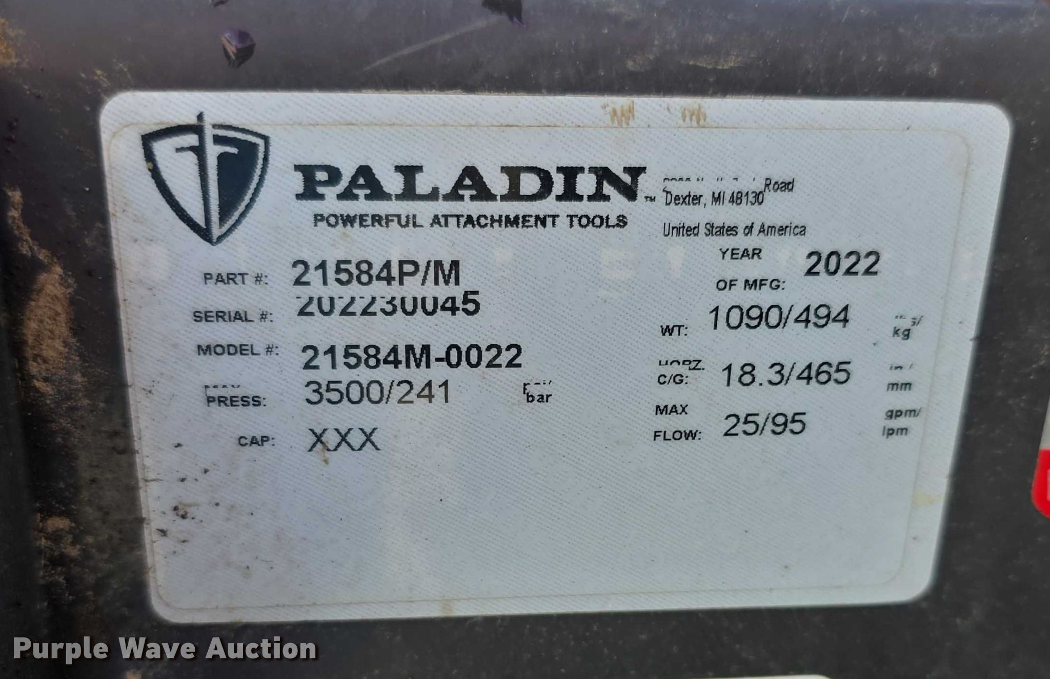 Purple Wave is selling a used Skid Steer Attach. in Kansas. This item is a 2022 Paladin 21584M-0022 skid steer sweeper with the following: Serial: 202230045, Skid steer not included