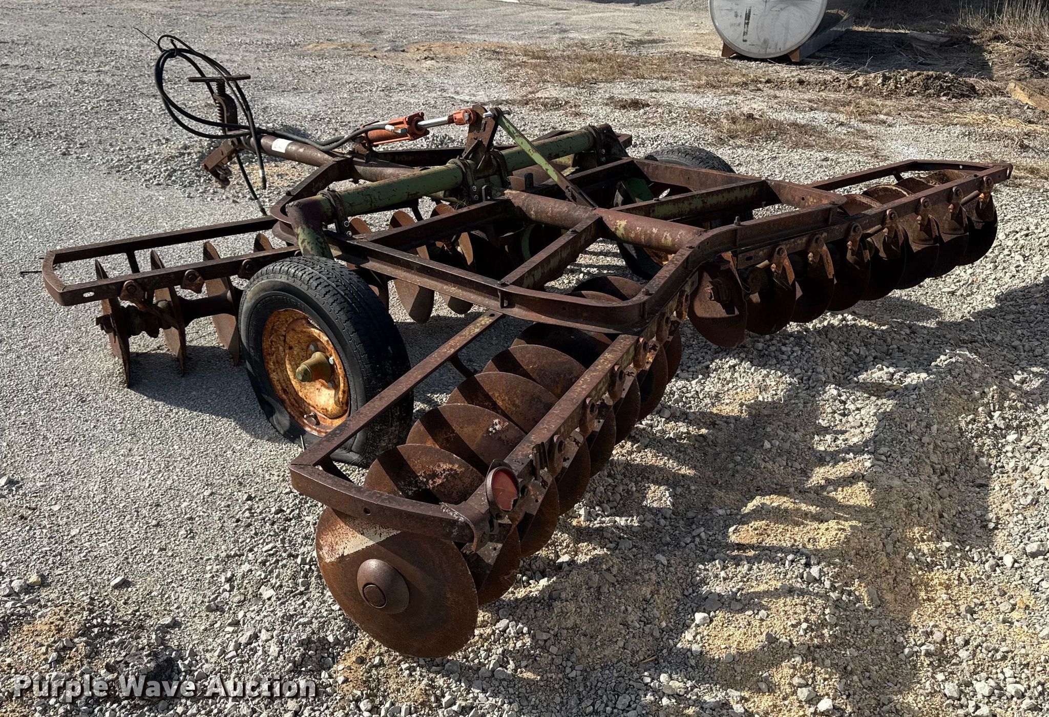 Purple Wave is selling a used Disk in Iowa. This item is a Tandem disk with the following: Overall width: 127"