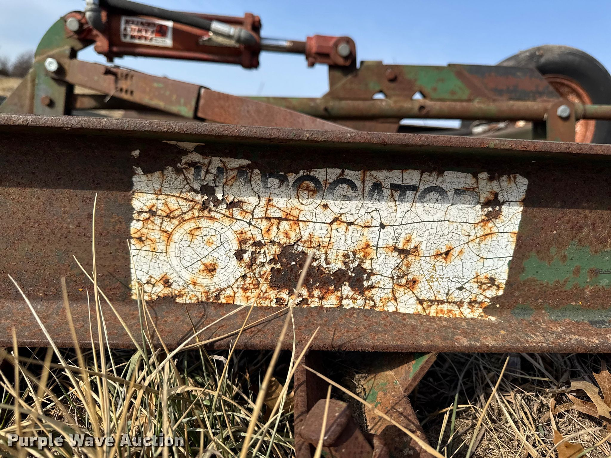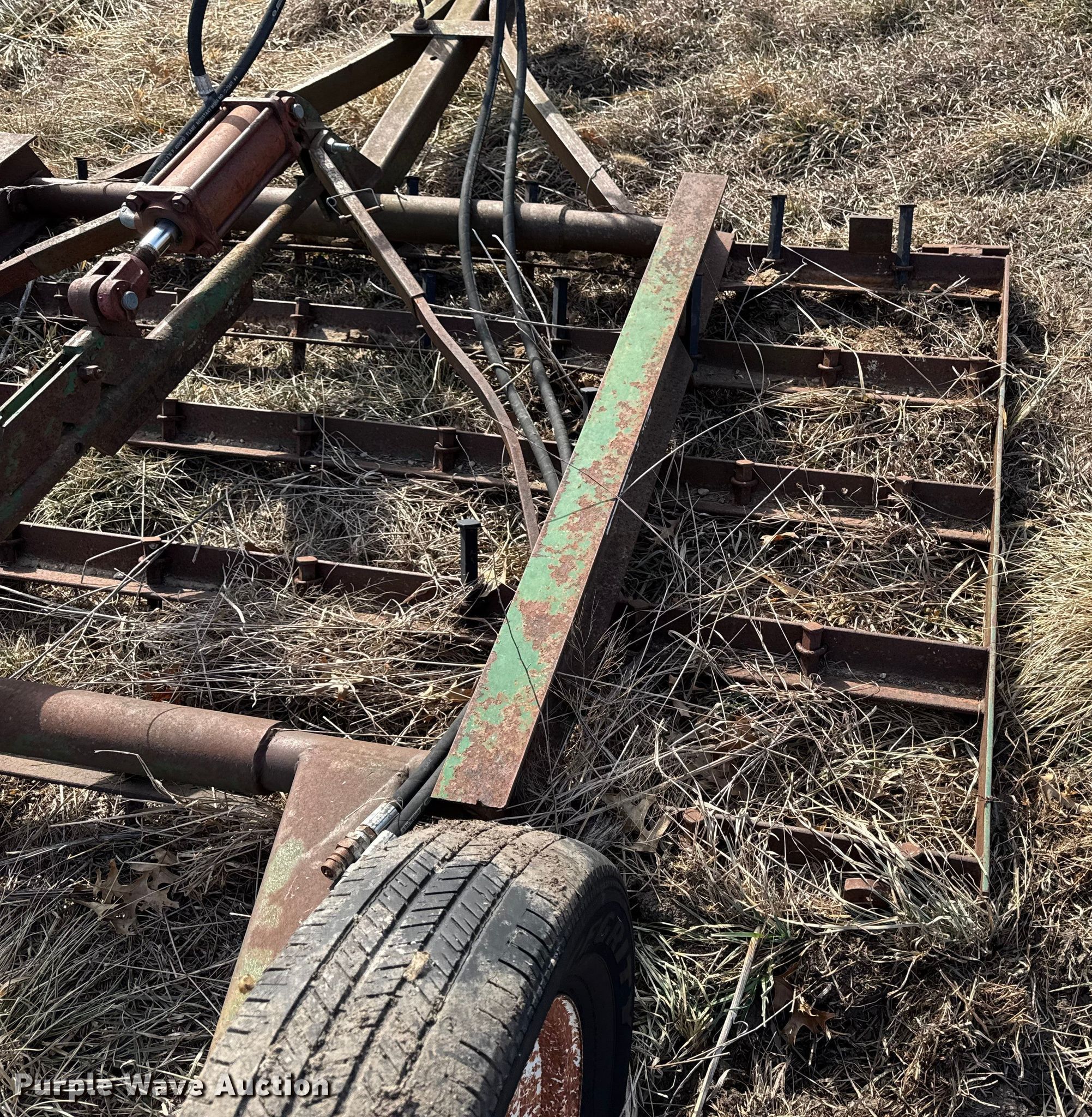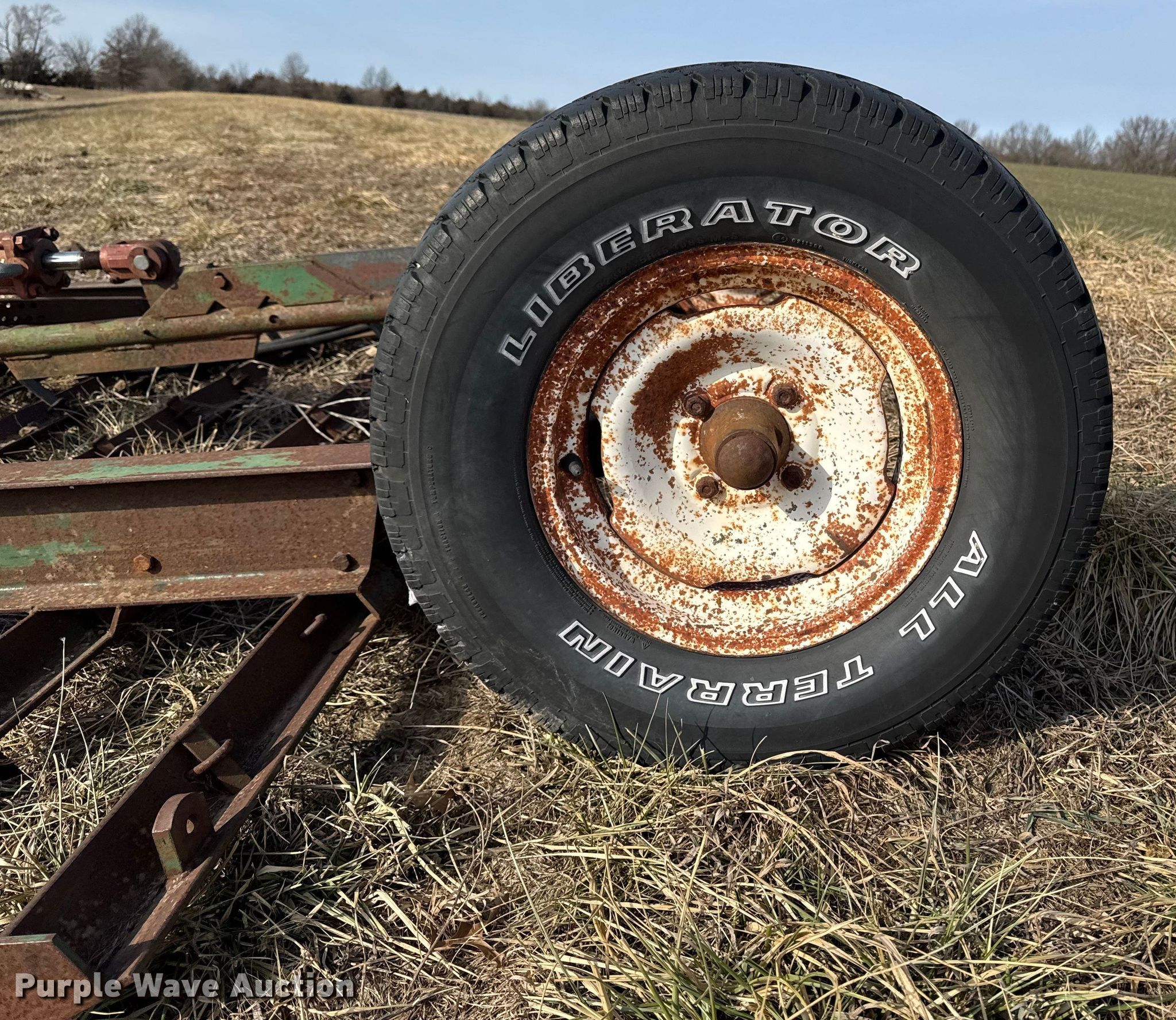 Harogator spike tooth harrow. Overall width: 104". Features Operation Hydraulic lift, Harrow bars: 5. Tires Tire size: 235/75R15. Davis County Highway. Bloomfield, IA 52537