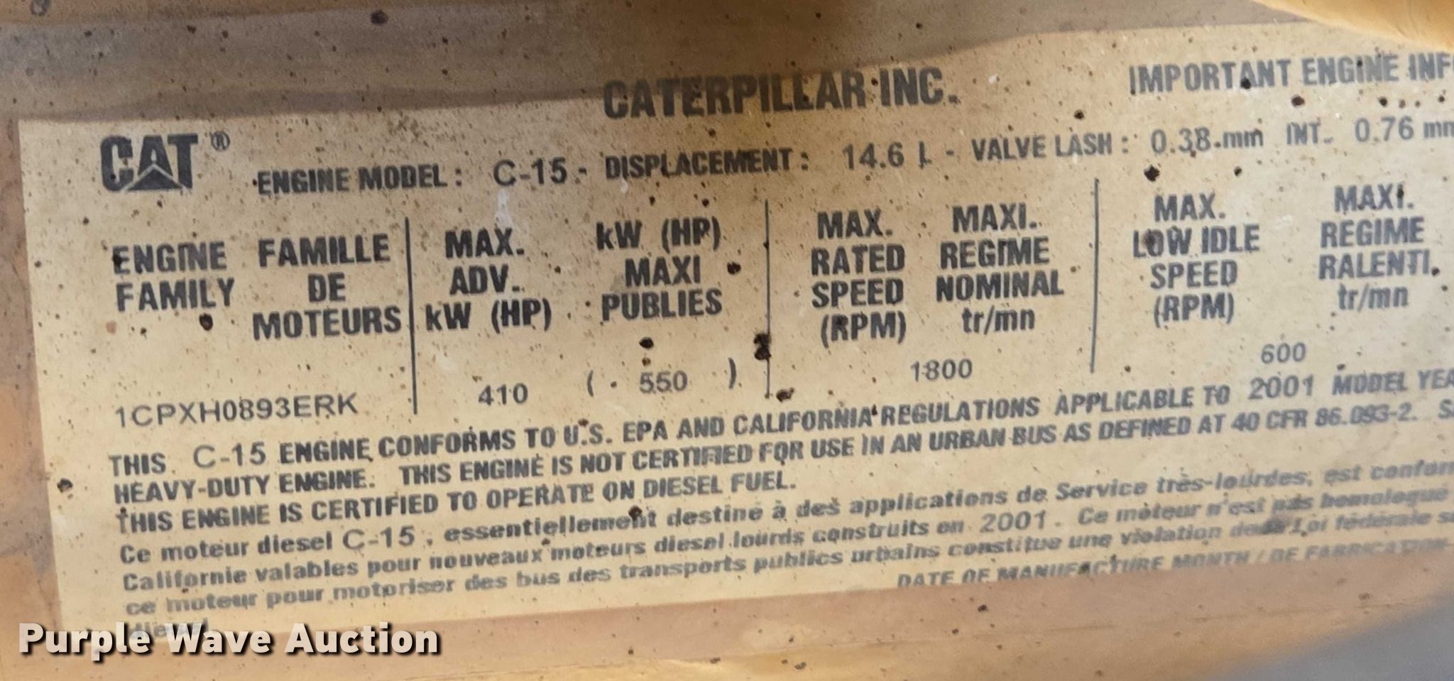 2002 International 5500i semi truck. Miles: 148,092 on odometer, Hours: 6,011 on meter, VIN: 1HSXLAST92J031108. Engine Caterpillar C-15, Serial: 6NZ47447, Displacement: 14.6L, Cylinders: 6, Fuel type: Diesel. Transmission Eaton Fuller, Manual, Speed: 13. Chassis Axles: Tandem, Differential lock: Inter-axle, Suspension: Spring over walking beam, Brakes: Air, PTO, Wet kit. Interior AC, Heat, Heated mirrors, Cruise control. Features Fifth wheel type: Air operated, Sliding, Fuel tank: Single. Tires Front: 385/65R22.5, Rear: 11R22.5. South Dakota title. Title distribution may be delayed up to 14 days from verification of funds. Codington County, SD. Watertown, SD 57201