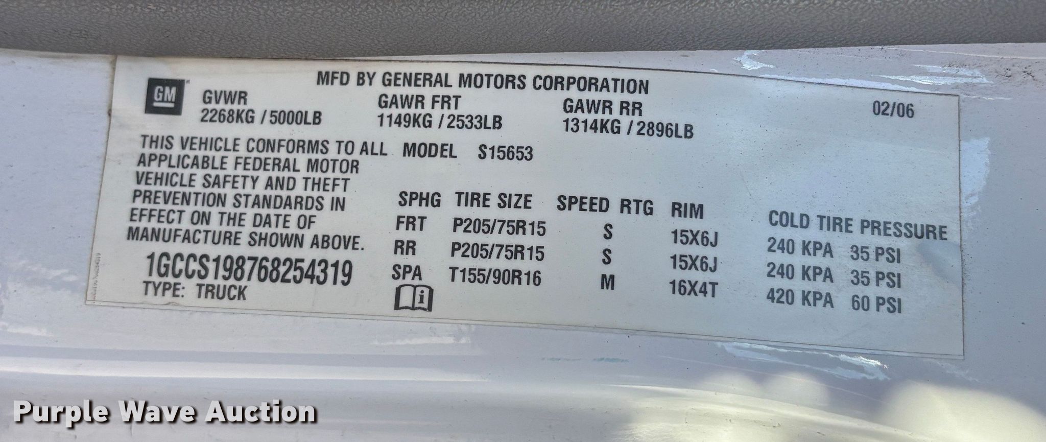 - VIN: 1GCCS198768254319