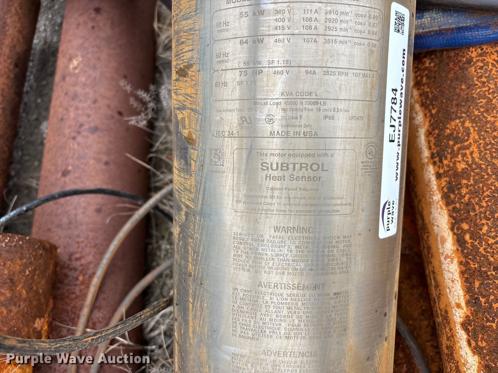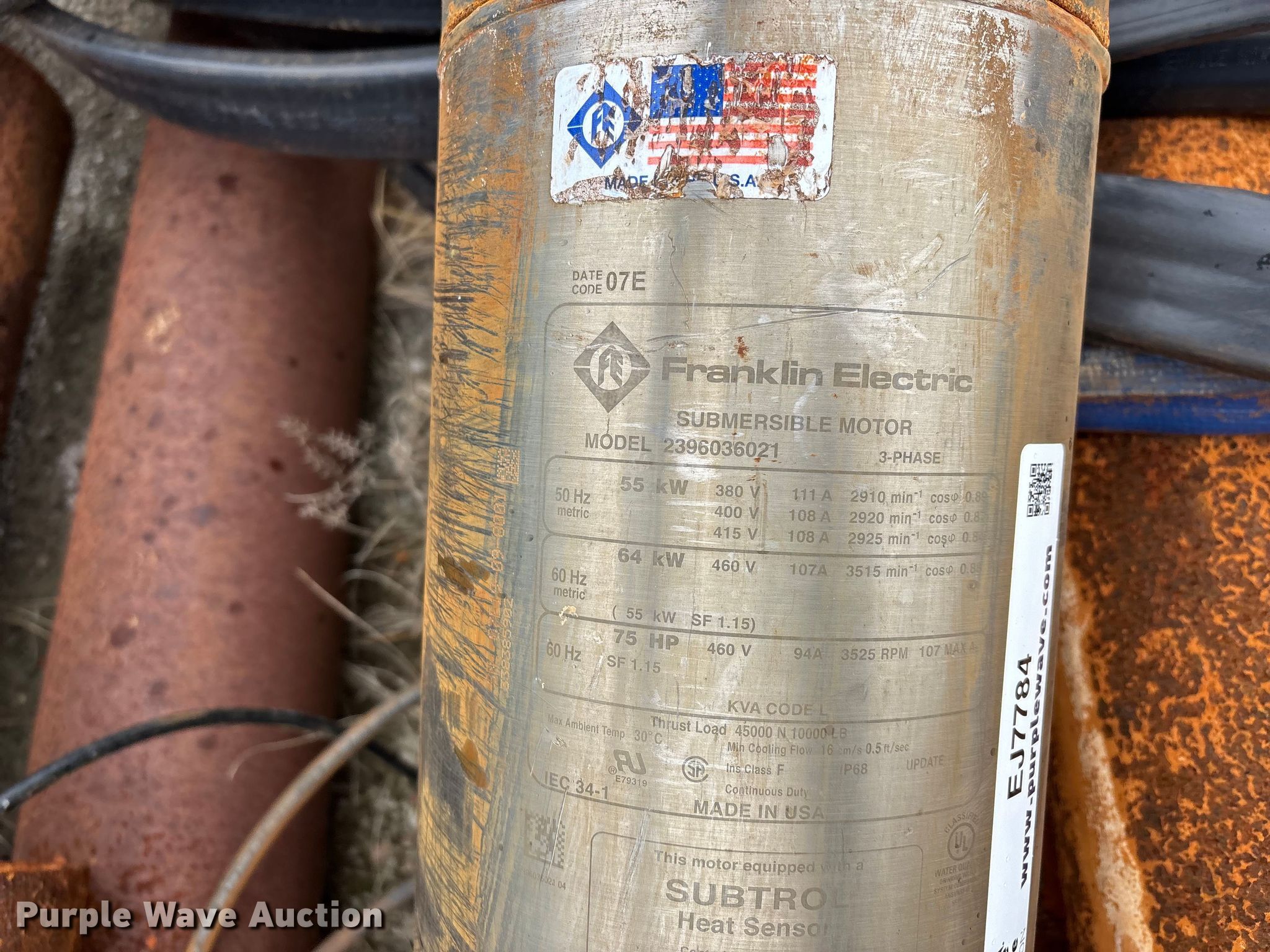 Purple Wave is selling a used Pipe in Missouri. This item is a Submersible pump and well casing with the following: Submersible water pump, Franklin Electric, Model: 2396036021, Phase: 3, 2/0 AWG wire, Pipe, (7) joints of 6" x 21', (2) joints of 6" x 15'