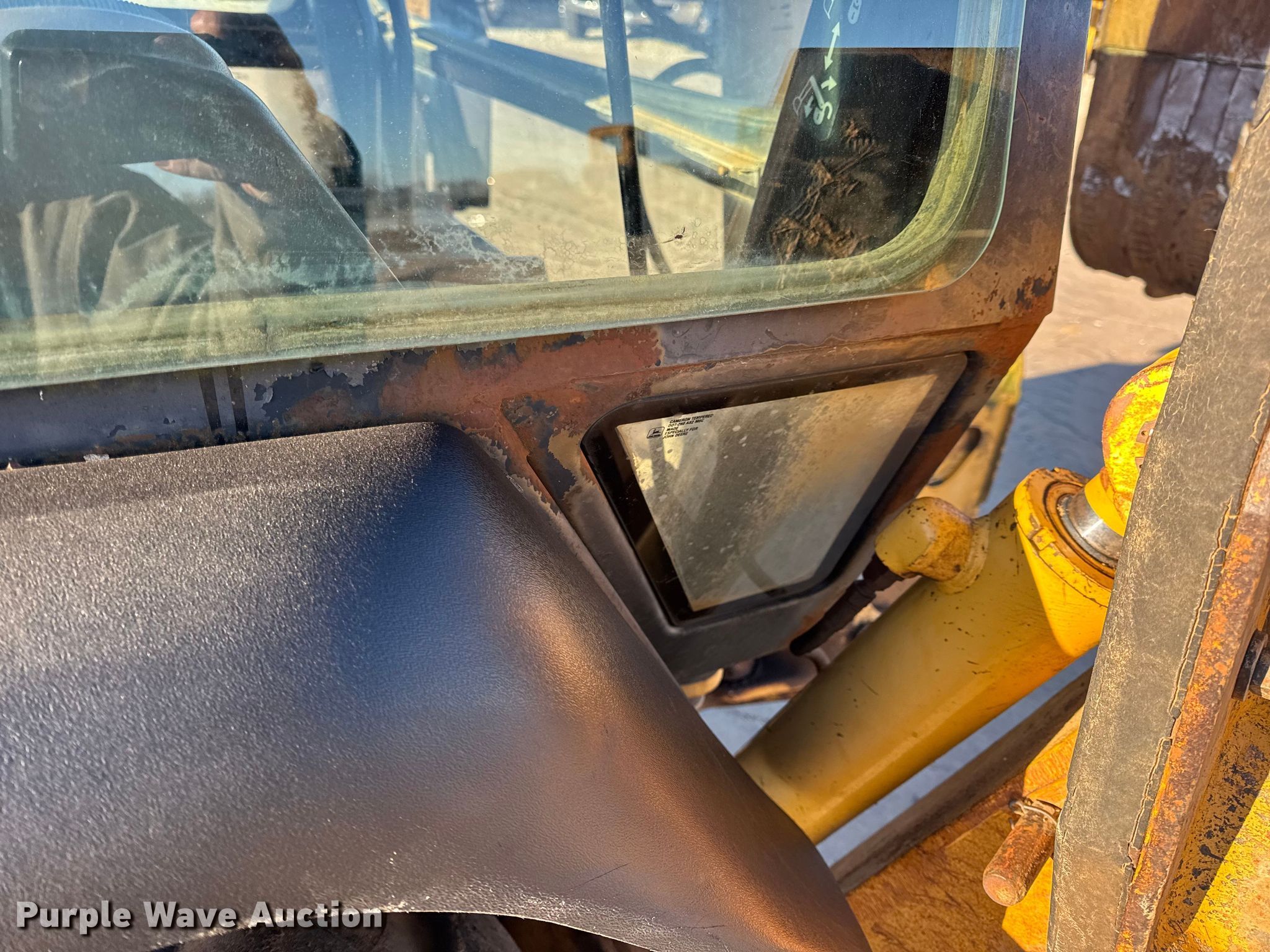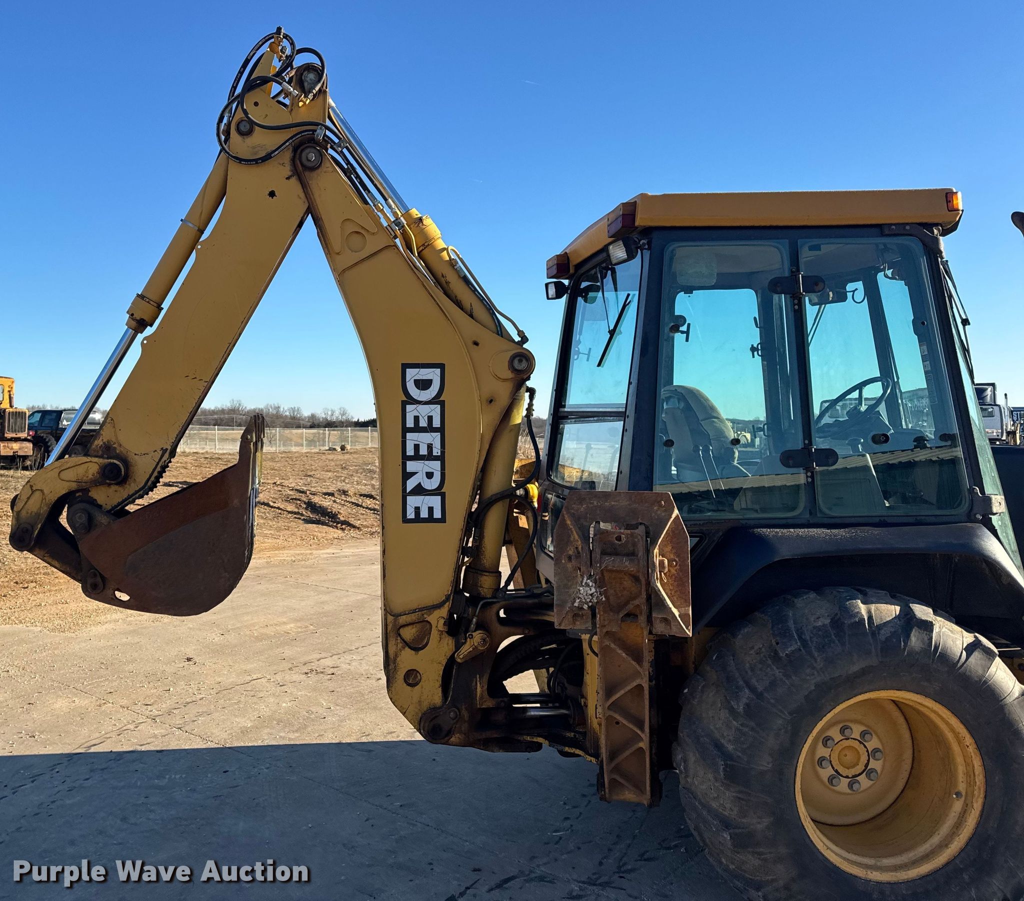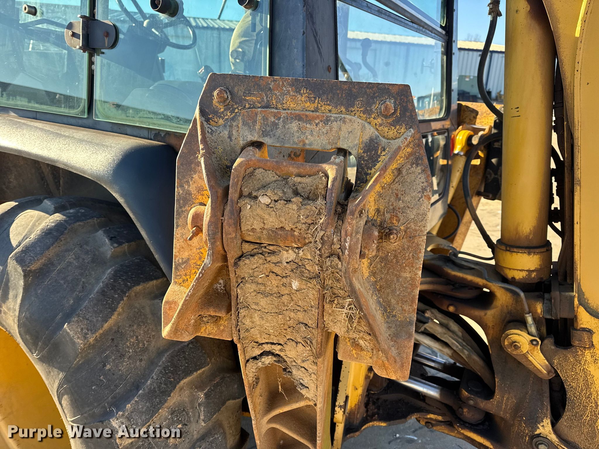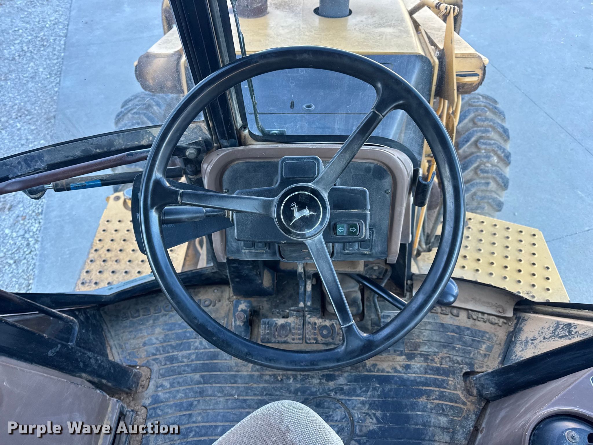 1999 John Deere 310SE backhoe. Hours: 10,767 on meter, Serial: T0310SE880144. Engine John Deere 4045TT050, Displacement: 4.5L, Cylinders: 4, Fuel type: Diesel. Transmission Shuttle shift. Chassis Four wheel drive, Differential lock. Operators station Enclosed cab, AC, Heat, Backhoe controls: Wobble stick / two stick. Features Loader Bucket John Deere AT175047, Four-in-one, Width: 92", Cutting edge: Bolt-on, Backhoe Extendable stick, Bucket Width: 24", Cutting edge: Weld-on, Teeth: 5.. Tires Front: 12.5/80-16, Rear: 19.5L-24. Notes Hydraulic leak, Tires damaged, weather cracking, Front right tire low pressure. LINN State Technical College. Linn, MO 65051