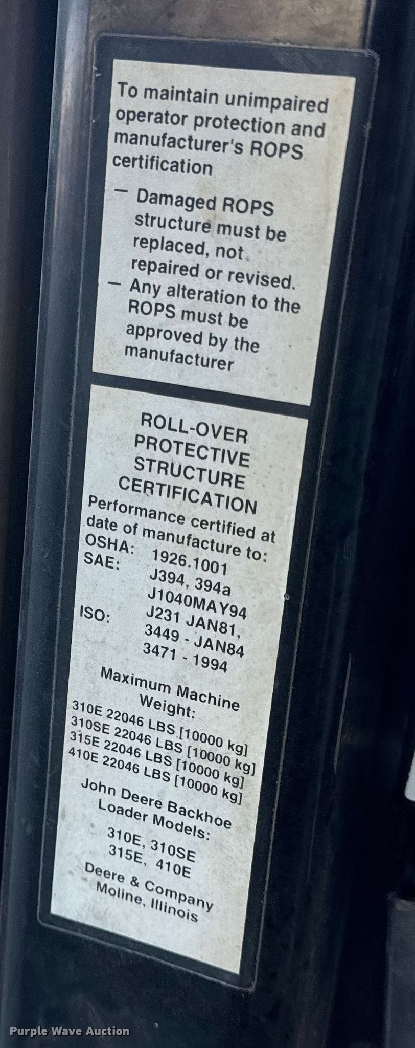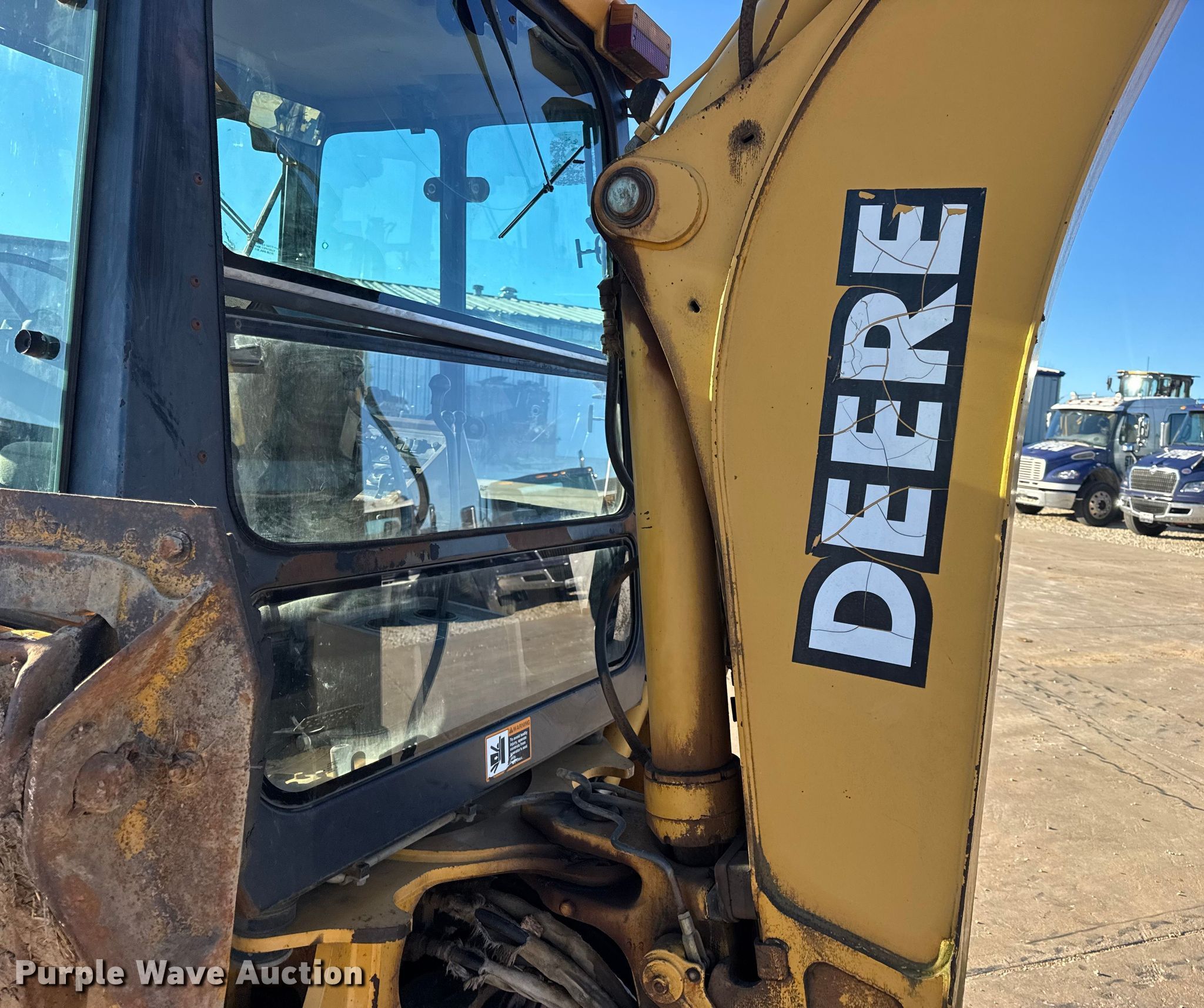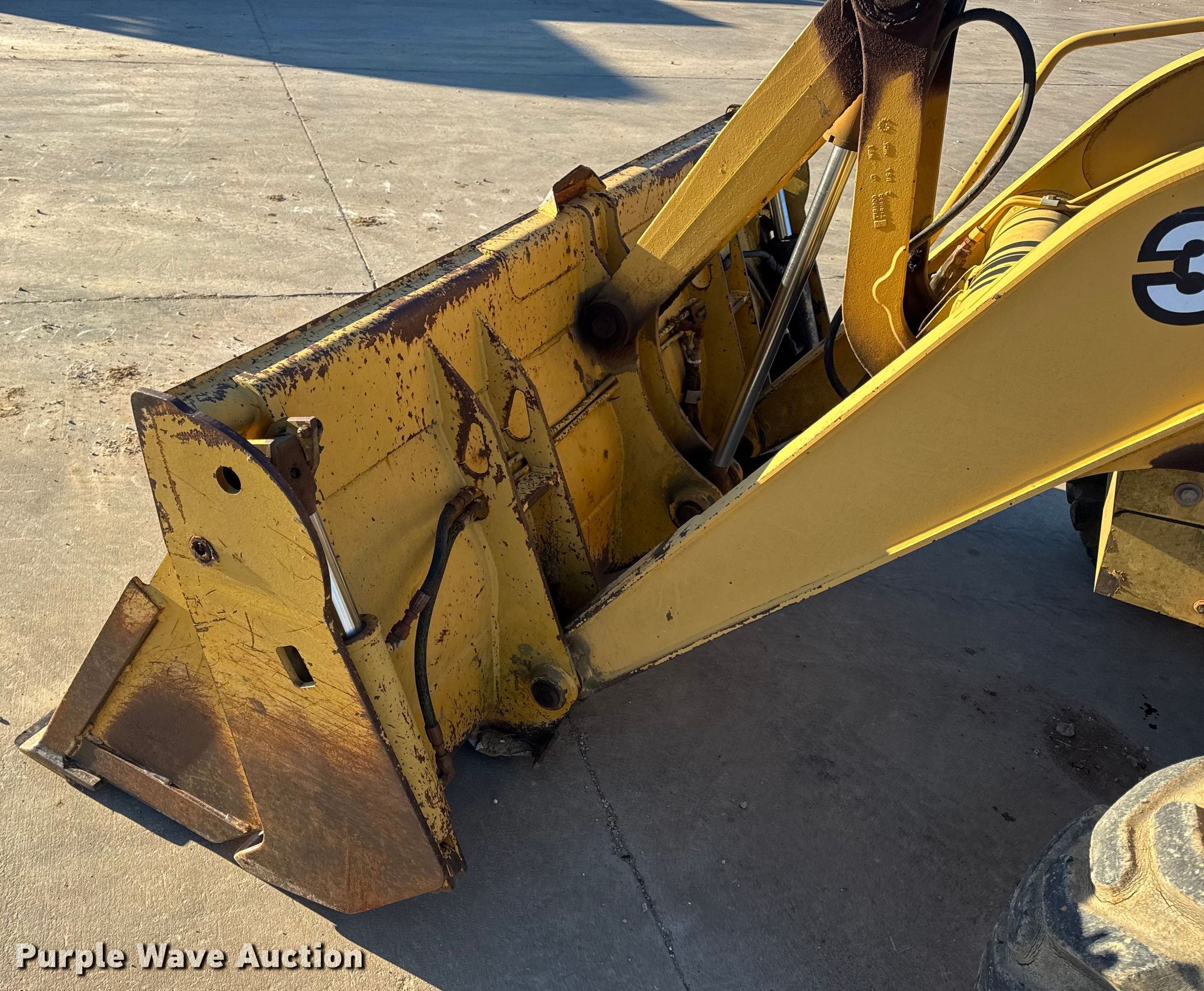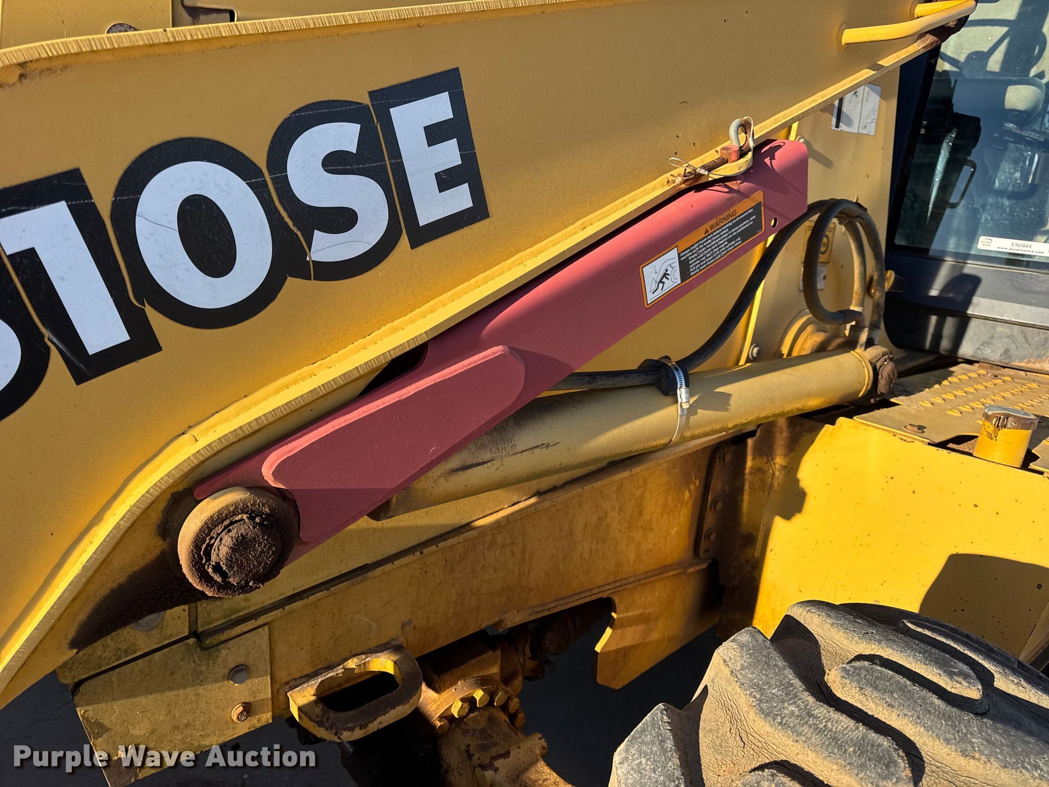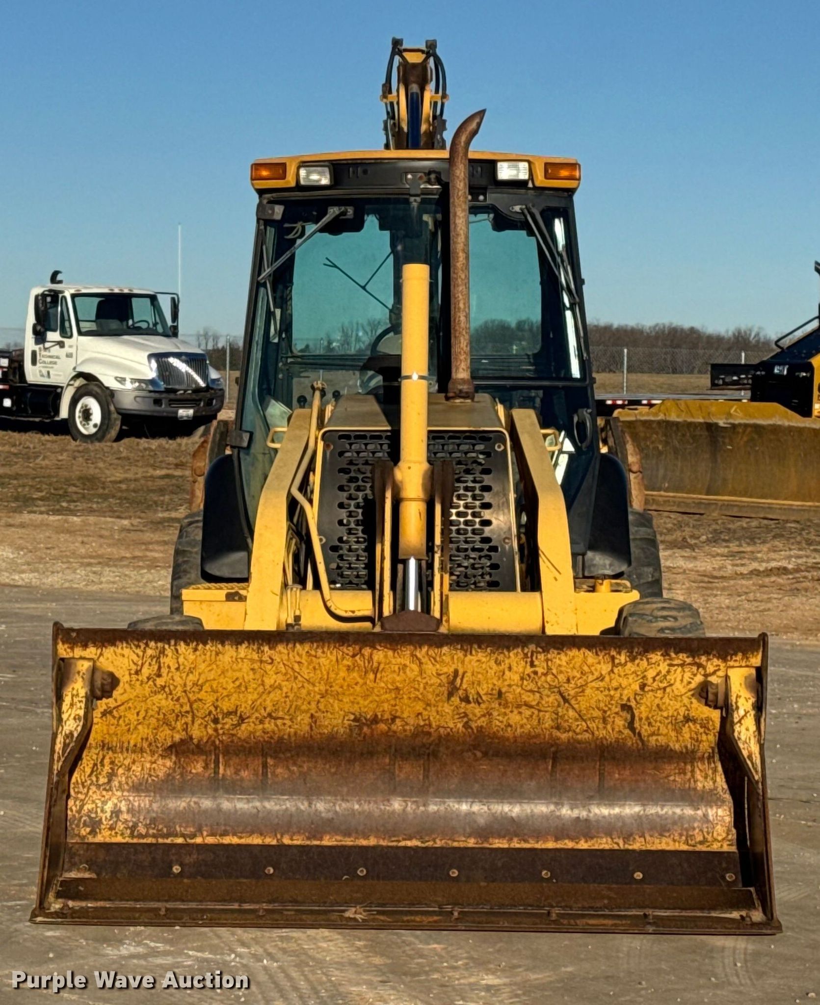 1999 John Deere 310SE backhoe. Hours: 10,767 on meter, Serial: T0310SE880144. Engine John Deere 4045TT050, Displacement: 4.5L, Cylinders: 4, Fuel type: Diesel. Transmission Shuttle shift. Chassis Four wheel drive, Differential lock. Operators station Enclosed cab, AC, Heat, Backhoe controls: Wobble stick / two stick. Features Loader Bucket John Deere AT175047, Four-in-one, Width: 92", Cutting edge: Bolt-on, Backhoe Extendable stick, Bucket Width: 24", Cutting edge: Weld-on, Teeth: 5.. Tires Front: 12.5/80-16, Rear: 19.5L-24. Notes Hydraulic leak, Tires damaged, weather cracking, Front right tire low pressure. LINN State Technical College. Linn, MO 65051