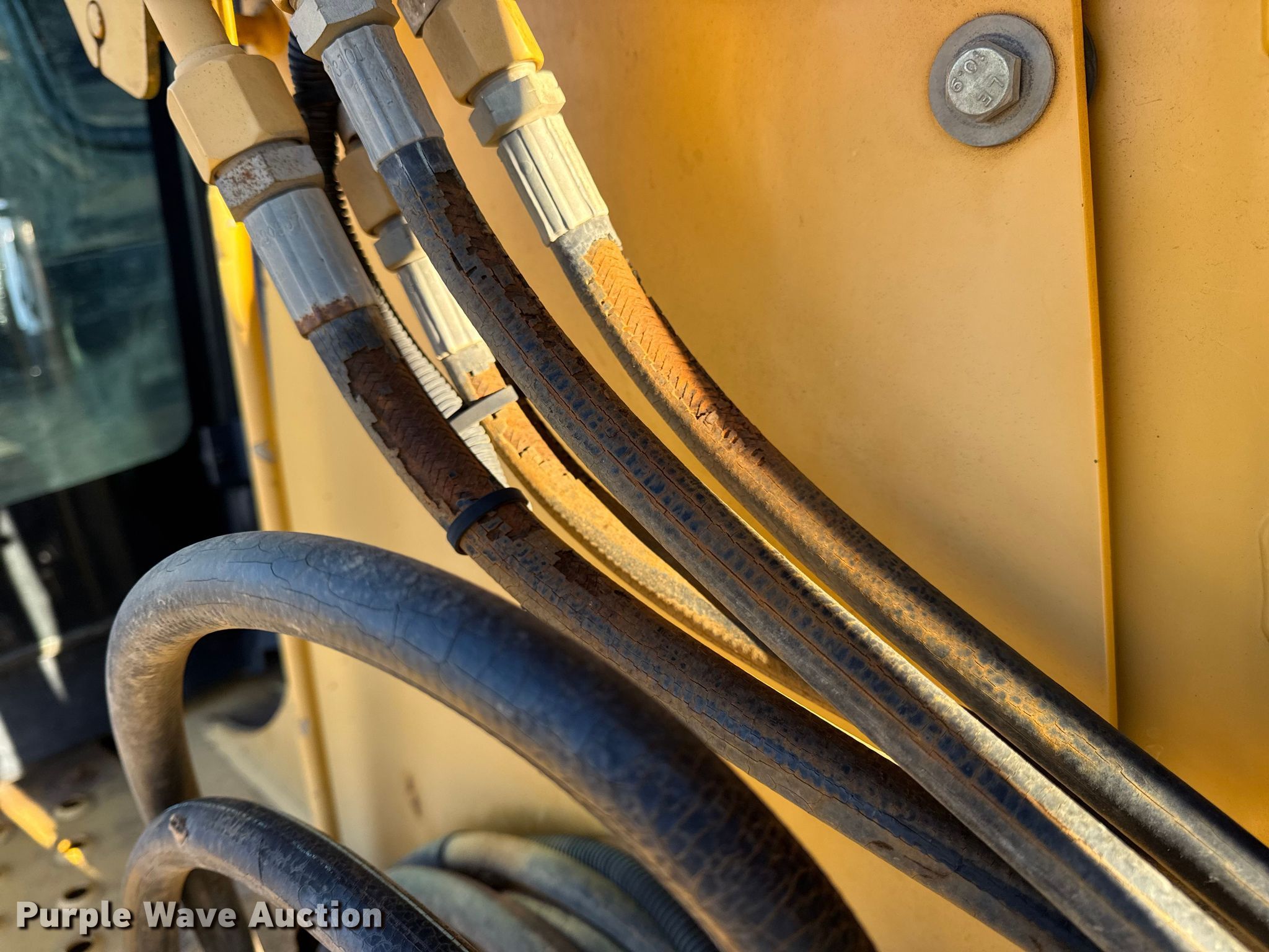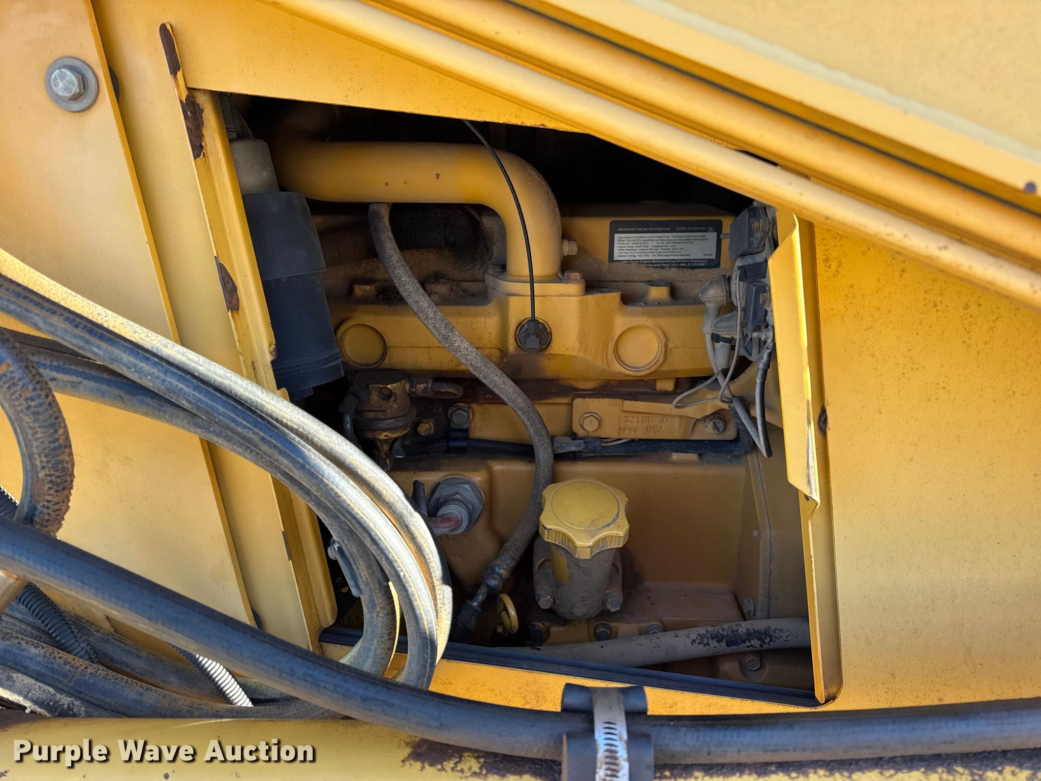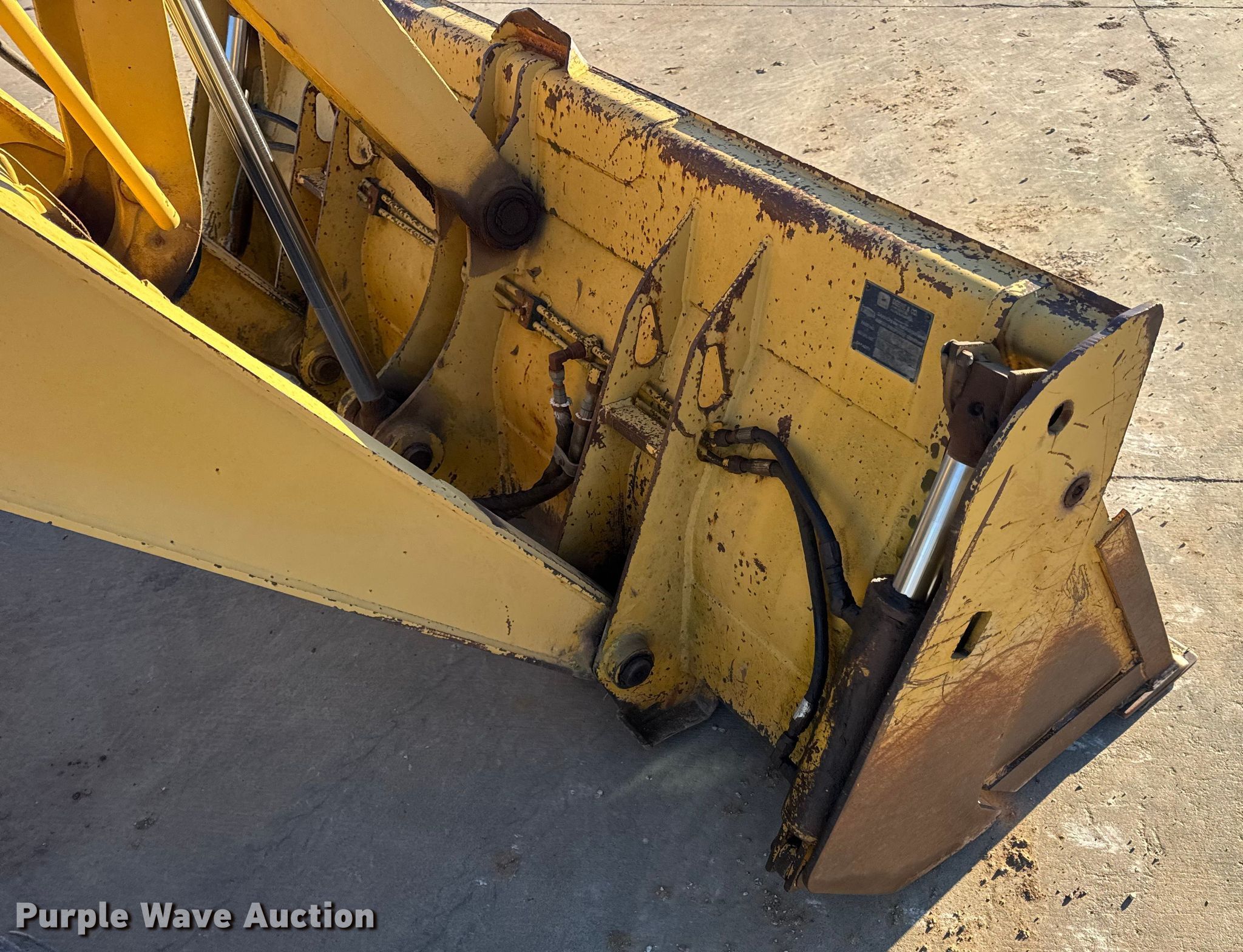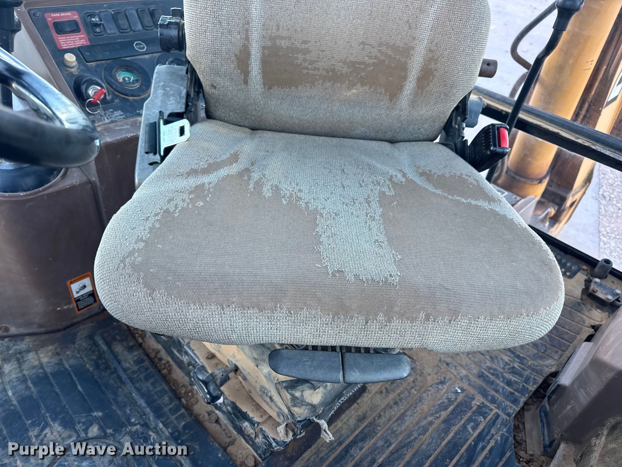 1999 John Deere 310SE backhoe. Hours: 10,767 on meter, Serial: T0310SE880144. Engine John Deere 4045TT050, Displacement: 4.5L, Cylinders: 4, Fuel type: Diesel. Transmission Shuttle shift. Chassis Four wheel drive, Differential lock. Operators station Enclosed cab, AC, Heat, Backhoe controls: Wobble stick / two stick. Features Loader Bucket John Deere AT175047, Four-in-one, Width: 92", Cutting edge: Bolt-on, Backhoe Extendable stick, Bucket Width: 24", Cutting edge: Weld-on, Teeth: 5.. Tires Front: 12.5/80-16, Rear: 19.5L-24. Notes Hydraulic leak, Tires damaged, weather cracking, Front right tire low pressure. LINN State Technical College. Linn, MO 65051