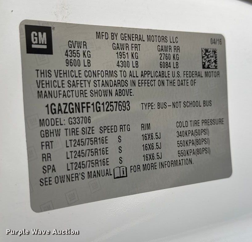 Purple Wave is selling a used 3/4 or 1 Ton Pickup or Van in Missouri. This item is a 2016 Chevrolet Express 3500 Van with the following: Miles: 137,885 on odometer, VIN: 1GAZGNFF1G1257693, Unit #: 9405