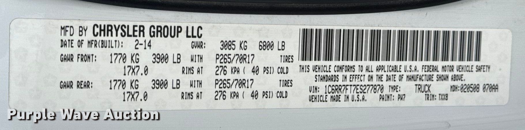 Purple Wave is selling a used 1/2 Ton Pickup or Van in Missouri. This item is a 2014 RAM 1500 Ext. Cab pickup truck with the following: Miles: 267,696 on odometer, Hours: 7,431 on meter, VIN: 1C6RR7FT7ES277870, Unit #: B7157