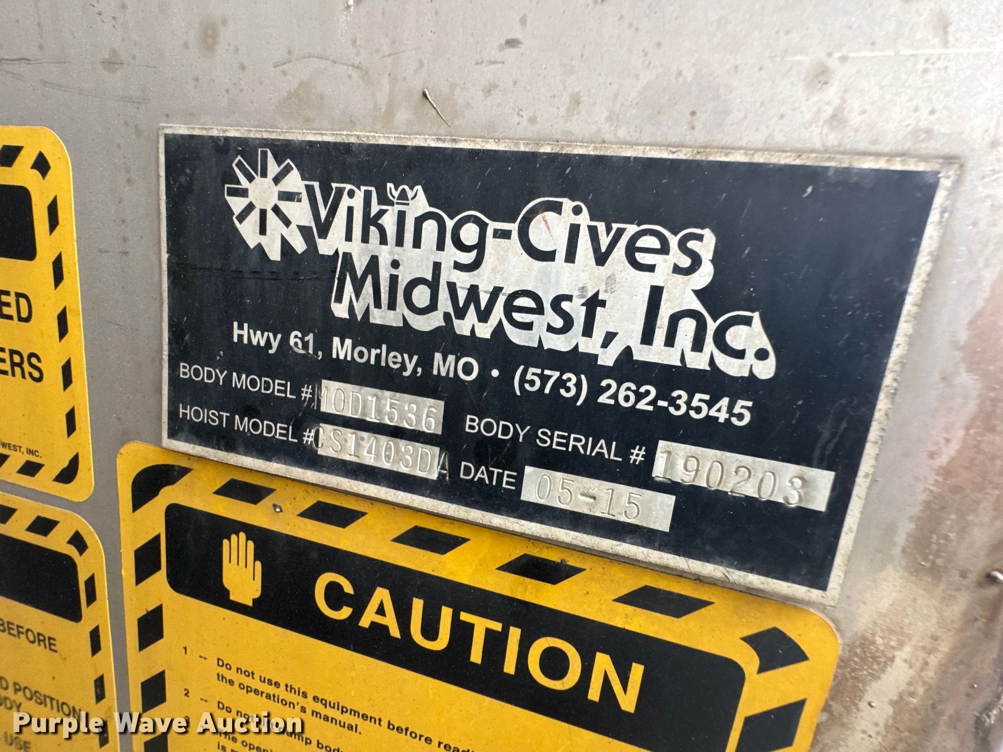 2016 International 7500 SFA dump truck. Miles: 145,655 on odometer, Hours: 6,981 on meter, VIN: 1HTWPSUT4GH222108, Unit #: 9322. Engine International Maxxforce, Displacement: 9.3L, Cylinders: 6, Fuel type: Diesel. Transmission Allison, Automatic. Chassis Axles: Tandem, Suspension: Spring over walking beam, Brakes: Air, PTO, GVWR: 58,000 lbs FAWR: 18,000 lbs, IAWR: 20,000 lbs, RAWR: 20,000 lbs. Interior AC, Heat, Heated mirrors, Power windows, Cruise control. Features Bed Dump bed, Viking Cives MOD1536, Serial: 190203, Length: 15', Width: 101", Side height: 36", Bed vibrator, Roll tarp, Ram: Single, End gate: Air operated. Tires Front: 315/80R22.5, Rear: 11R22.5. Notes Dash warning indicator: Check engine, ABS, Non-operational dump bed. Missouri title. Title distribution may be delayed up to 14 days from verification of funds. Missouri Department of Transportation. New Bloomfield, MO 65063