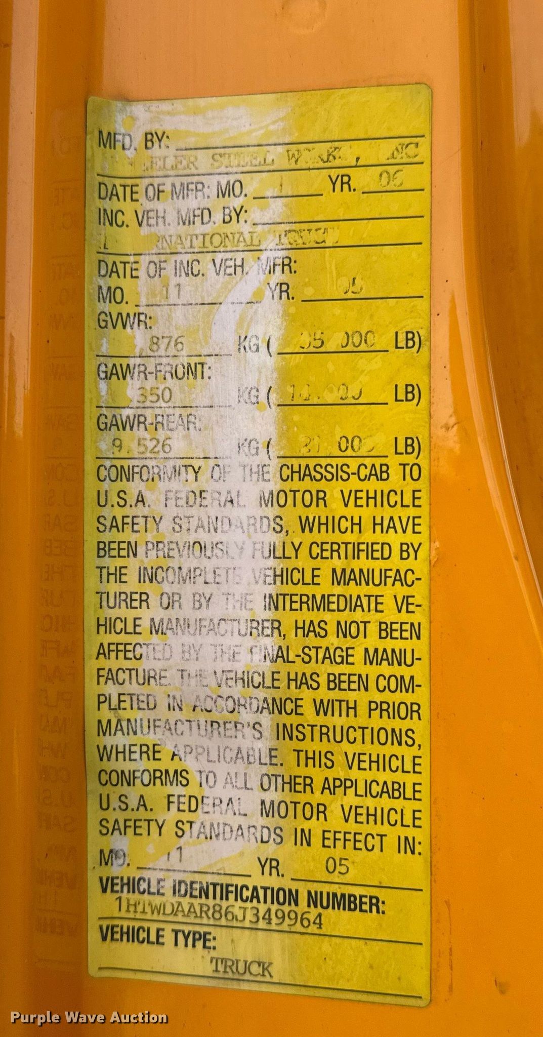 - VIN: 1HTWDAAR86J349964