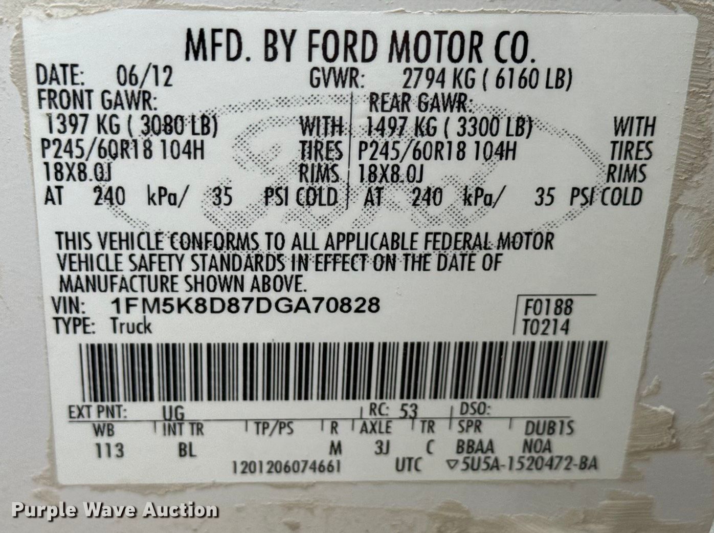 - VIN: 1FM5K8D87DGA70828