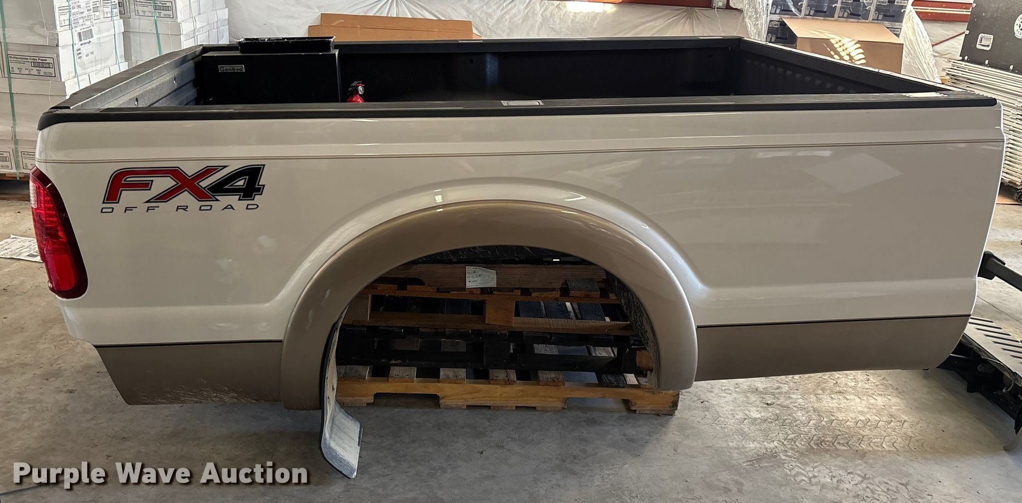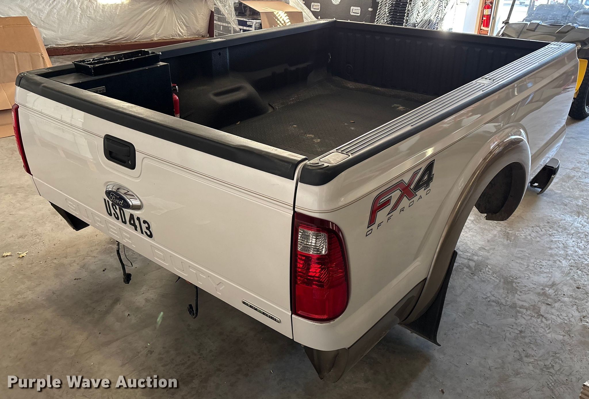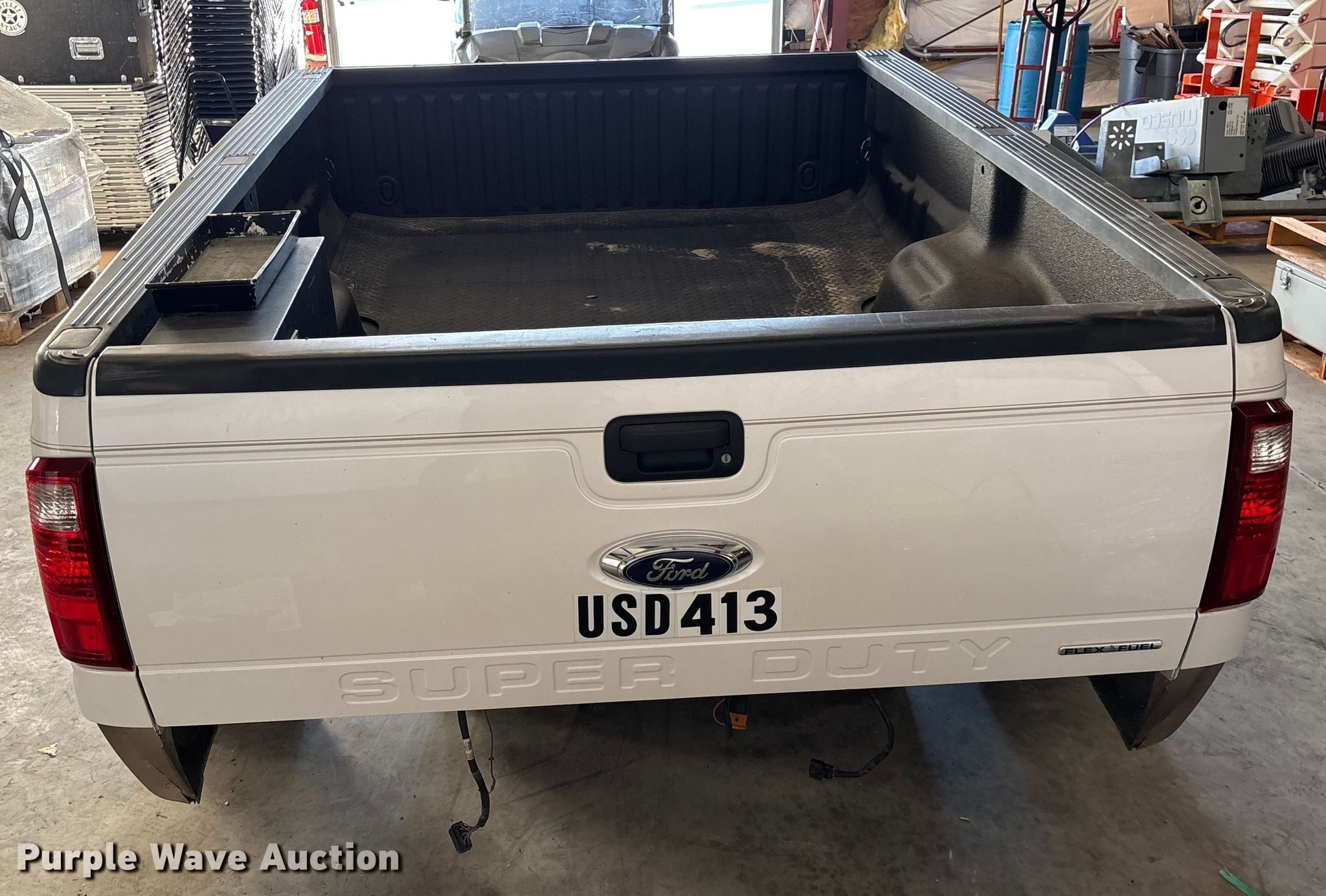 Automotive parts. Bed Length: 101", Width: 76", ARE Topper Serial: N2583819, Rear bumper, Trailer hitch, topper mounts, Removed from a 2014 Ford F250 Super Duty. Chanute Public Schools-USD #413. Chanute, KS 66720