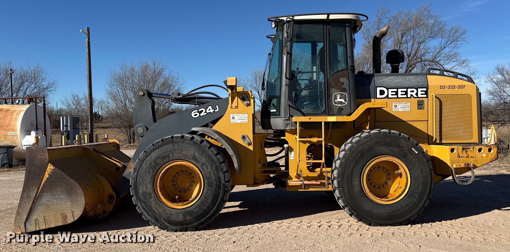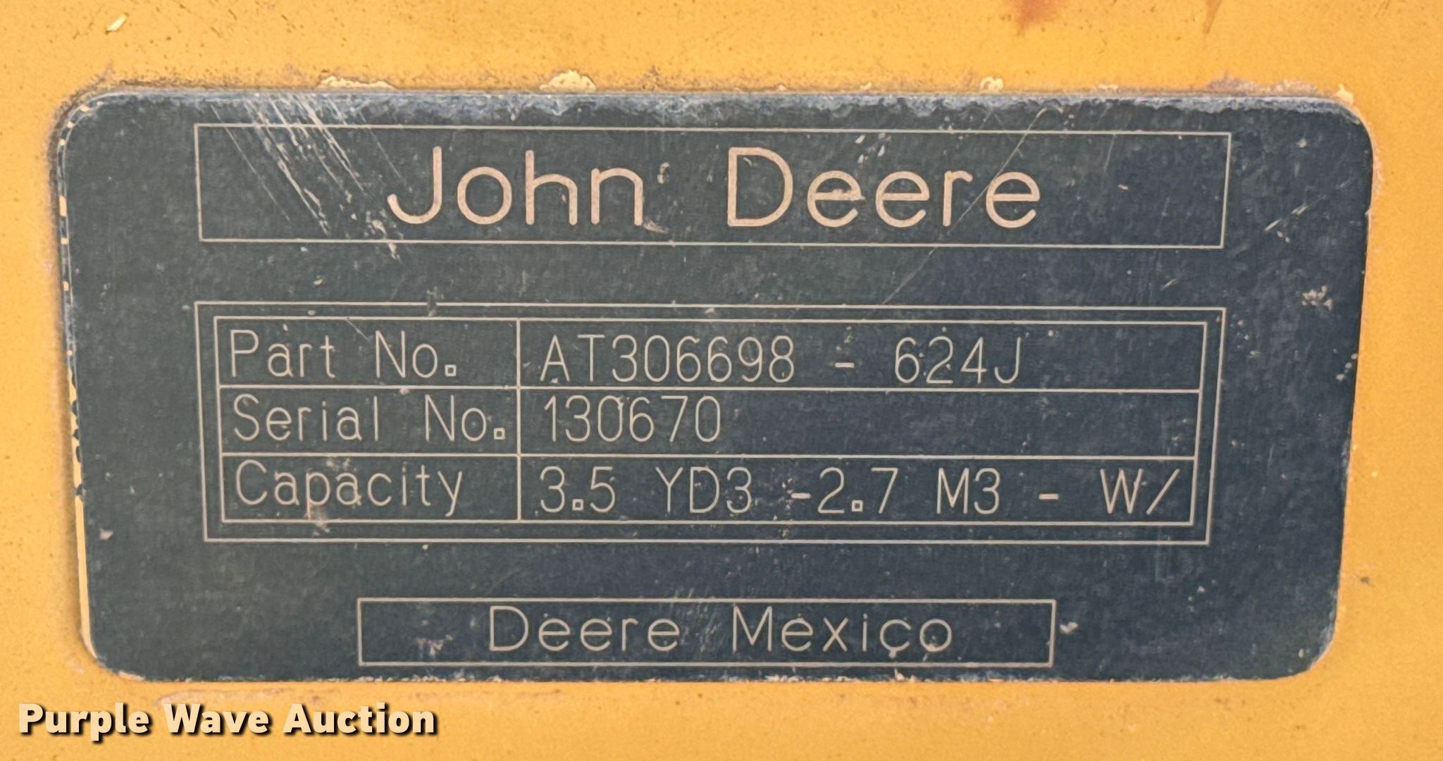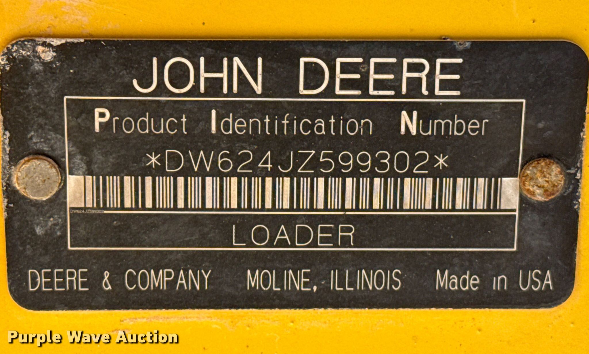 Purple Wave is selling a used Wheel Loader in Oklahoma. This item is a 2005 John Deere 624J wheel loader with the following: Hours: 848 on meter, Odometer: 1,697 miles on odometer, Serial: DW624JZ599302