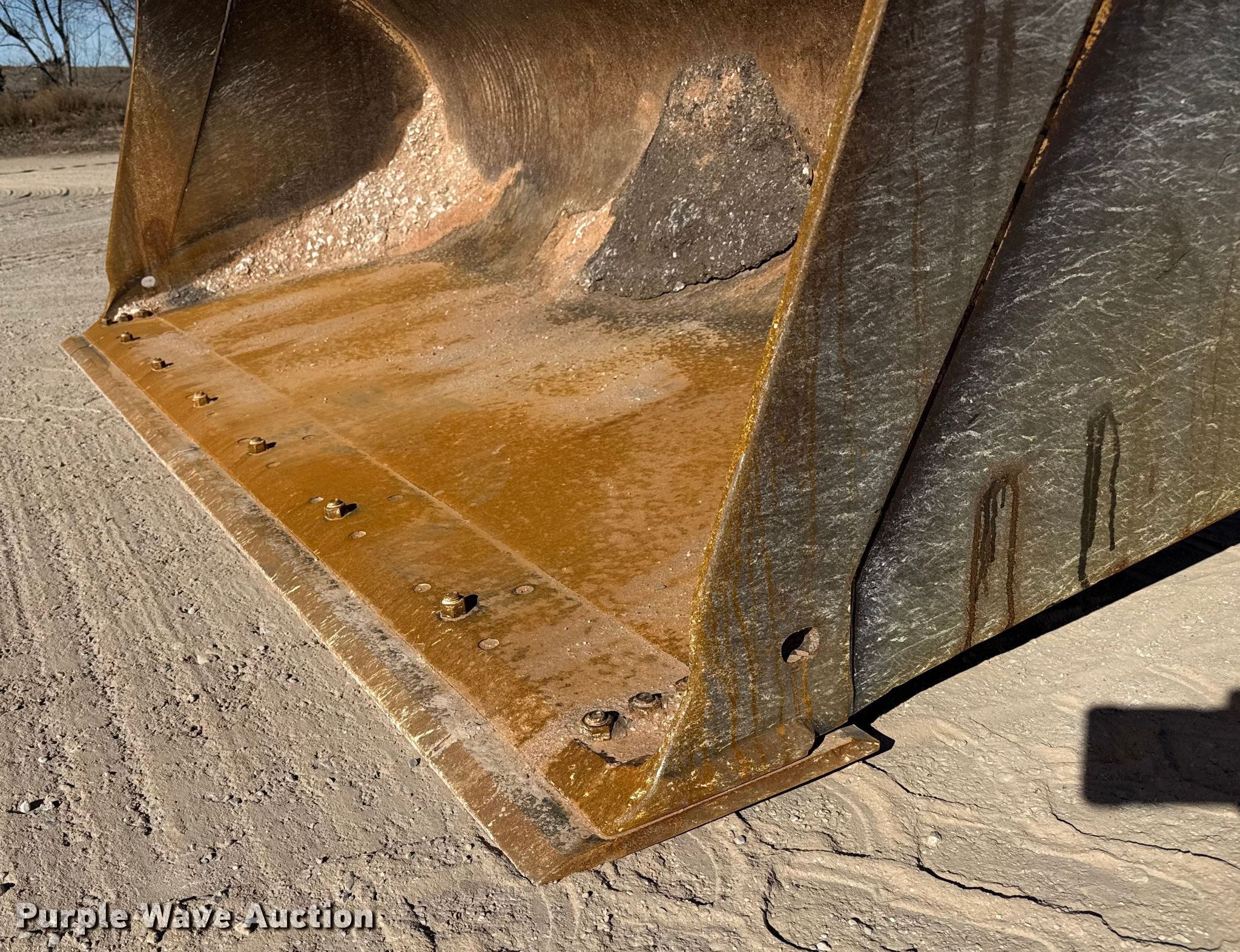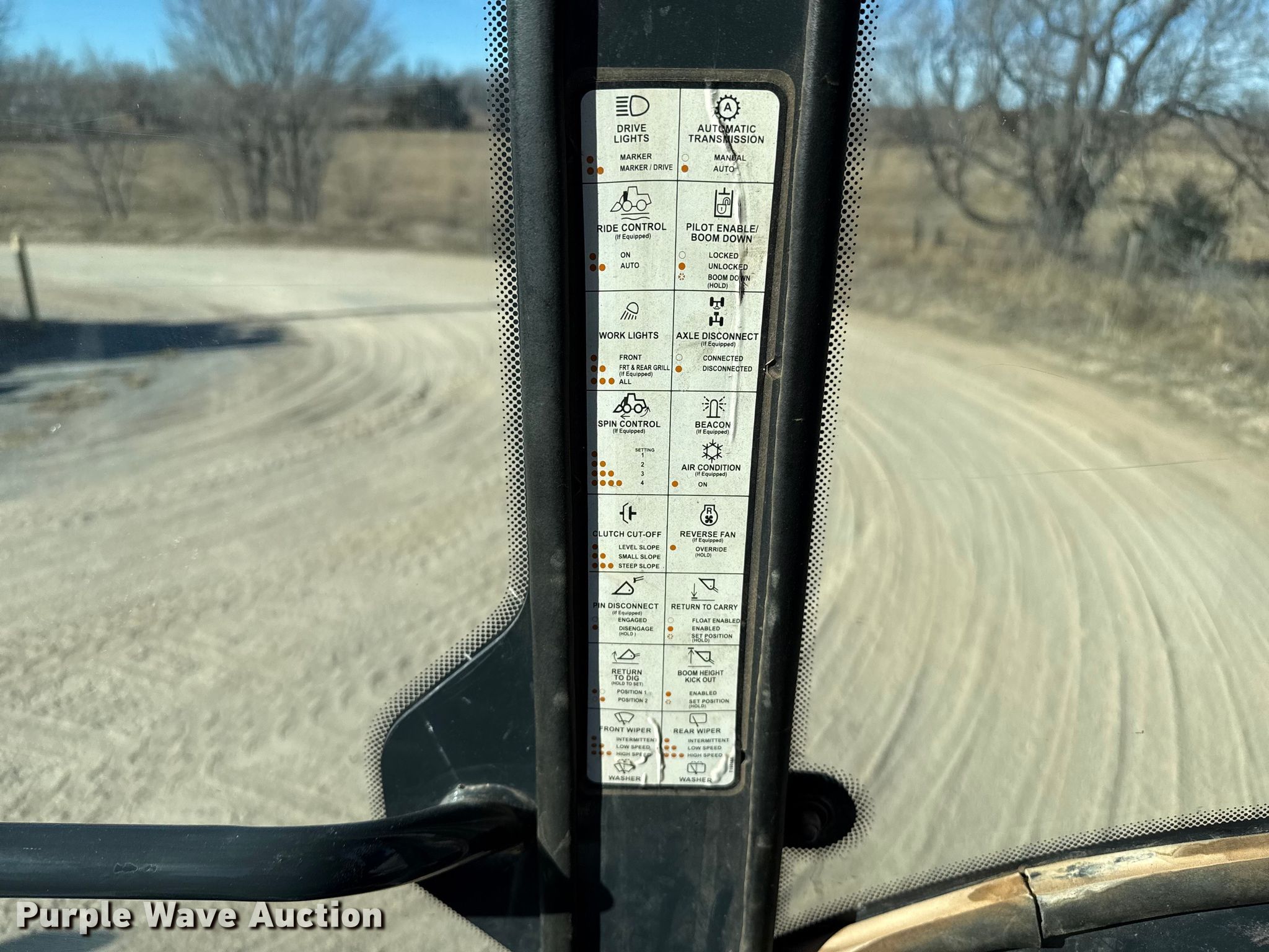 2005 John Deere 624J wheel loader. Hours: 848 on meter, Odometer: 1,697 miles on odometer, Serial: DW624JZ599302. Engine John Deere, Cylinders: 6, Fuel type: Diesel. Transmission Powershift, 4F - 4R. Chassis Differential lock. Operators station Enclosed cab, AC, Heat, Bucket controls: Joystick, Ride control. Features Self-leveling loader, Bucket John Deere, Capacity: 3.5 cu.yd., Width: 105". Tires Size: 20.5R25. Woodward County District 2. Sharon, OK 73857