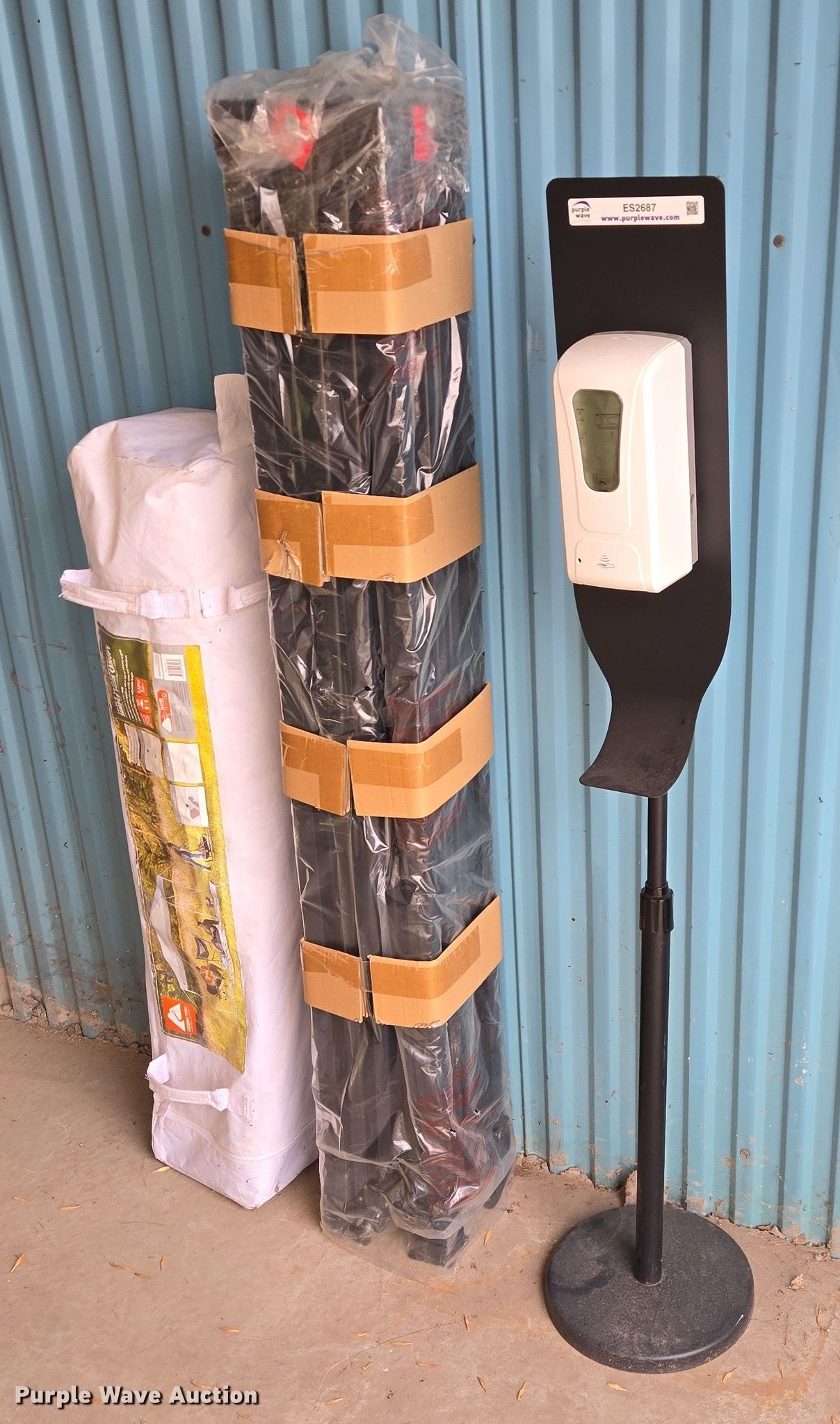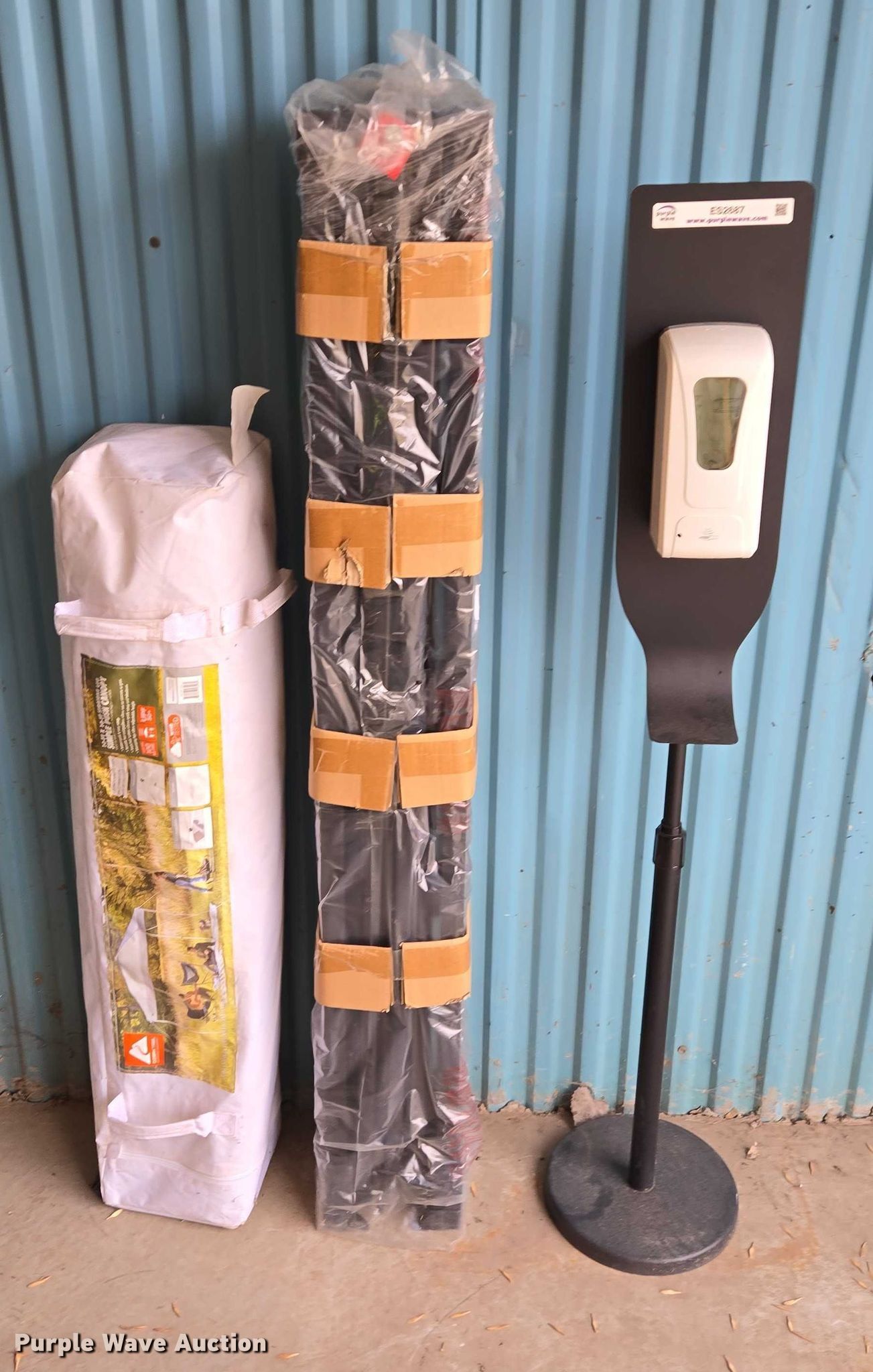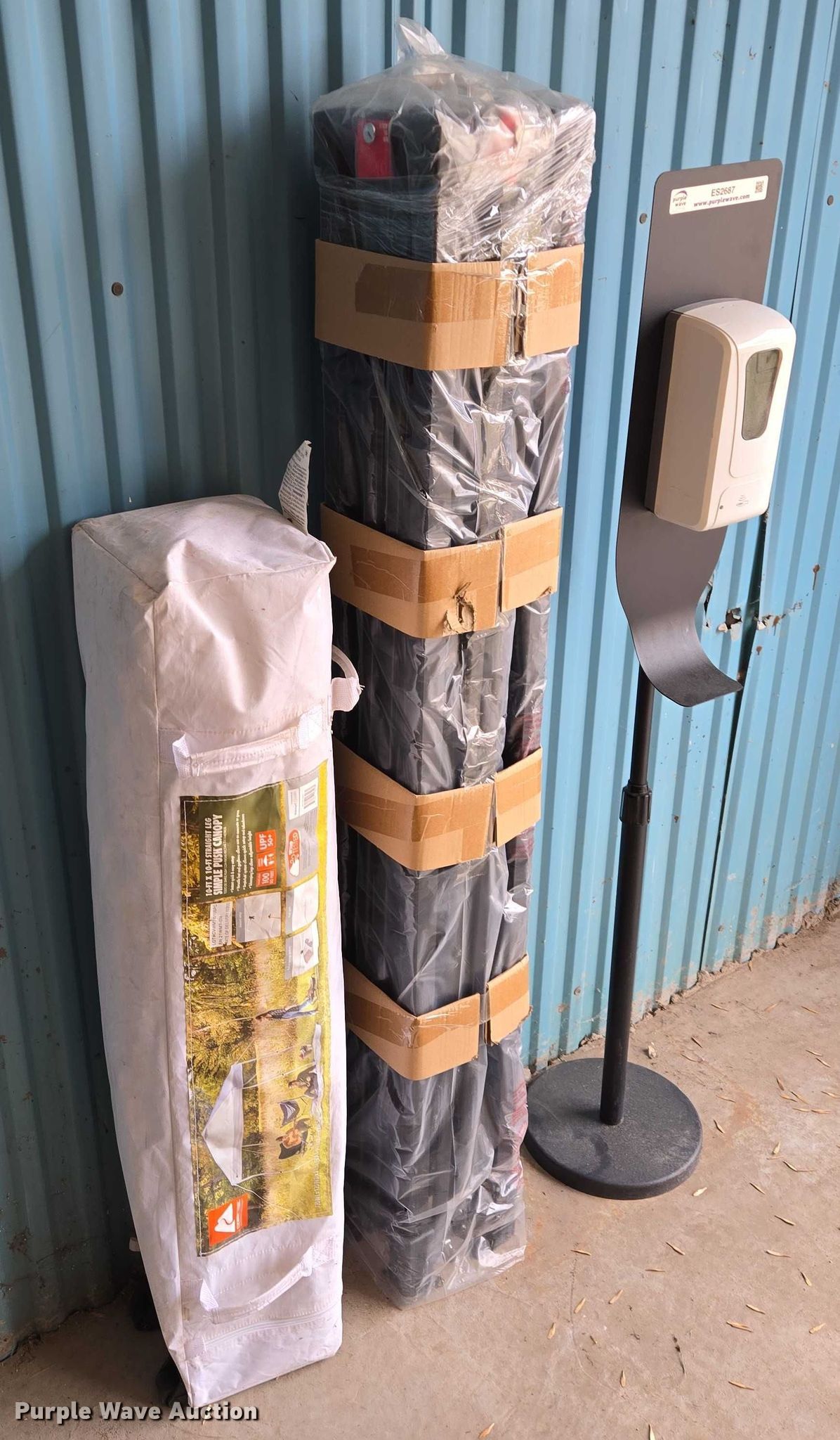 Purple Wave is selling a used Sporting Goods in South Dakota. This item is a Ozark Trail canopy with the following: (2) pop up canopies, Sanitizer dispenser