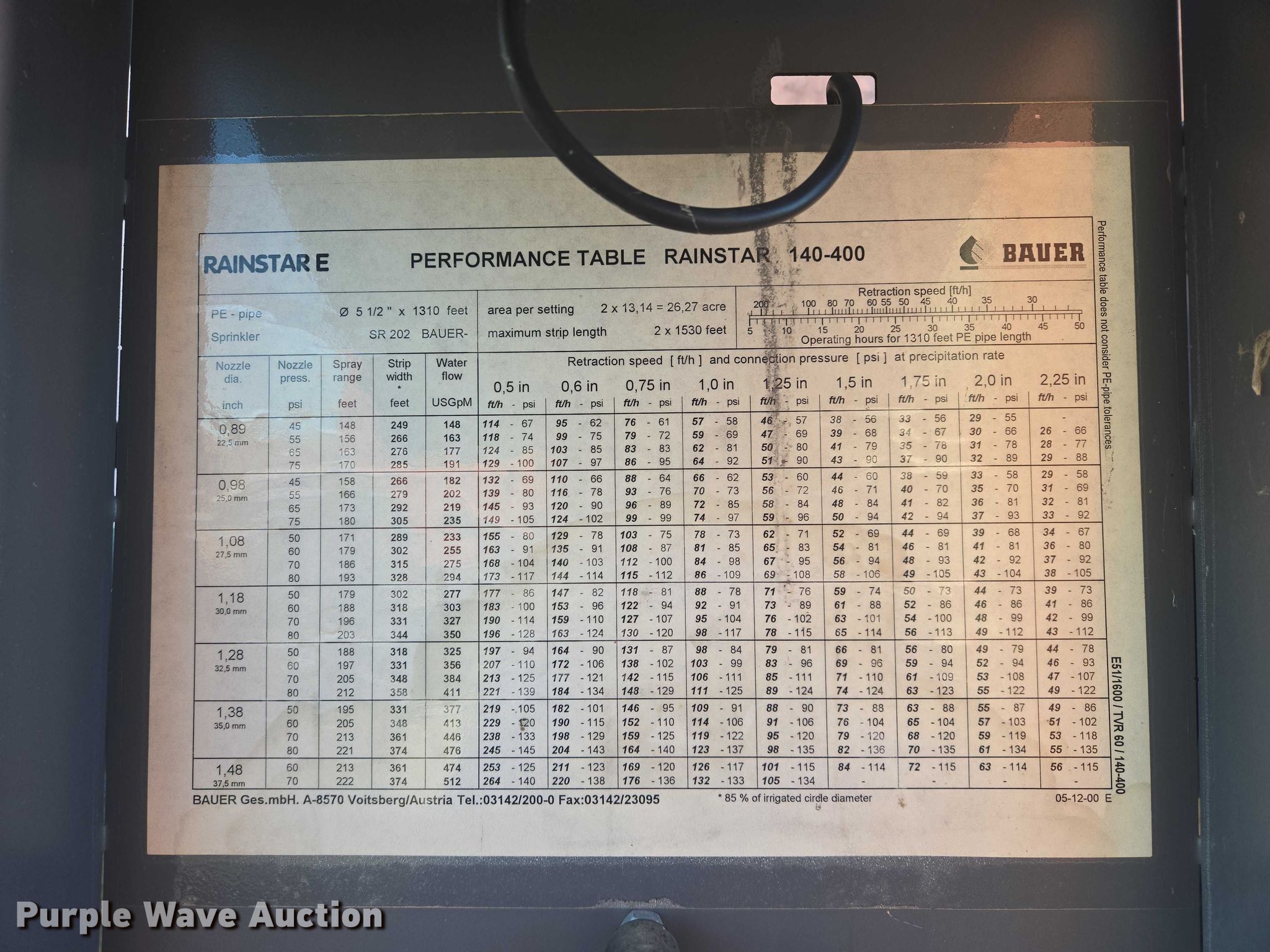 Purple Wave is selling a used Hose Reel in South Dakota. This item is a Bauer Rainstar E51 Irrigation reel with the following: Serial: 00X130662