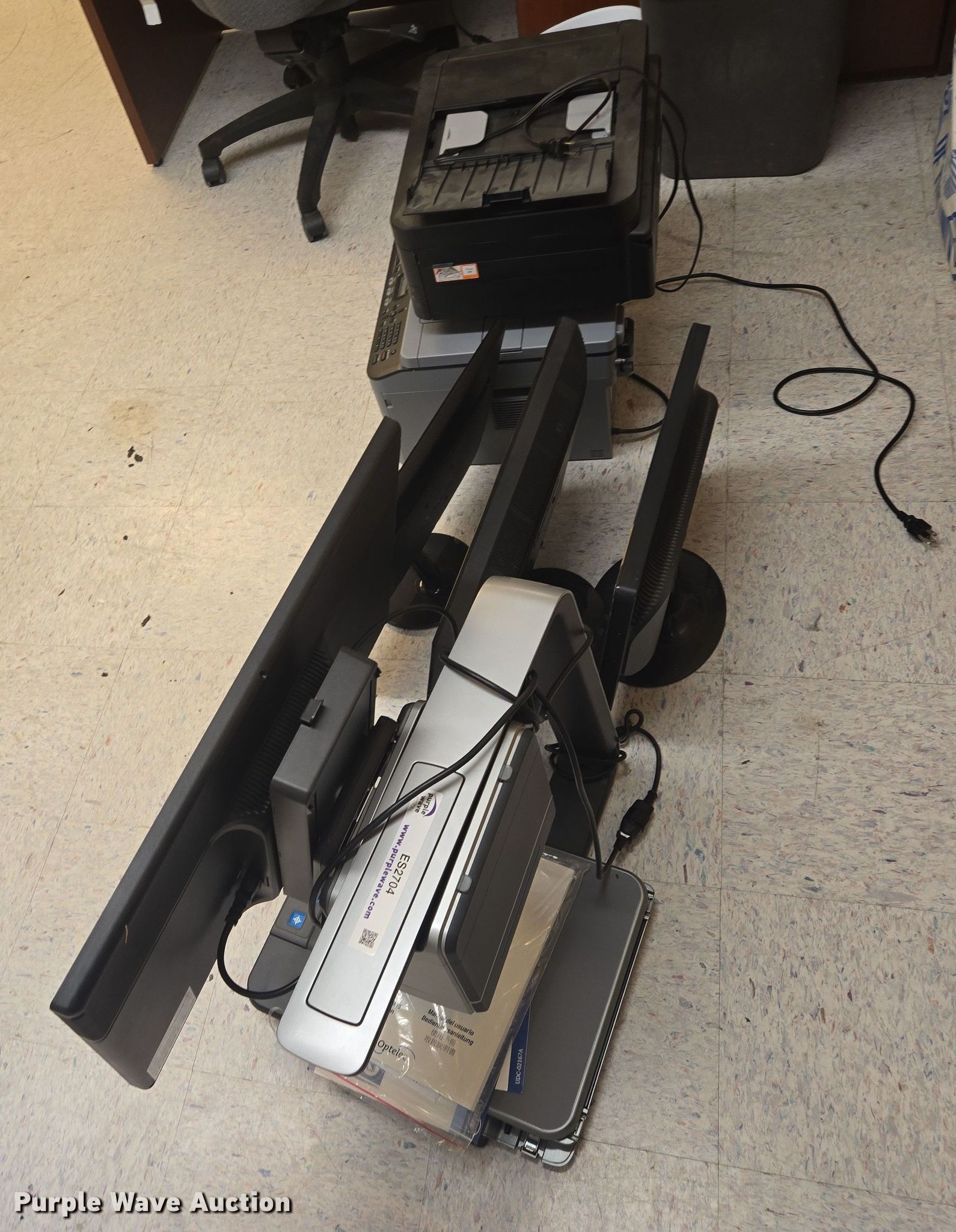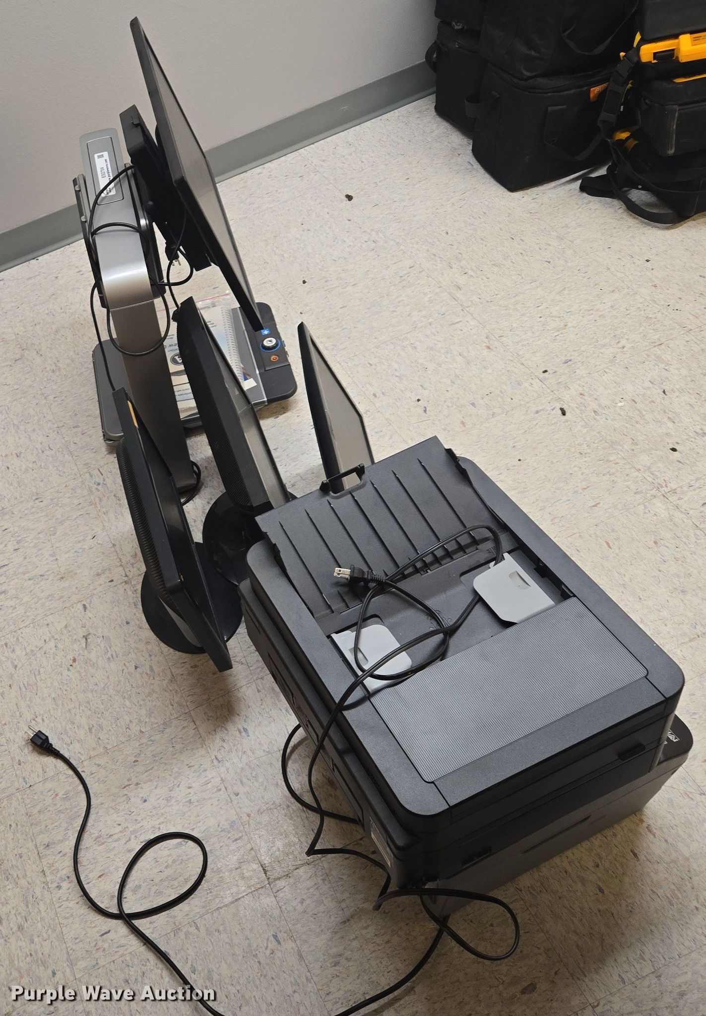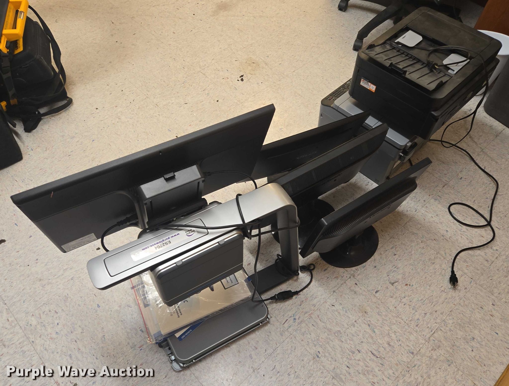 Purple Wave is selling a used Electronics in South Dakota. This item is a Assorted electronics with the following: (3) computer monitors, (2) printers, Clearview C magnifier