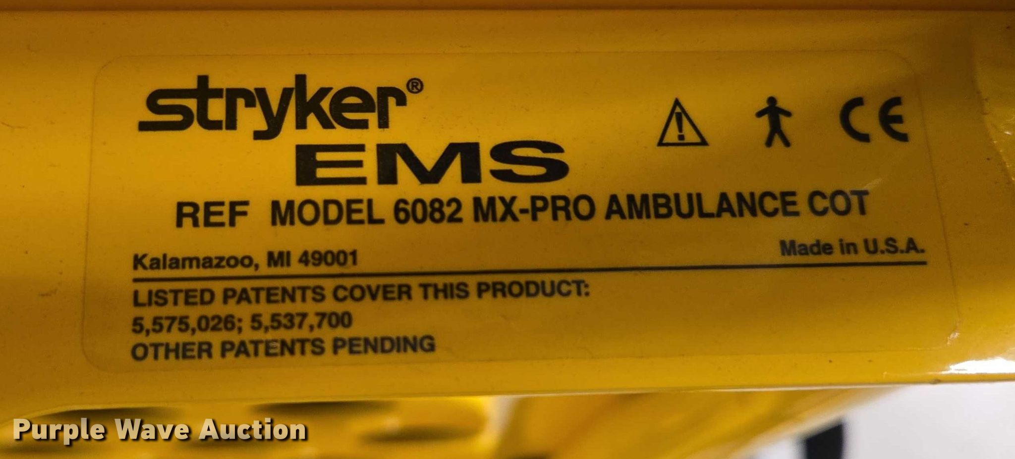 Purple Wave is selling a used Medical Equip. in South Dakota. This item is a Stryker MX-Pro ambulance cot with the following: Capacity: 650 lbs, Serial: 030439782