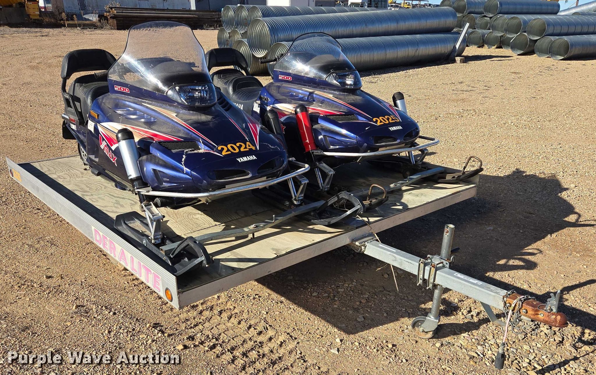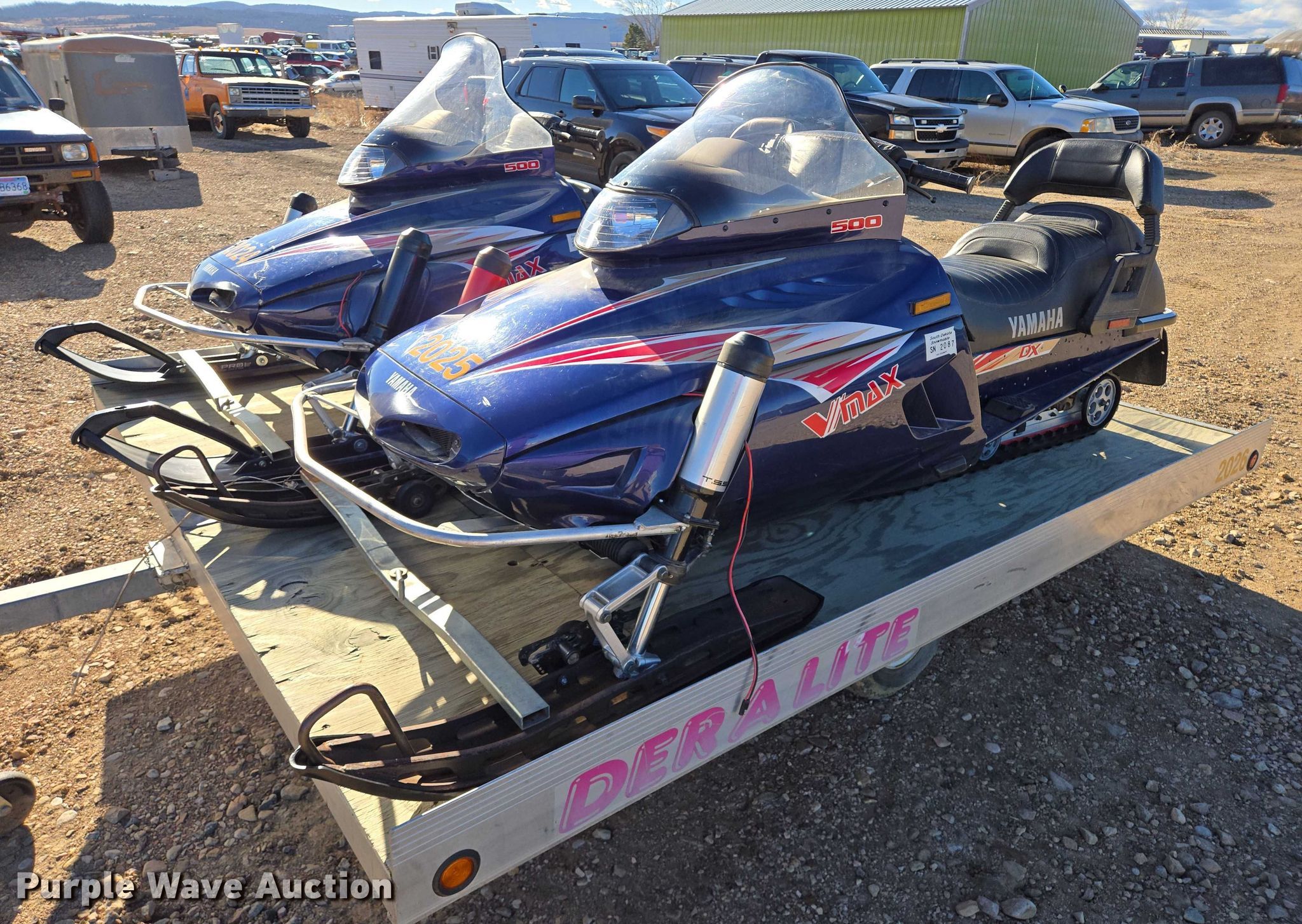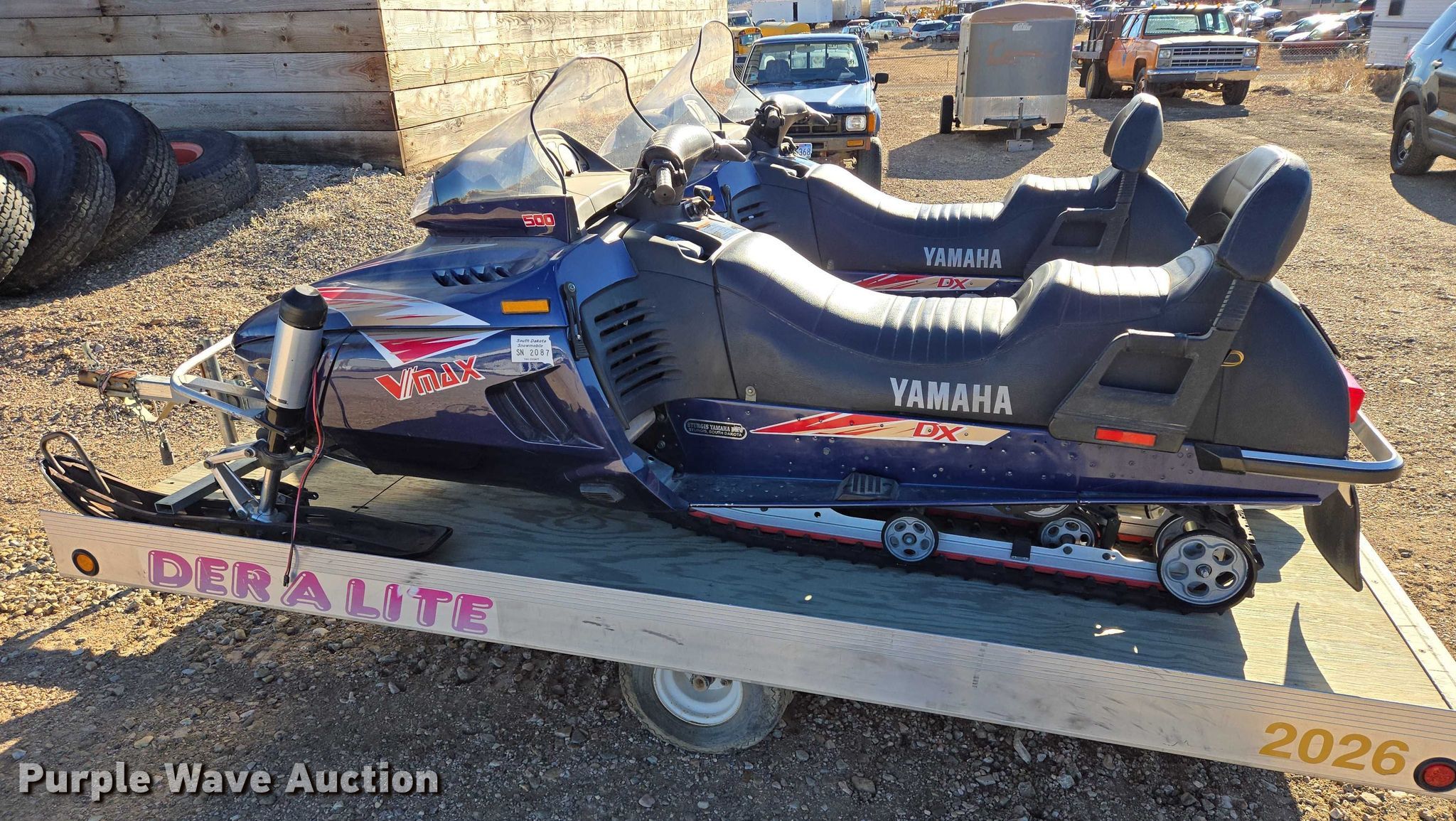 (2) 1996 Yamaha VX500DXW snowmobiles. VIN: 8CL004342, VIN: 8CL004347, Unit#: 2024, Unit#: 2025, Miles: 3,717 on odometer, Miles: 4,250 on odometer. Engine Yamaha 500, Cylinders: 2, Fuel type: Gas. Transmission Automatic. Tracks Width: 15". Notes Unit 2024 hood damaged. 1996 Duralite utility trailer VIN: 1D9S0C107T1046255. Dimensions Overall Length: 14' 2", Width: 101", Deck Length: 10', Width: 102". Chassis Landing gear: Single, Suspension: Spring, GVWR: 2,000 lbs. Tires Size: 18x8.5-8. Snowmobiles: South Dakota title. Trailer: South Dakota title. Title distribution may be delayed up to 14 days from verification of funds.. Meade County. Sturgis, SD 57785