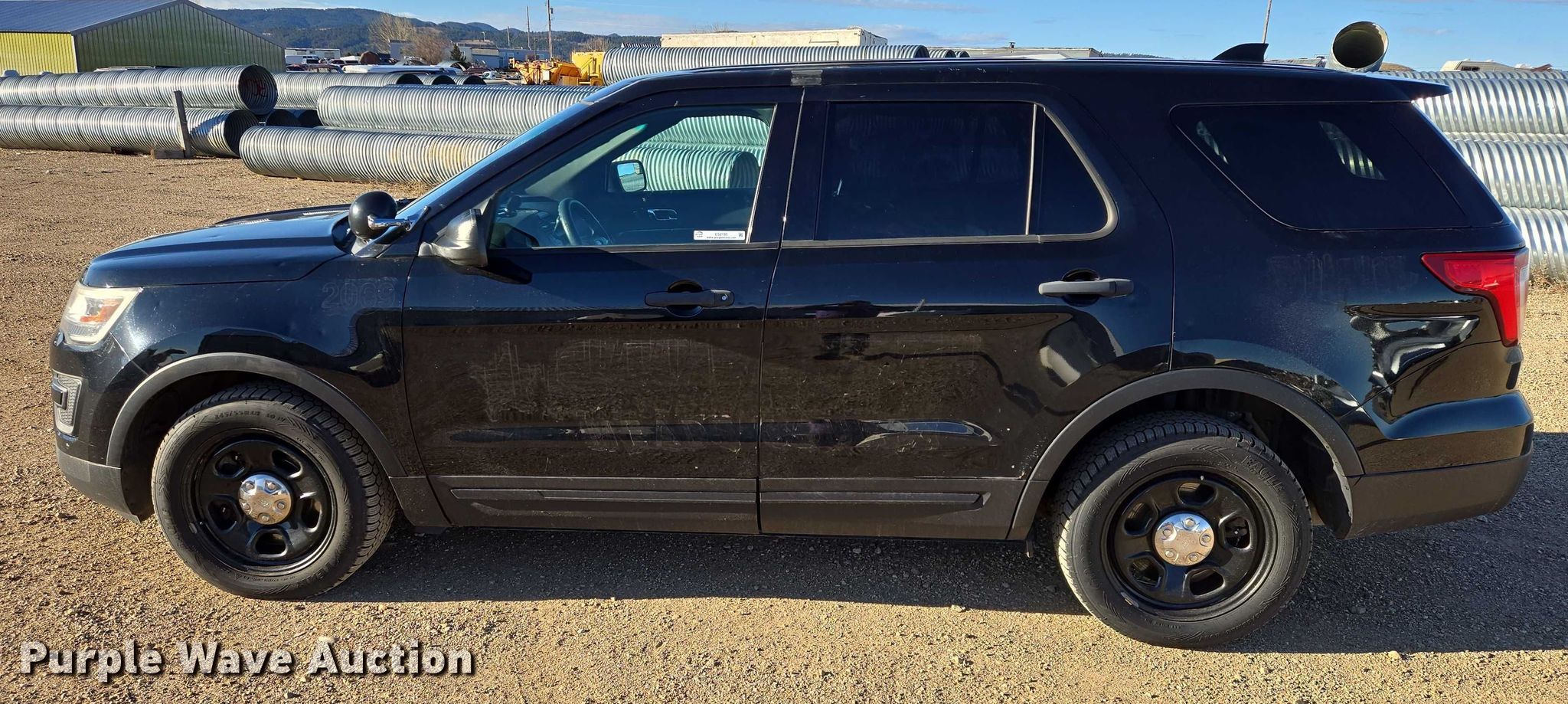 2017 Ford Explorer Police Interceptor SUV. Miles: 194,913 on odometer, Hours: 12,150 on meter, VIN: 1FM5K8AT5HGC56835. Engine Displacement: 3.5L, Cylinders: 6, Fuel type: Gas. Transmission Automatic, All wheel drive. Interior AC, Heat, Seat: Power driver, Power windows, Power locks, Cruise control, Backup camera. Tires Size: 245/55R18. Notes Dash warning indicator: Check engine, Hail damage, Jump start required during on-site data collection. South Dakota title. Title distribution may be delayed up to 14 days from verification of funds. Meade County. Sturgis, SD 57785