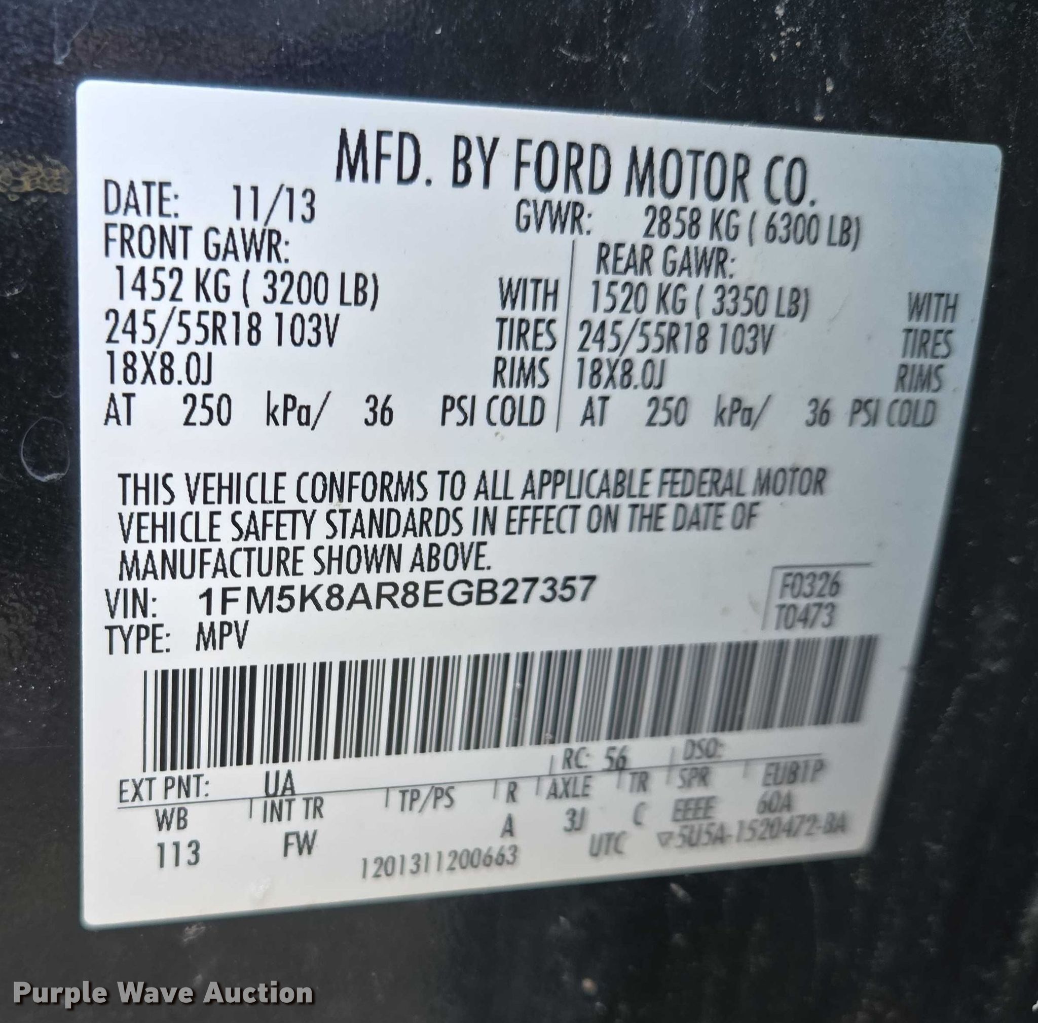 - VIN: 1FM5K8AR8EGB27357
