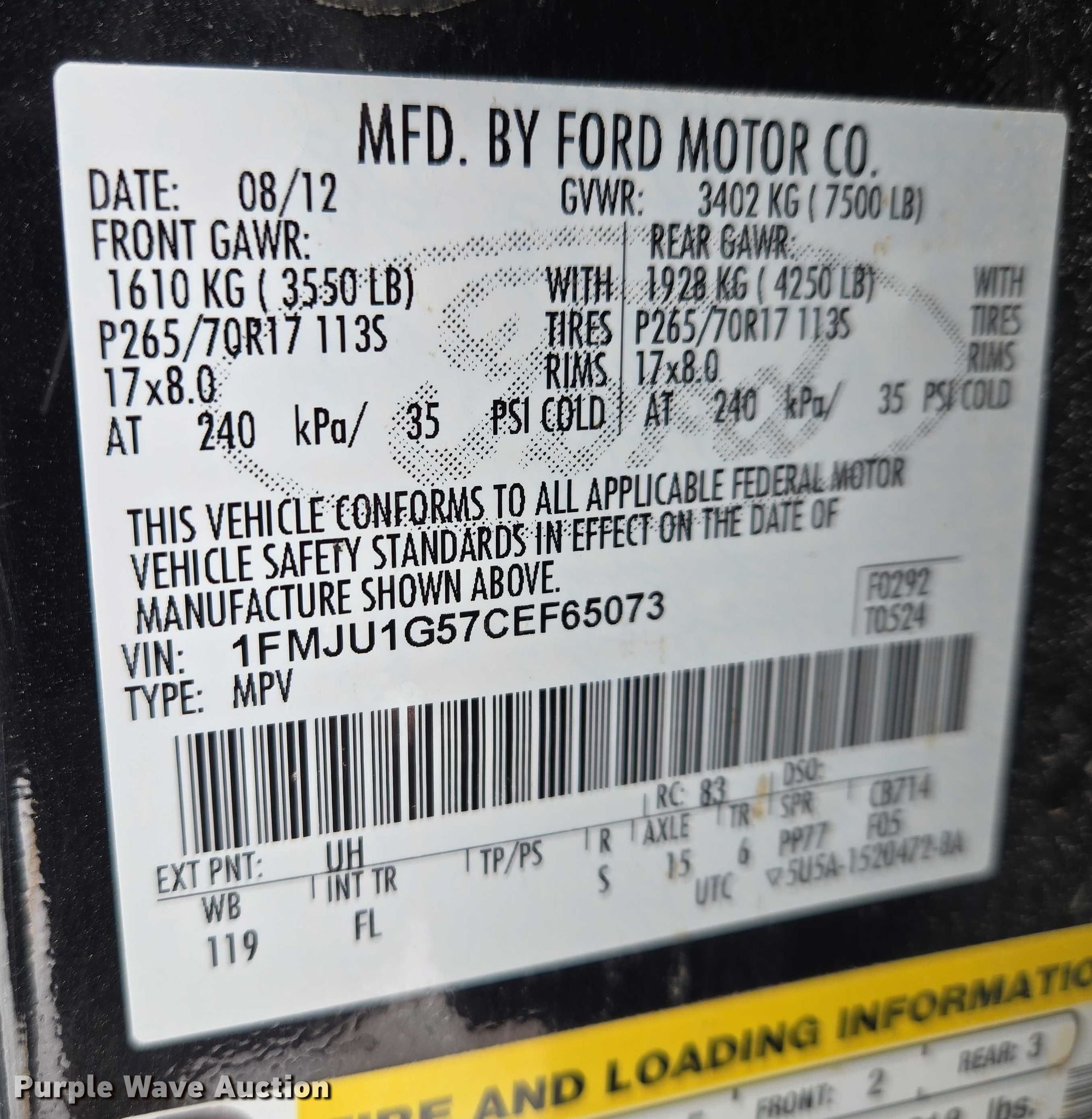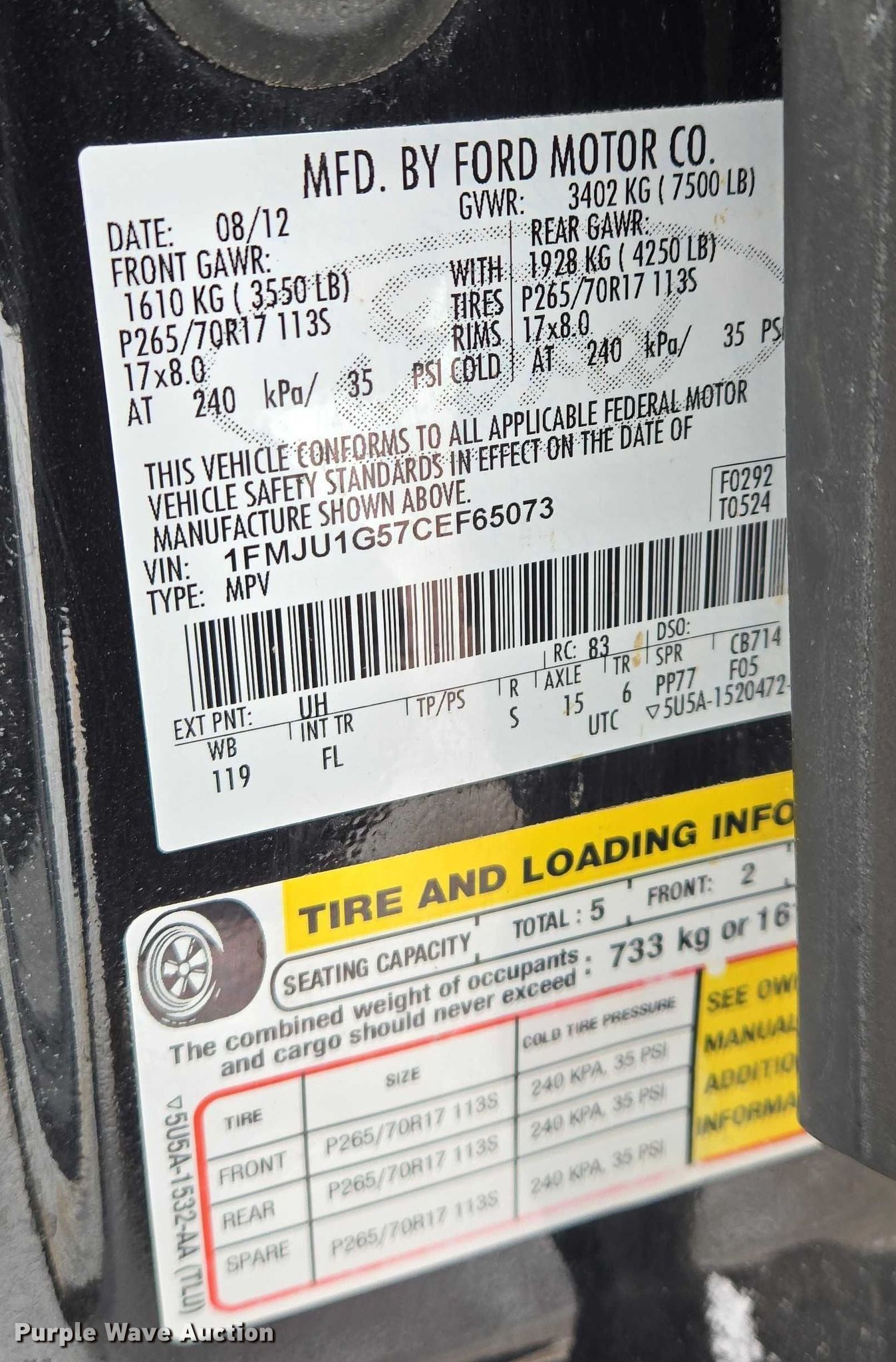 - VIN: 1FMJU1G57CEF65073