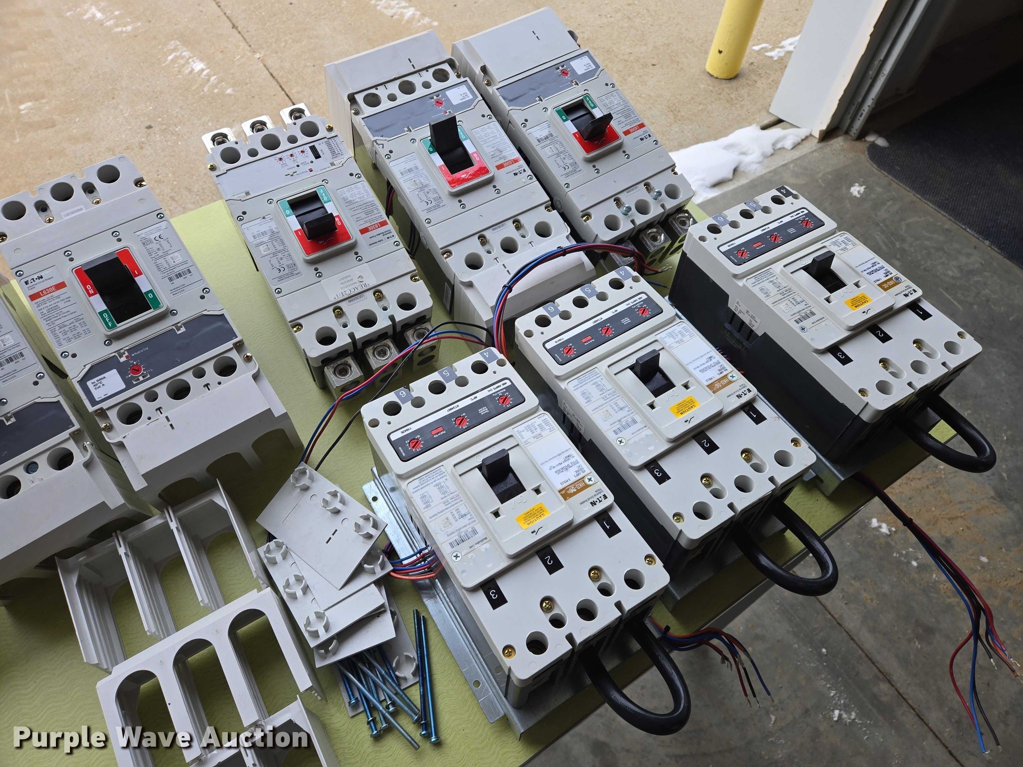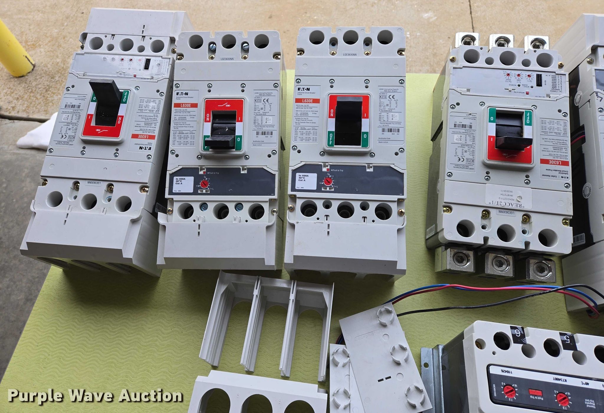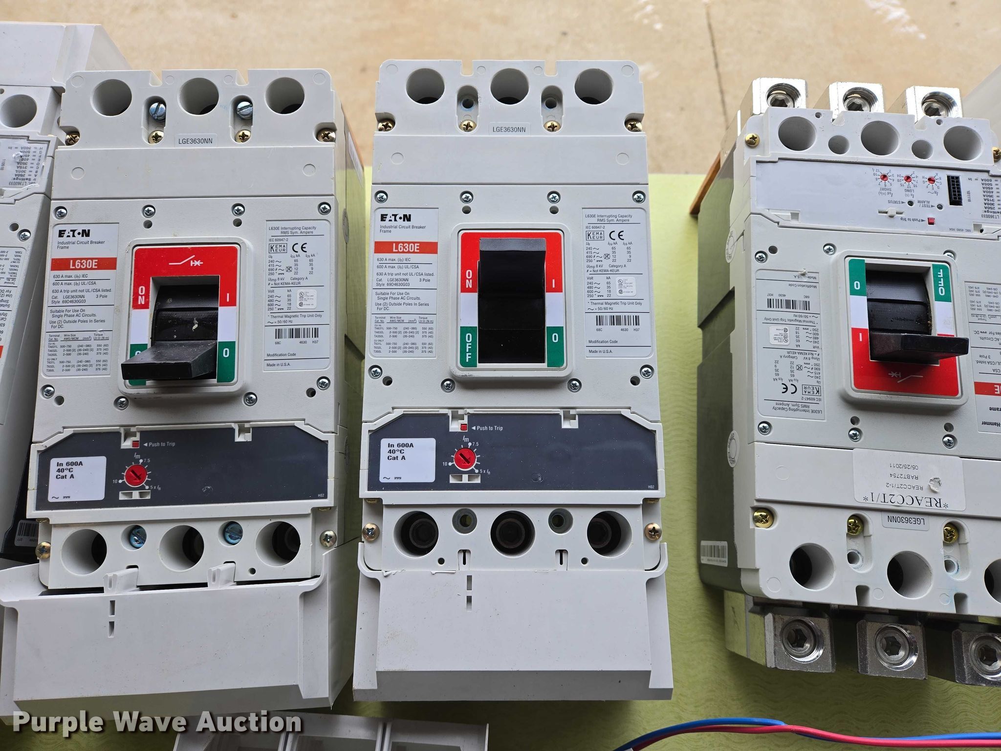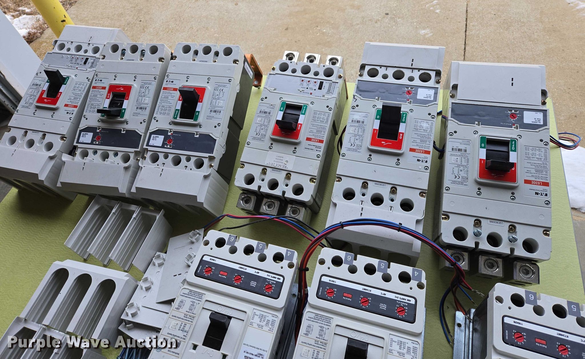 Purple Wave is selling a used Electronics in South Dakota. This item is a (9) Eaton circuit breakers with the following: (6) L630E, Amps: 630, (3) HKD-DC, Amps: 400