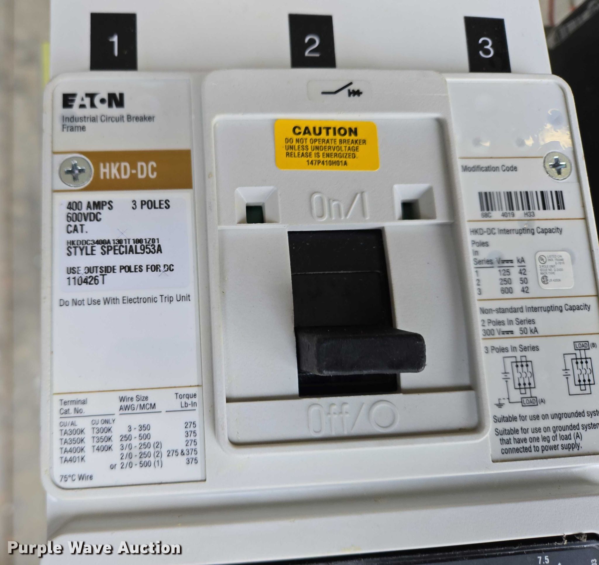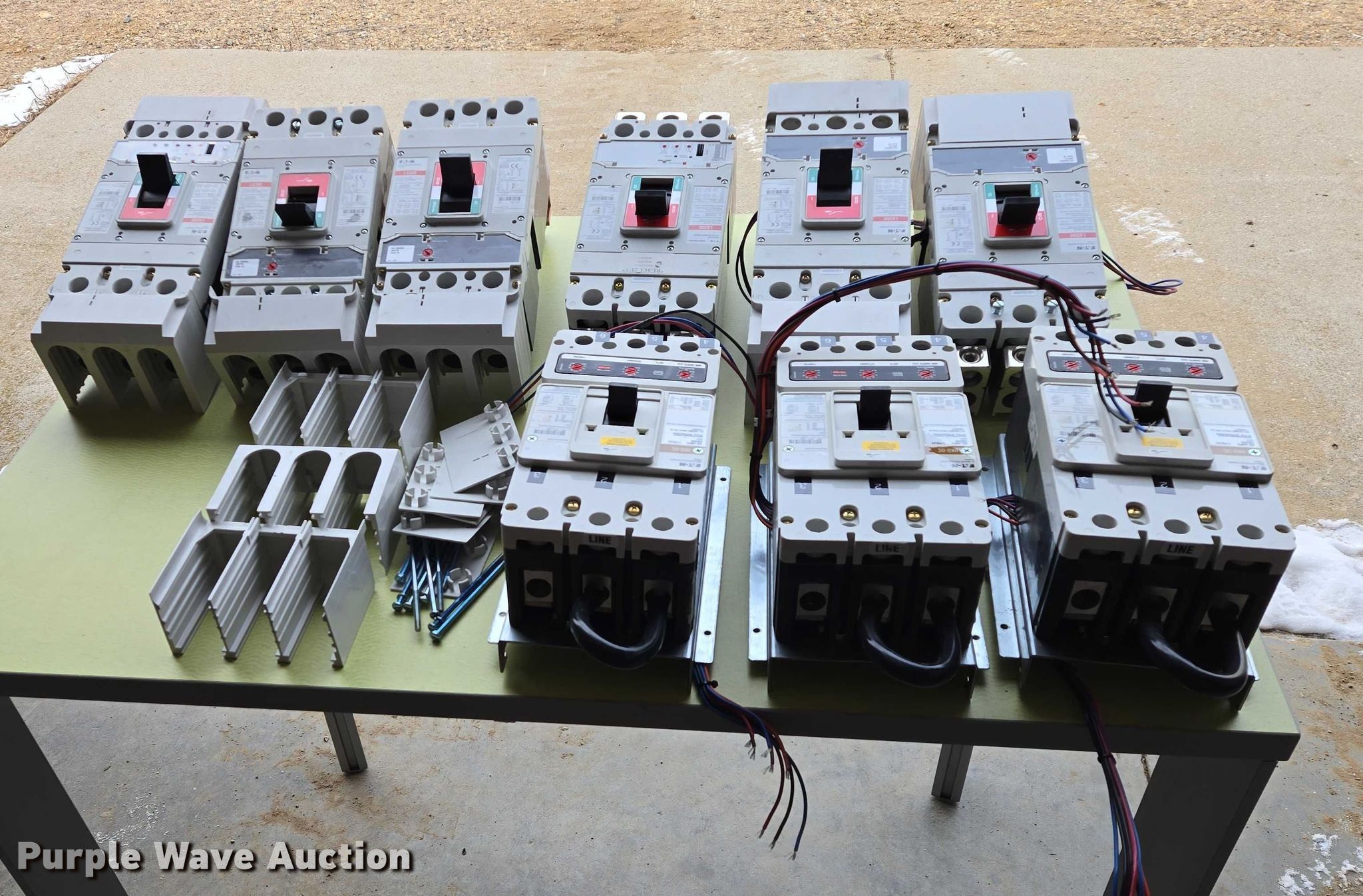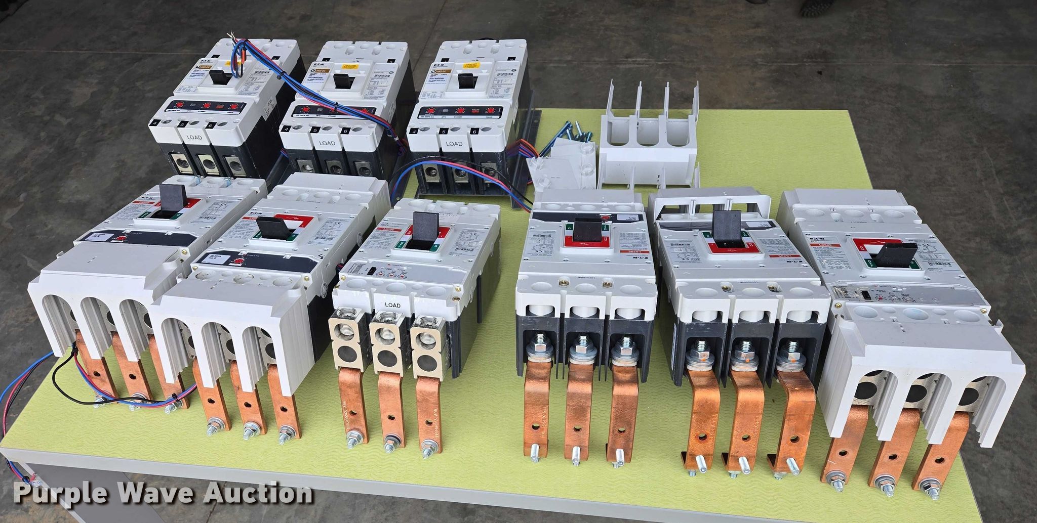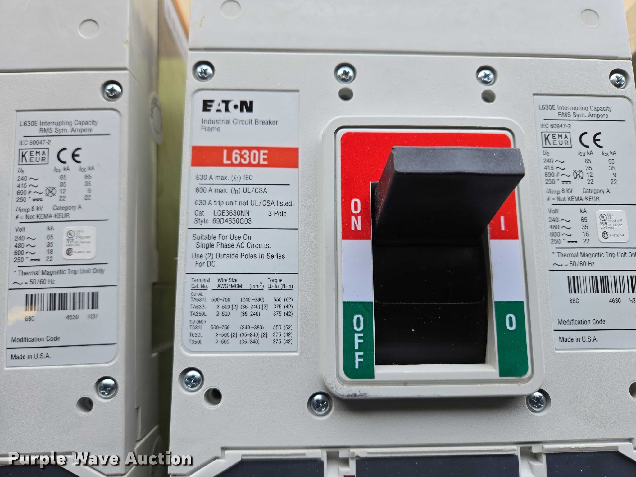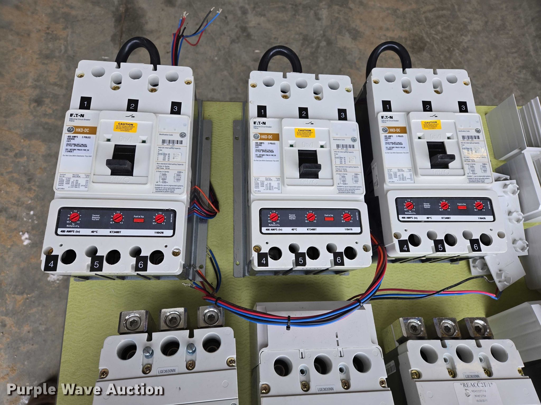 Purple Wave is selling a used Electronics in South Dakota. This item is a (9) Eaton circuit breakers with the following: (6) L630E, Amps: 630, (3) HKD-DC, Amps: 400