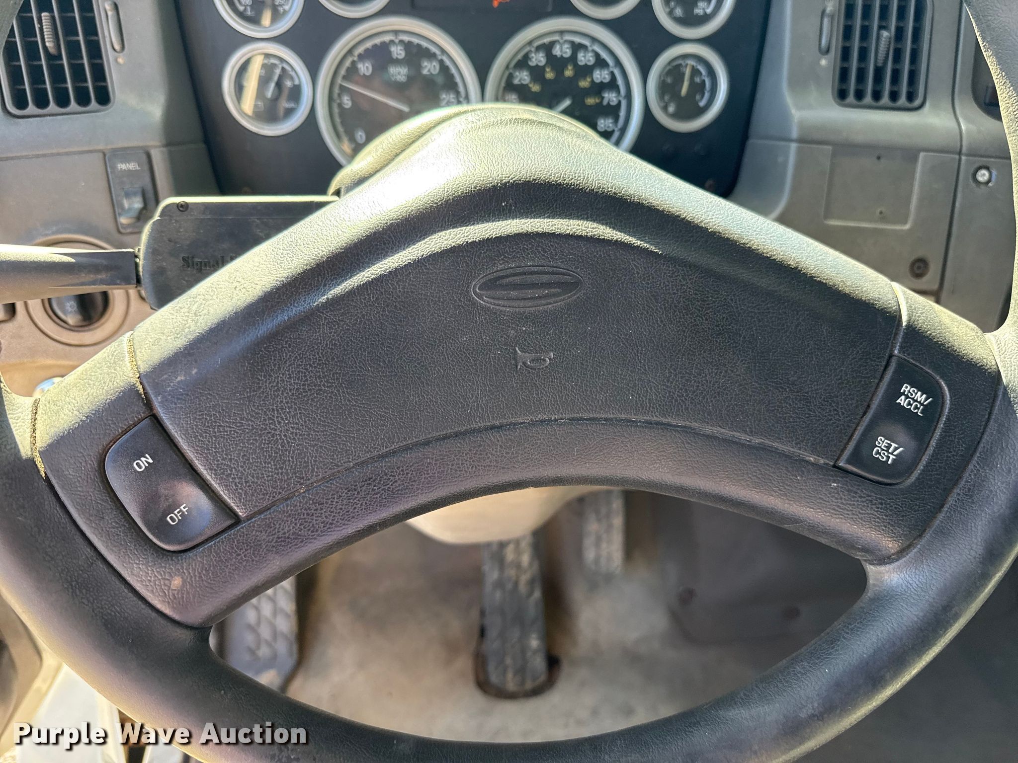 2007 Sterling L-Line dump flatbed truck. Miles: 87,393 on odometer, VIN: 2FZHAWDC17AX48216, Unit #: 302-182. Engine Caterpillar C7, Displacement: 7.2L, Cylinders: 6, Fuel type: Diesel. Transmission Automatic. Chassis Double frame, Axles: Tandem, Differential lock: Inter-axle, Suspension: Spring over walking beam, Brakes: Air, PTO, Front mount PTO, GVWR: 52,000 lbs FAWR: 12,000 lbs, IAWR: 20,000 lbs, RAWR: 20,000 lbs. Interior AC, Heat, Heated mirrors, Cruise control. Features Bed Dump bed, Length: 14', Width: 96", Side height: 40", Side board height: 14", Bed type: Steel, Roll tarp, Ram: Single, End gate: Manual. Tires Size: 11R22.5. Notes Dash warning indicator: ABS, Windshield chipped or cracked, Rust damage. Oklahoma title. Title distribution may be delayed up to 14 days from verification of funds. Hughes County, OK. Wetumka, OK 74883