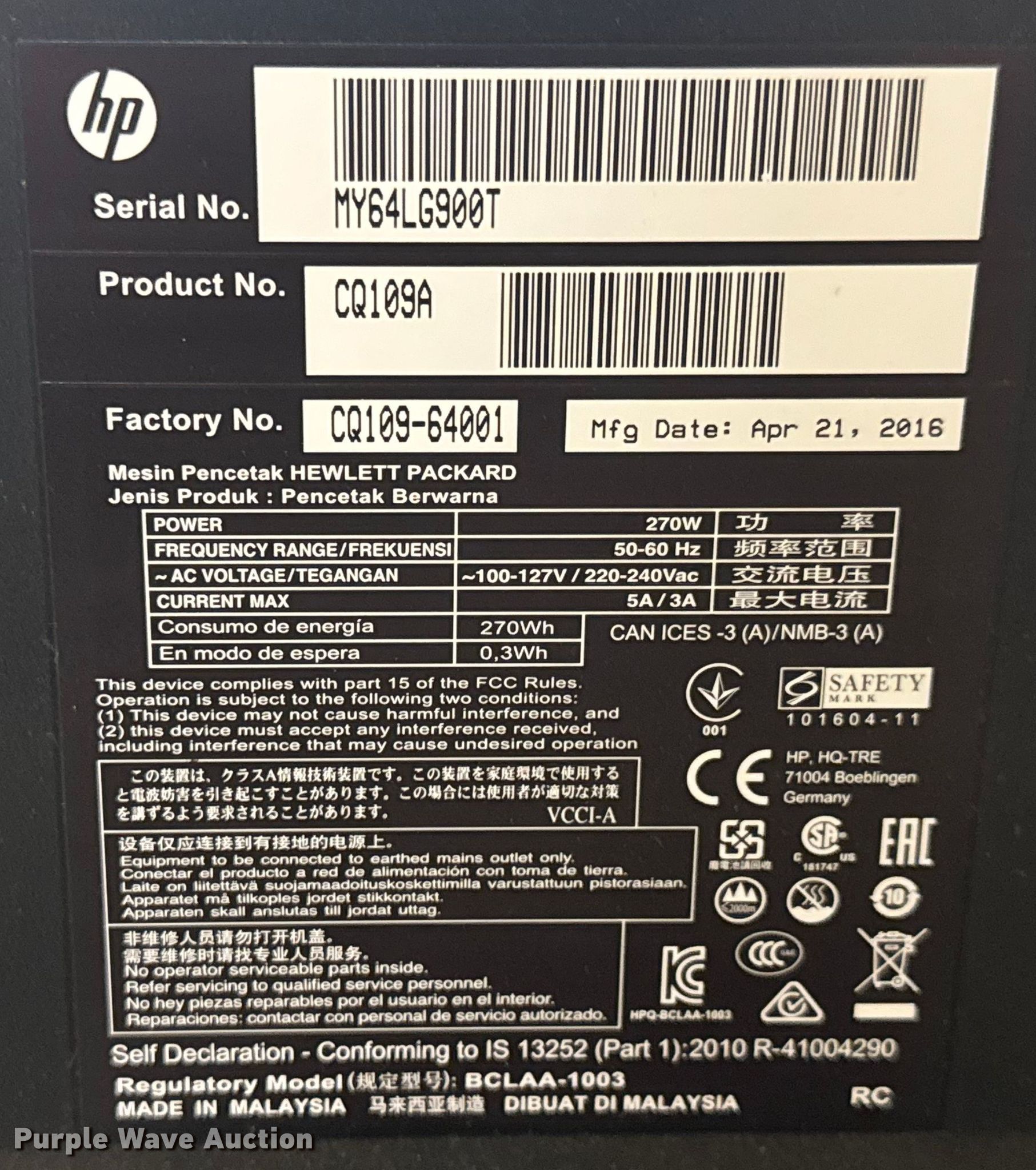 Purple Wave is selling a used Copy or Printing Machine in Kansas. This item is a 2016 HP Designjet Z6200 printer with the following: Serial: MY64LG900T