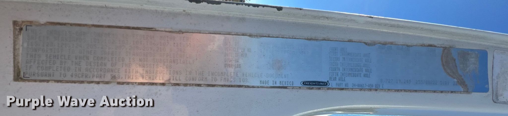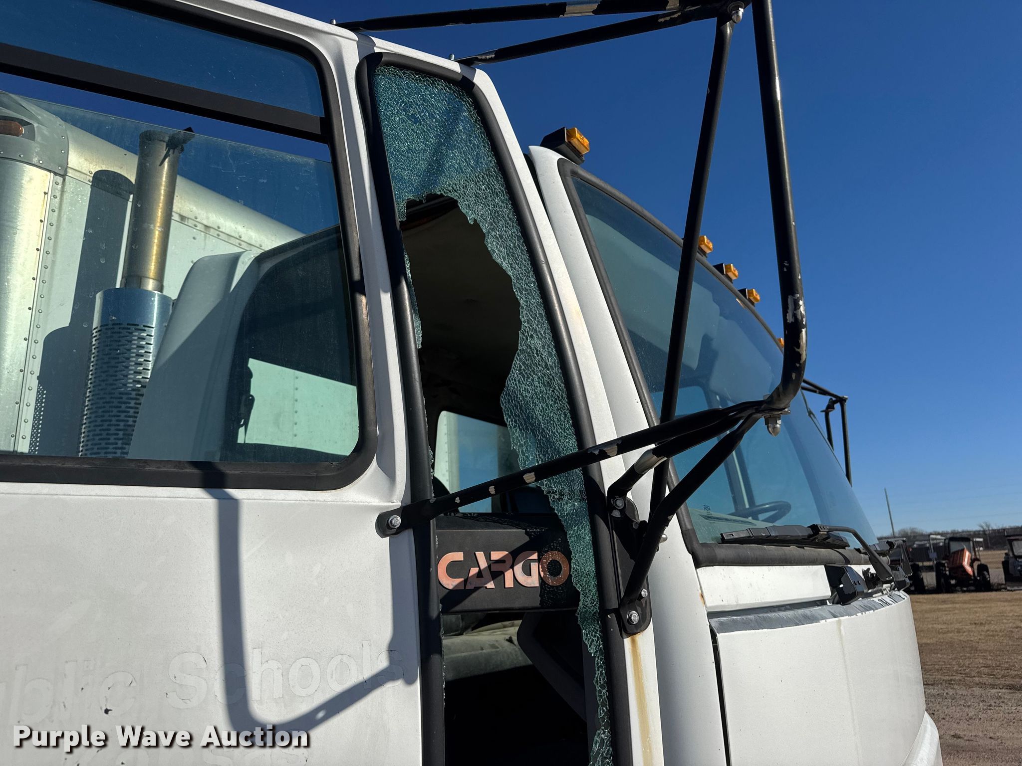 2004 Freightliner FC80 box truck. Miles: 173,243 on odometer, VIN: 1FVAB5BVX4DM33347. Engine Cummins, Displacement: 5.9L, Cylinders: 6, Fuel type: Diesel. Transmission Automatic. Chassis Axles: Single, Suspension: Spring, Brakes: Air, GVWR: 26,000 lbs. Interior AC, Heat, Cruise control. Features Bed Box bed, Morgan GVSD09120096, Serial: 1TX03VB14289001, Length: 20', Width: 97", Height: 8', E-track rail system, End gate lift, Leyman FDC35RM-8060RR, Capacity: 3,500 lbs. Tires Size: 9R22.5. Notes Dash warning indicator: Check engine, Windshield chipped or cracked, Oil leak, Mirrors missing, Passenger side glass broken, Unknown operating condition of end gate lift, Unknown operating condition of AC, Contents included, Unknown operating condition of bed contents. Kansas title. Title distribution may be delayed up to 14 days from verification of funds. Wichita Public Schools - USD 259. Wichita, KS 67219
