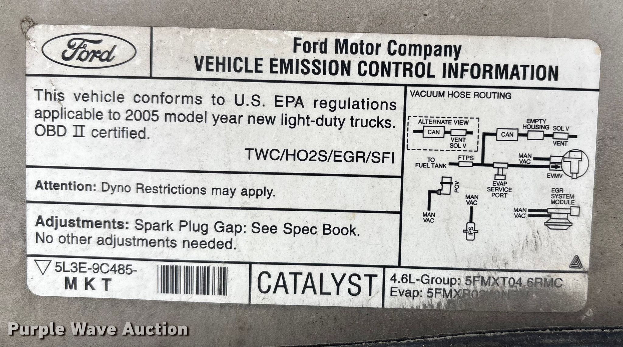 2005 Ford F150 Ext. Cab pickup truck. Miles: 258,259 on odometer, VIN: 1FTRX14WX5FB43050. Engine Displacement: 4.6L, Cylinders: 8, Fuel type: Gas. Transmission Automatic, Four wheel drive. Interior AC, Heat. Tires Size: 235/75R17. Notes Dash warning indicator: Airbag, Jump start required during on-site data collection, Catalytic converter cut off. Missouri title. Title distribution may be delayed up to 14 days from verification of funds. Oak Grove, MO 64075