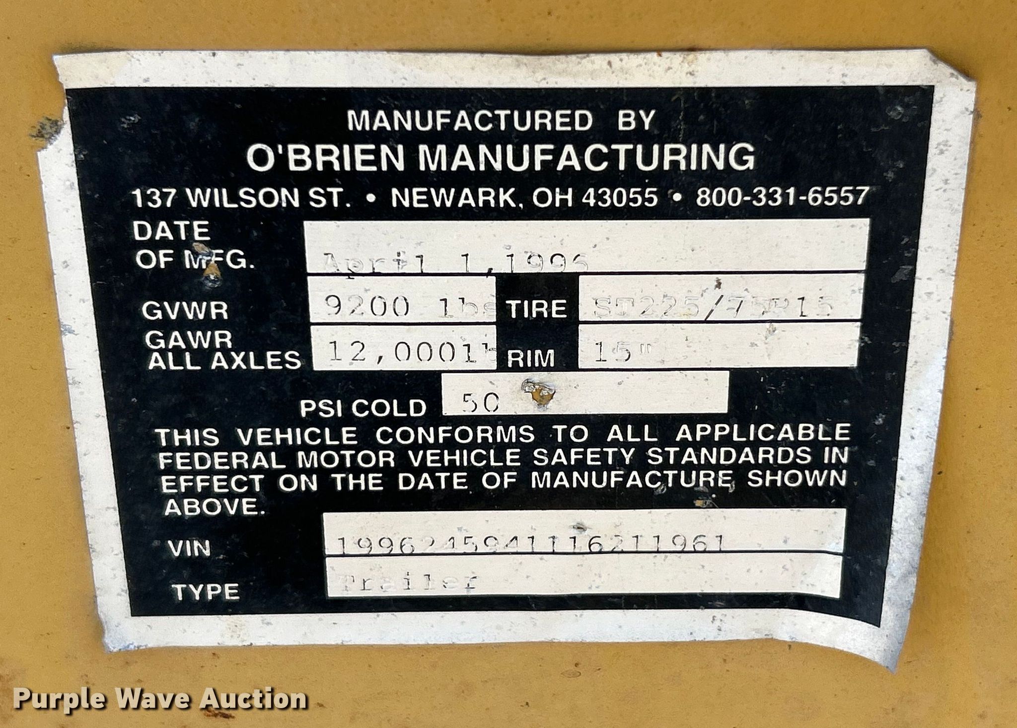 Purple Wave is selling a used Vacuum Excavator in Illinois. This item is a 1996 O'Brien 700-J sewer jetter trailer with the following: VIN: 1996245941116211961