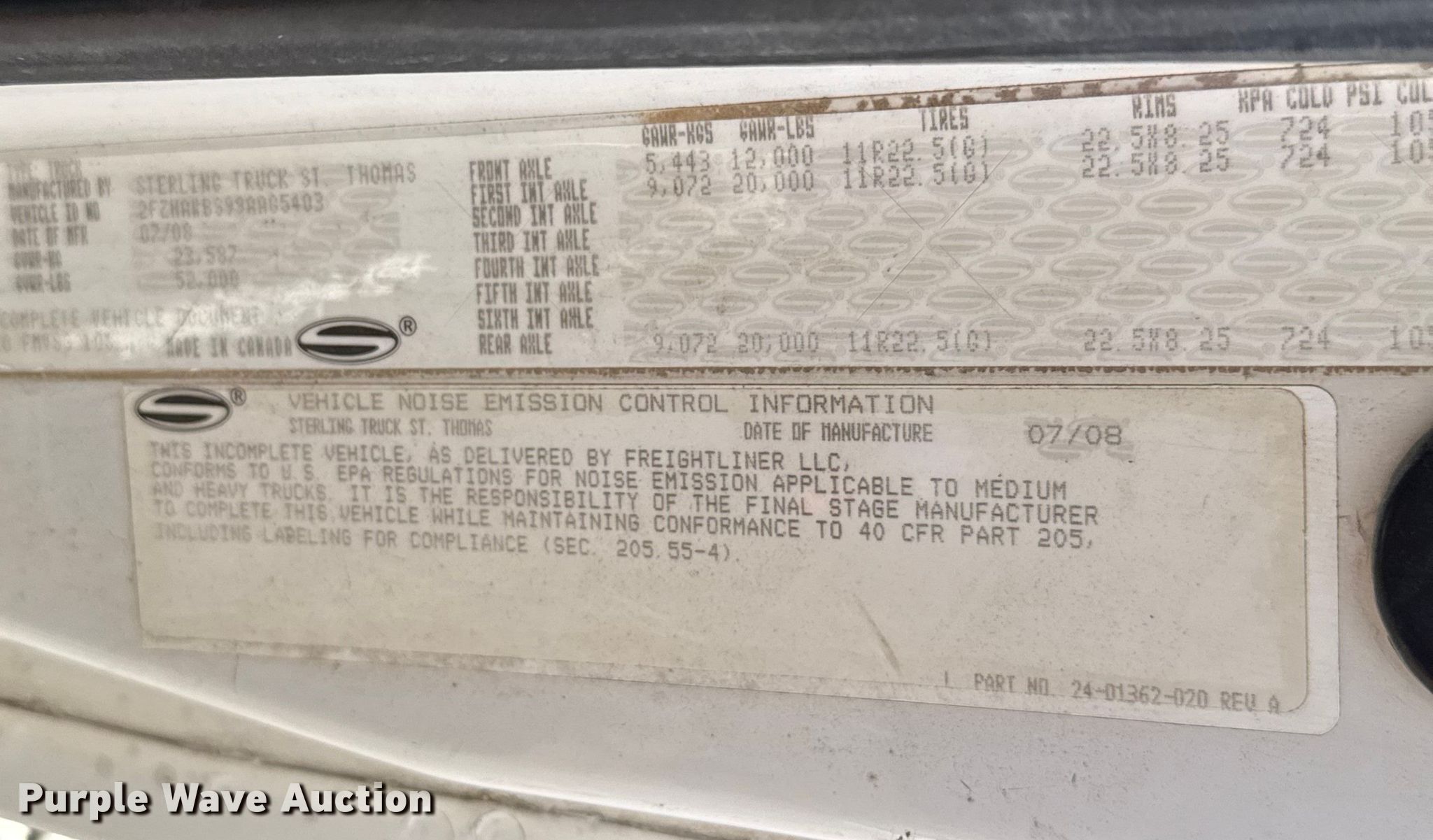 2009 Sterling L8500 dump truck. Miles: 177,817 on odometer, Hours: 9,351 on meter, VIN: 2FZHAWBS99AAG5403, Unit #: 302-092. Engine Cummins ISC300, Serial: 46921450, Displacement: 8.3L, Cylinders: 6, Fuel type: Diesel, Engine brake. Transmission Allison, Automatic. Chassis Double frame, Axles: Tandem, Differential lock: Inter-axle, Suspension: Spring over walking beam, Brakes: Air, PTO, GVWR: 52,000 lbs FAWR: 12,000 lbs, IAWR: 20,000 lbs, RAWR: 20,000 lbs. Interior AC, Heat, Heated mirrors, Cruise control. Features Bed Dump bed, Marble DB154205, Serial: D81113026, Length: 15', Width: 96", Side height: 54", Bed type: Steel, Roll tarp, Ram: Single, End gate: Air operated. Tires Size: 11R22.5. Notes CB radio not included, Windshield chipped or cracked. Oklahoma title. Title distribution may be delayed up to 30 days from verification of funds. Garvin County. Elmore City, OK 73433