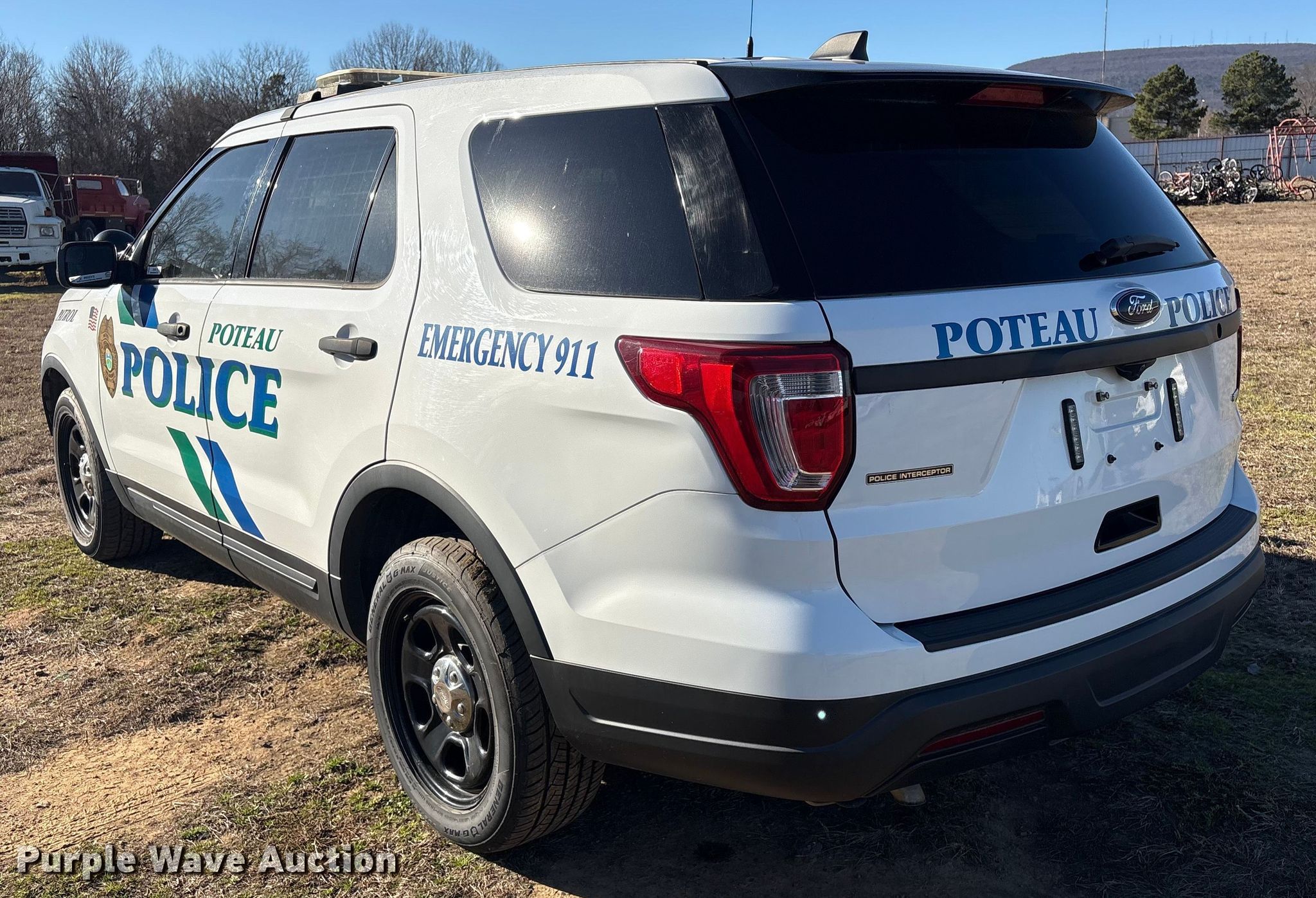 2019 Ford Explorer Police Interceptor SUV. Miles: 84,057 on odometer, VIN: 1FM5K8AR6KGA29486. Engine Displacement: 3.7L, Cylinders: 6, Fuel type: Gas, HP: 304. Transmission Automatic, All wheel drive. Interior AC, Heat, Seat: Power driver, Power windows, Power locks, Cruise control, Backup camera. Tires Size: 245/55R18. Notes Jump start required during on-site data collection. Oklahoma title. Title distribution may be delayed up to 30 days from verification of funds. City of Poteau. Poteau, OK 74953