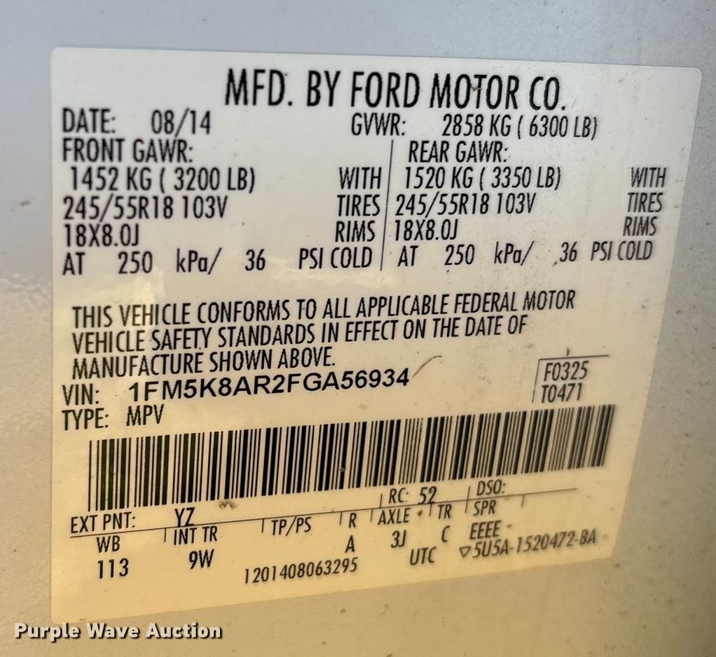 - VIN: 1FM5K8AR2FGA56934