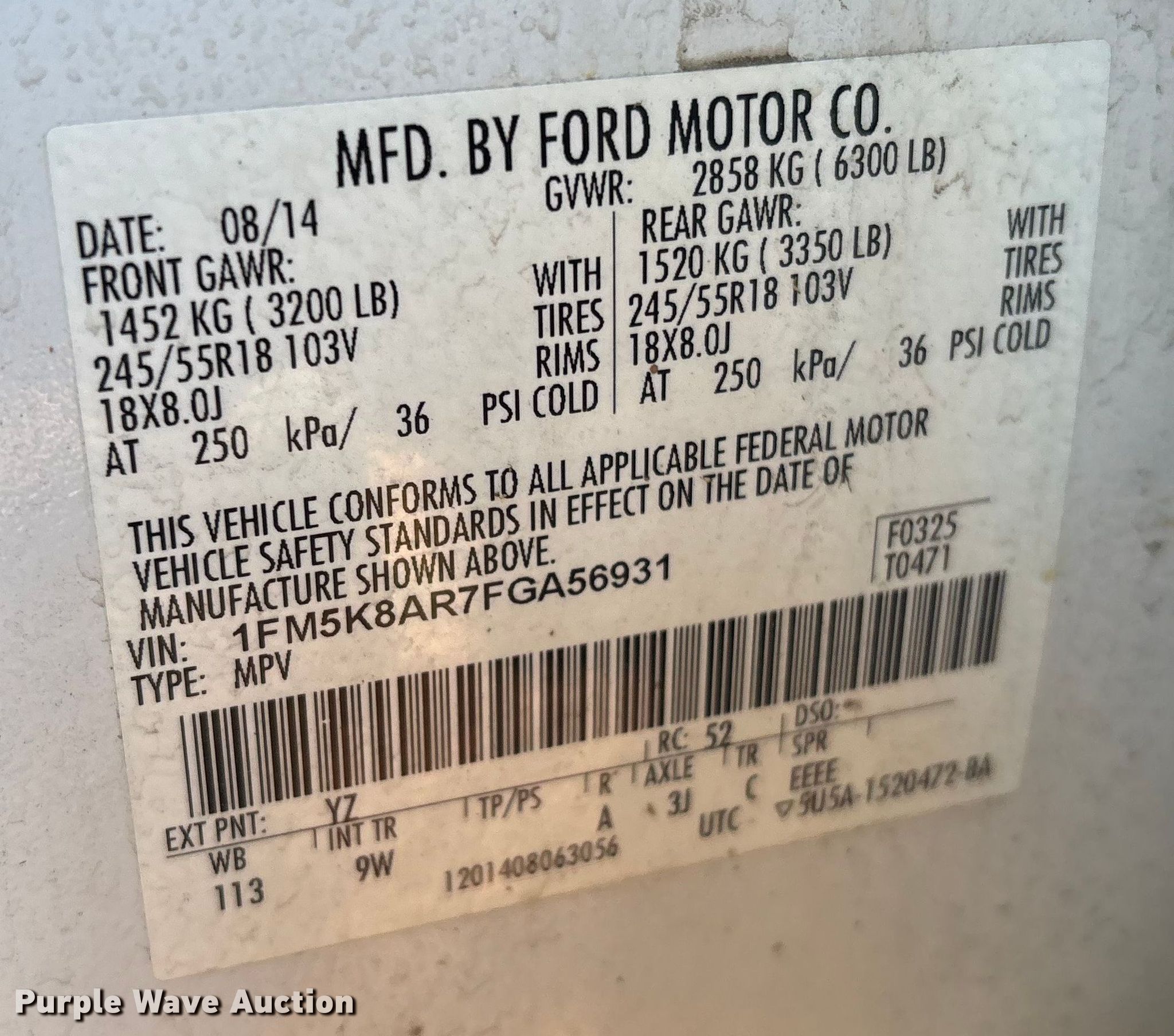 - VIN: 1FM5K8AR7FGA56931